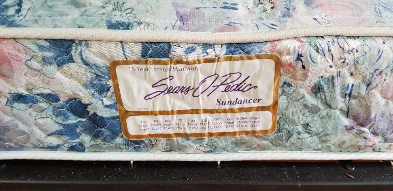 Contemporary daybed in the "plantation" style - caned back in very good condition - whole thing looks pretty good. Sears mattress is actually not too bad. 45" deep, 81" across, 42" tall. 23" from floor to top of mattress. A solid piece.