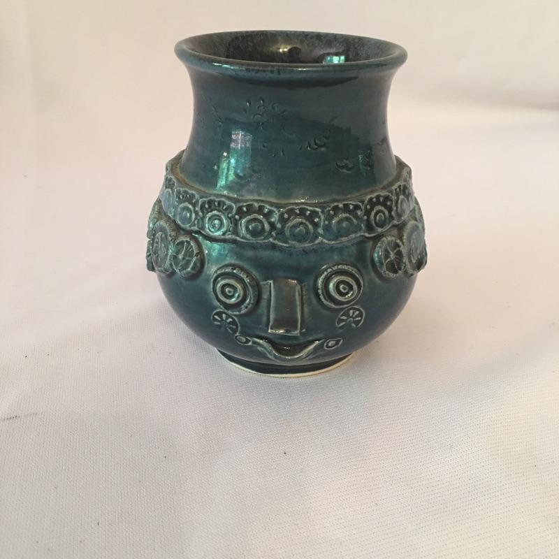 This is a beautiful piece perfect to start or add to your collection. Well known Rosenthal Bjorn Wiinblad signed face pottery. Unique face pottery by Rosenthal is sure to be a conversation starter. Piece measures 3.5”D x 4.25” tall.