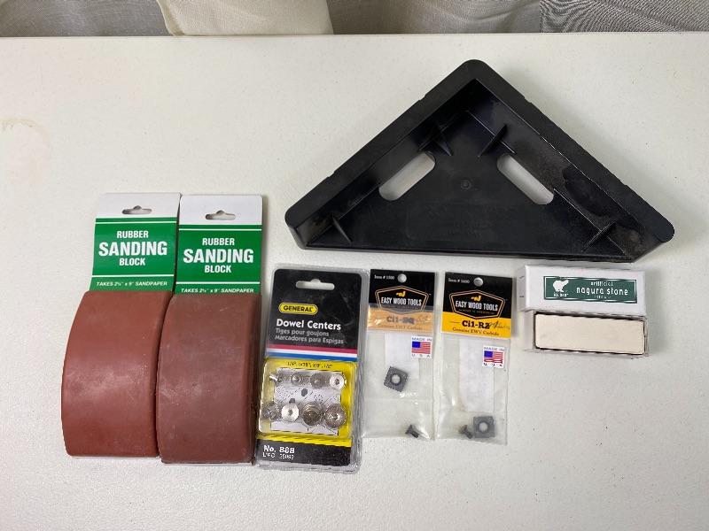 Lot# 82 s Woodworking Grouping Sand Block Sharpening Stone Rockler Carbide Inserts Centers Woodworking Cabinet Making Tools