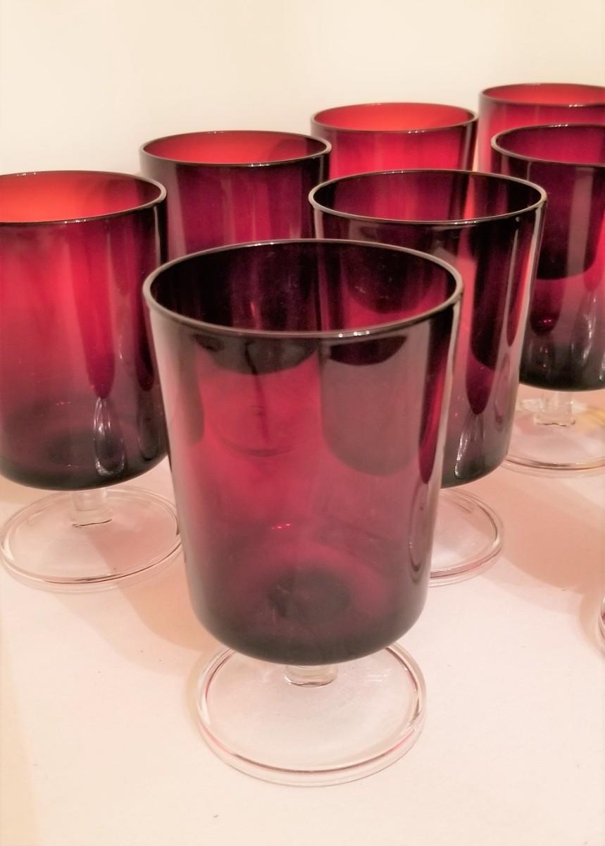 Lot #82  Set of 10 Vintage Ruby Flashed Footed Glasses