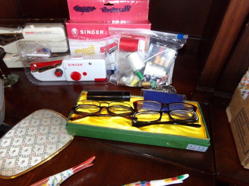JC PENNY SEWING MACHINE, 2 SINGER HANDY STITCHERY, SEWING NOTIONS AND MORE