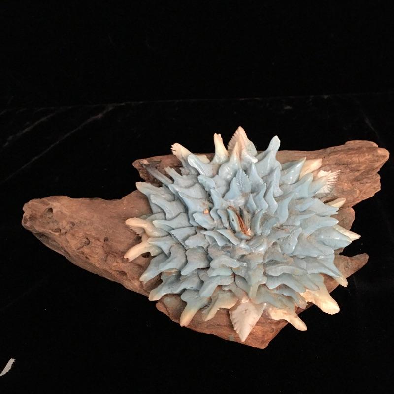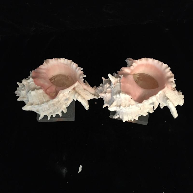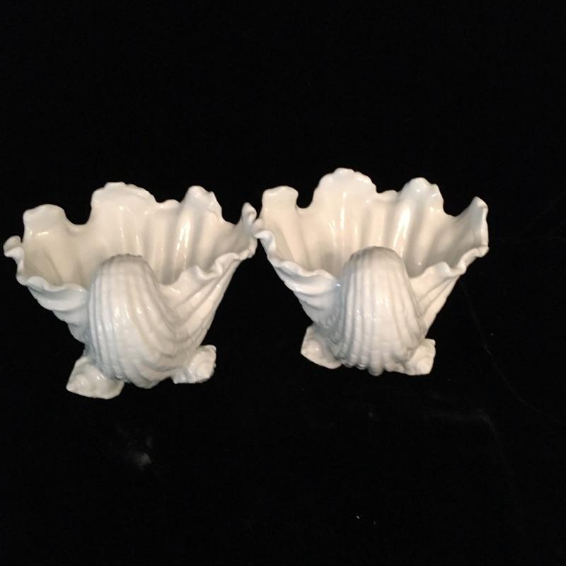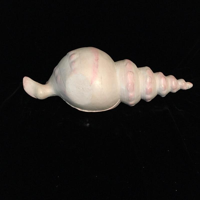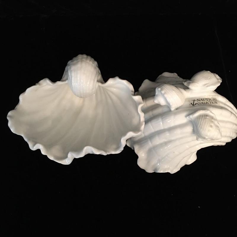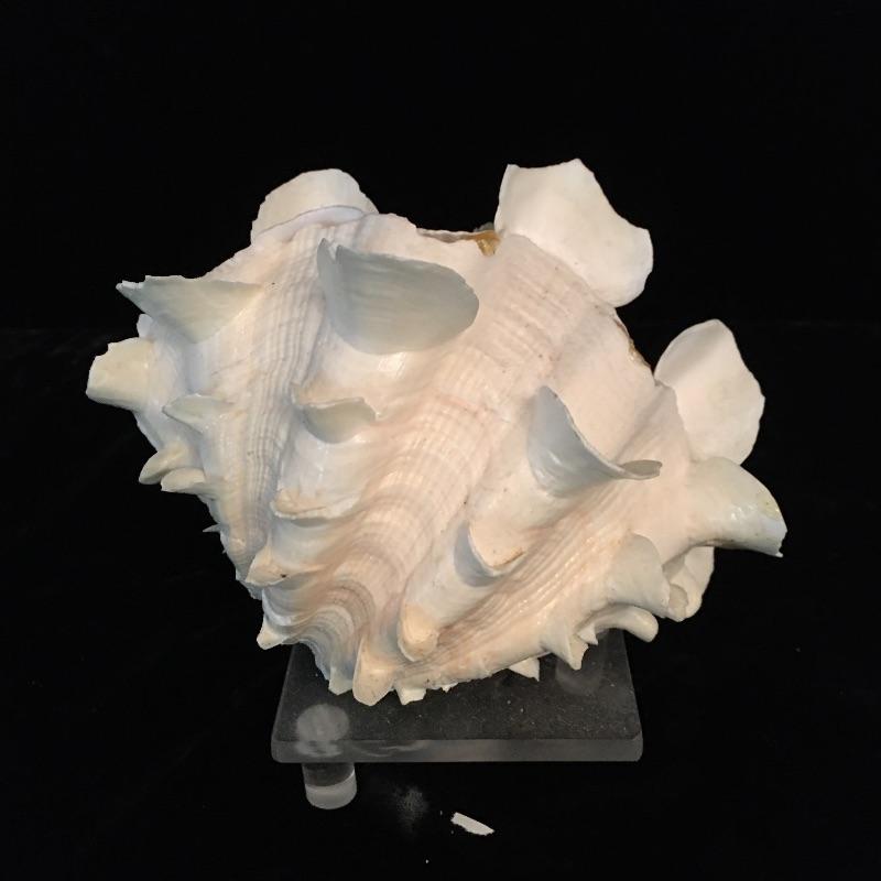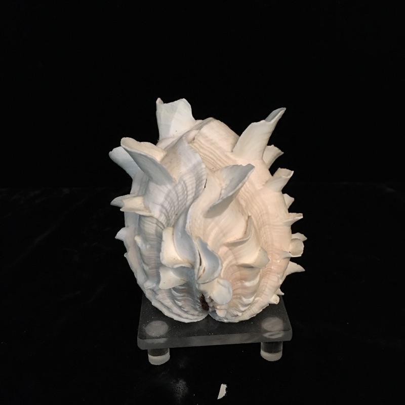 Shell decor includes three shells mounted on plexiglass stands, Dolphin figurine mounted on a shell and the rest are faux shells in what appears to be be ceramic, plexiglass and plaster. Largest faux shell measures approximately 17” long with a 8”D.