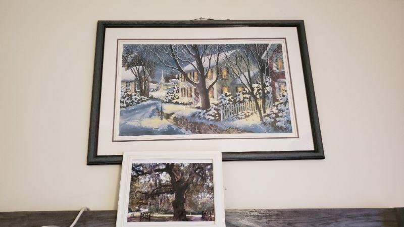Hand signed and numbered lithograph by Patchell Olson, and a framed print.
