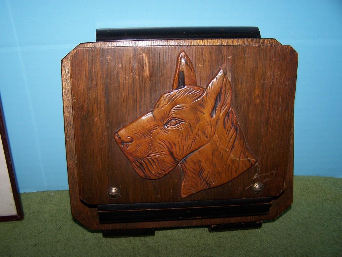 THESE ARE SWEET VINTAGE DOG ITEMS!! THE PICTURE/FRAME IS 8'' X 10''.. THE WOODEN HOLDER HAS SOME RUBS/SCRATCHES/WEAR..