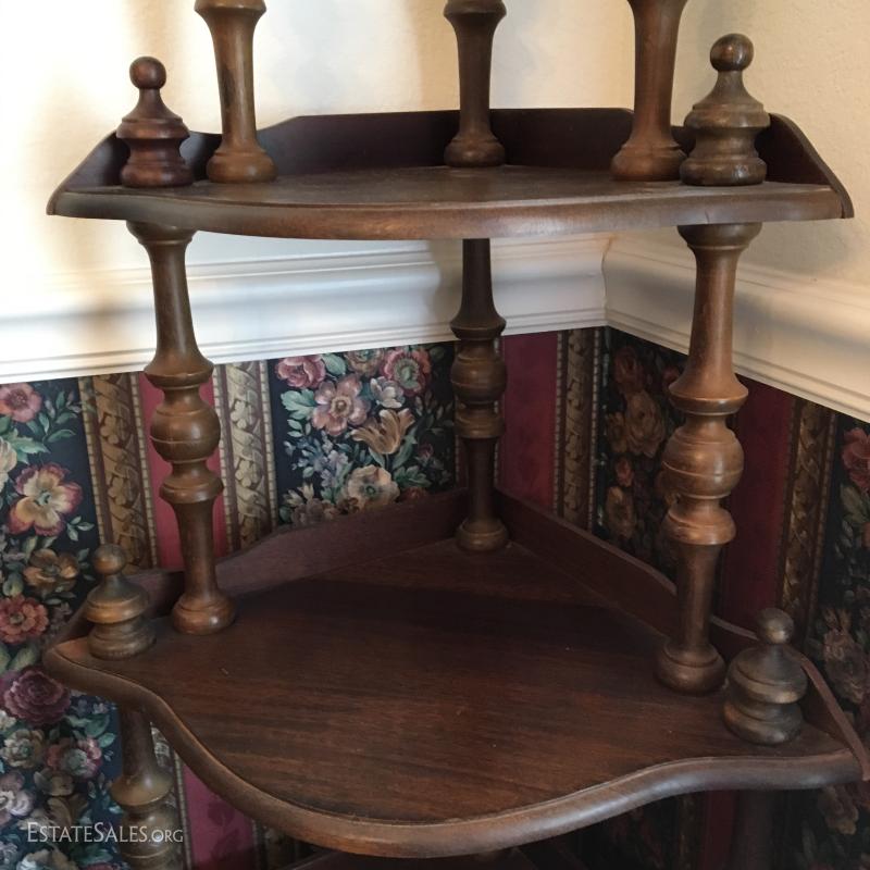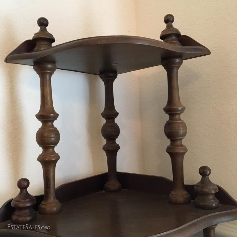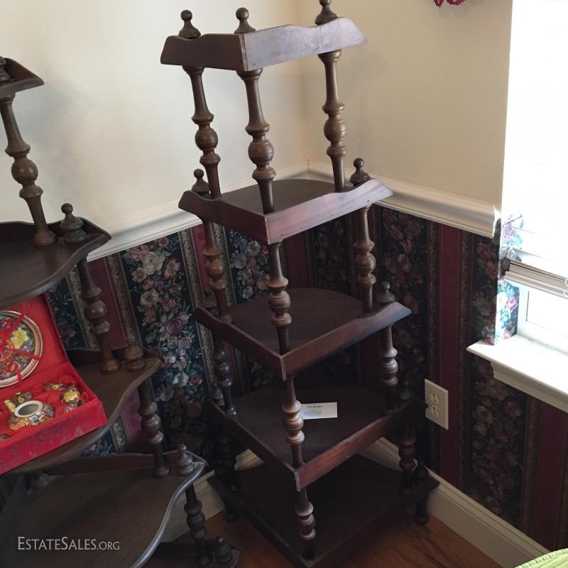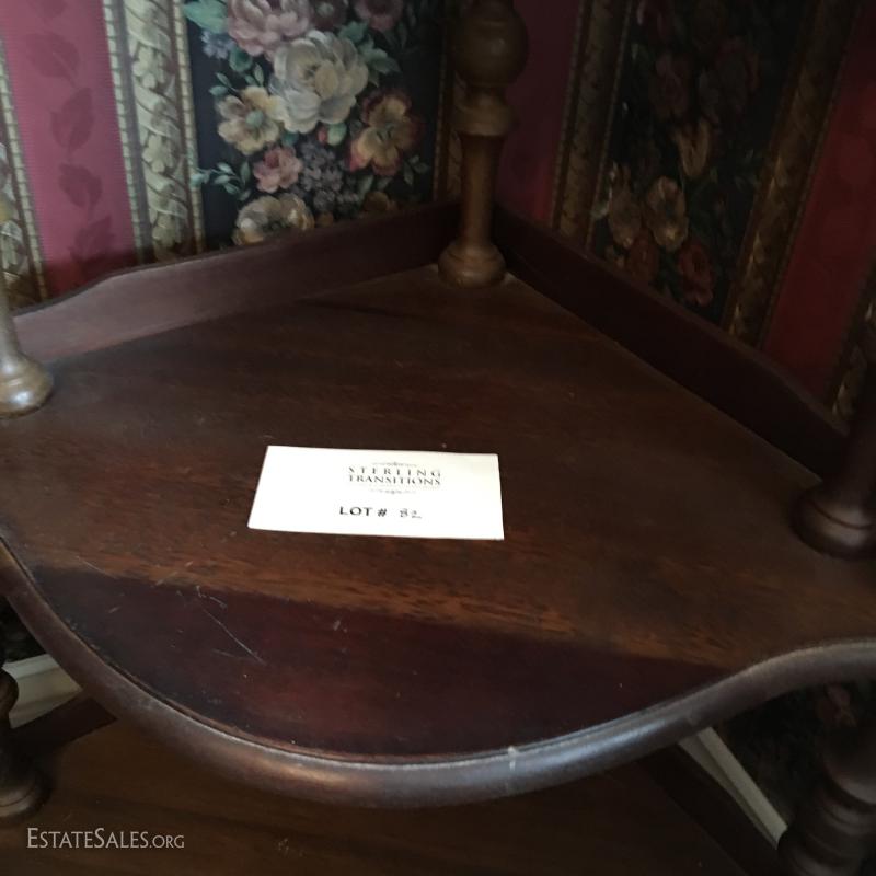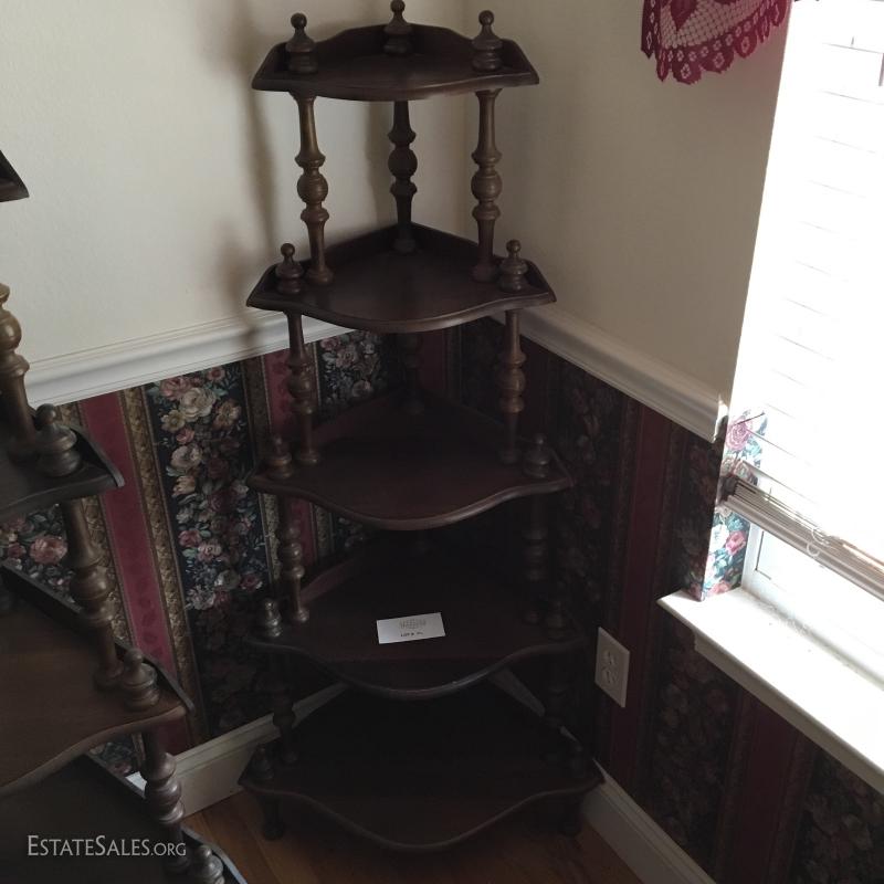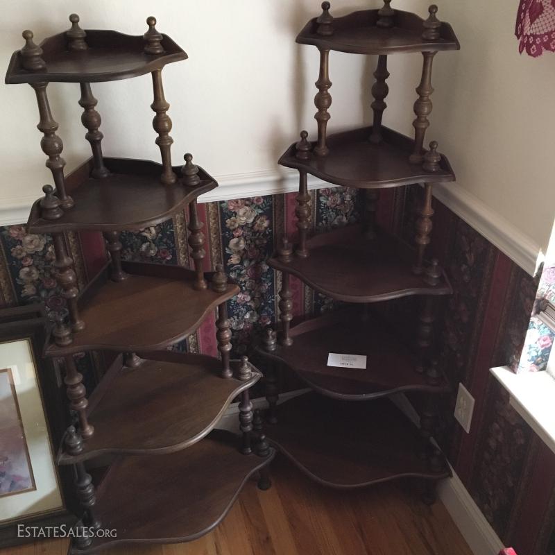 LOT 82- Two Wood Standing Corner Shelves