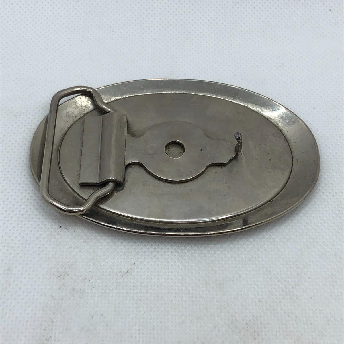 This is a gently used belt buckle (some scratches) that is still very usable and nice looking. It is about 3.75" in length.