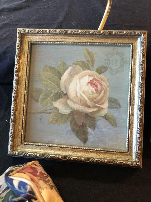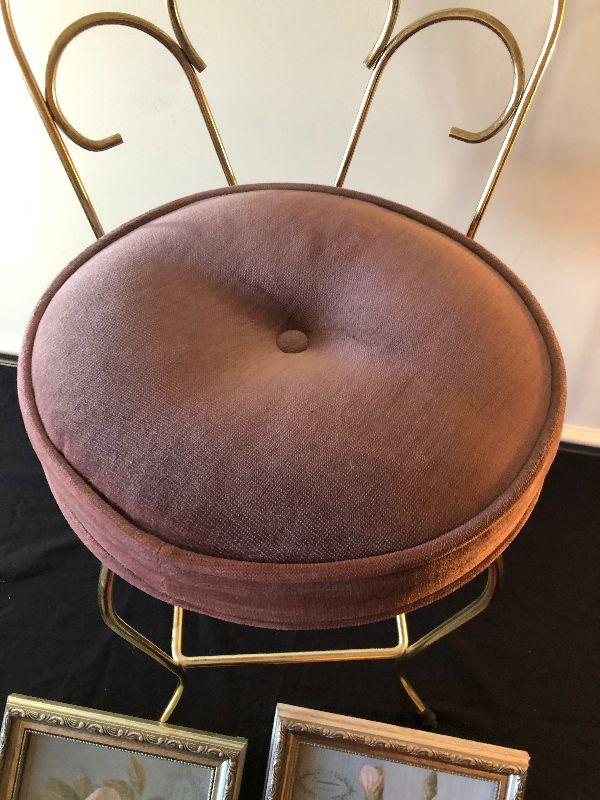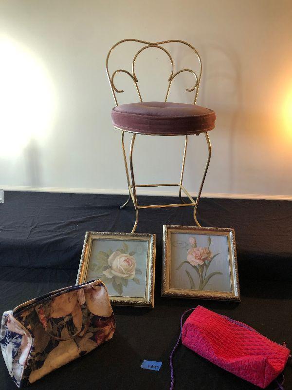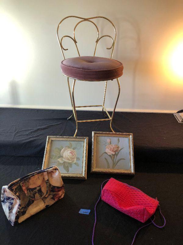 Vintage Vanity Chair, Makeup Bags and Wall Art