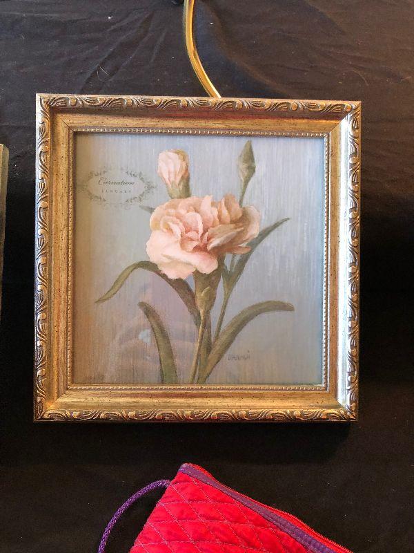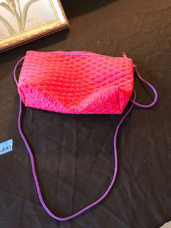 Lot 82 - Vintage Pink Vanity Chair, Makeup Bags and Wall Art