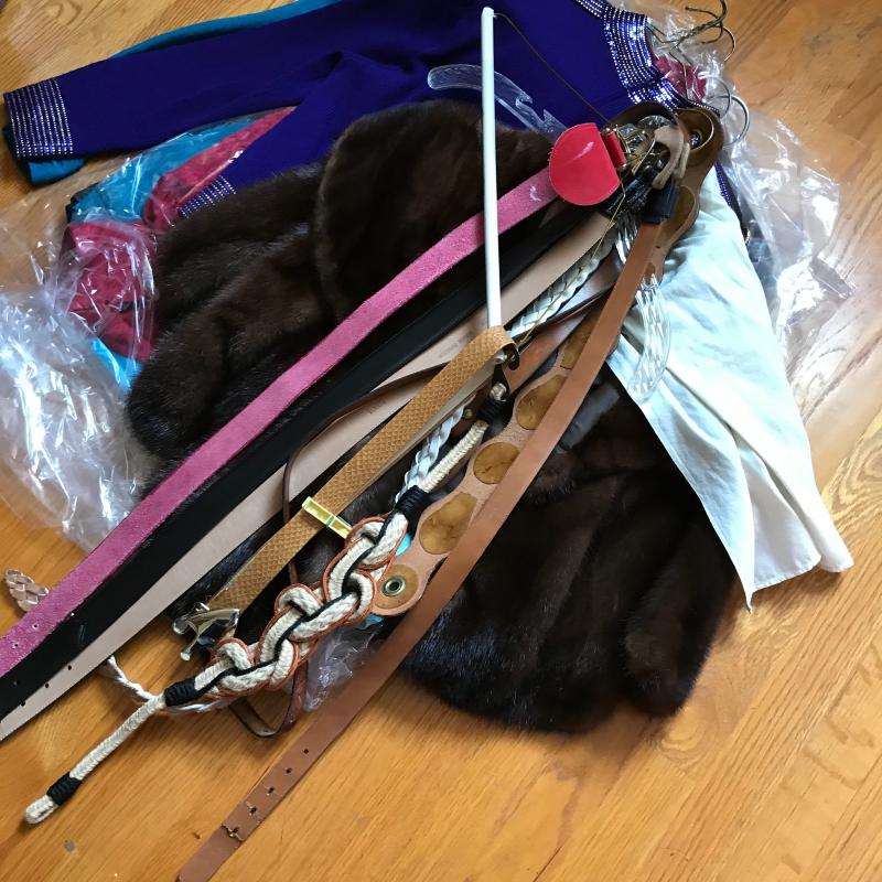 Lot includes women’s vintage clothing and belts. Various sizes 6, 12, and others. Nice Mink included. Also a Pappagallo raincoat in preppy green of course. Shipping available or local pickup in Asheville, NC.