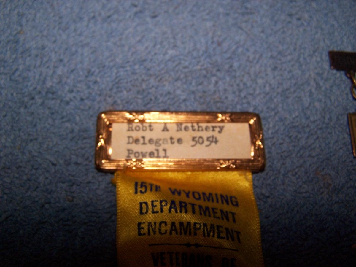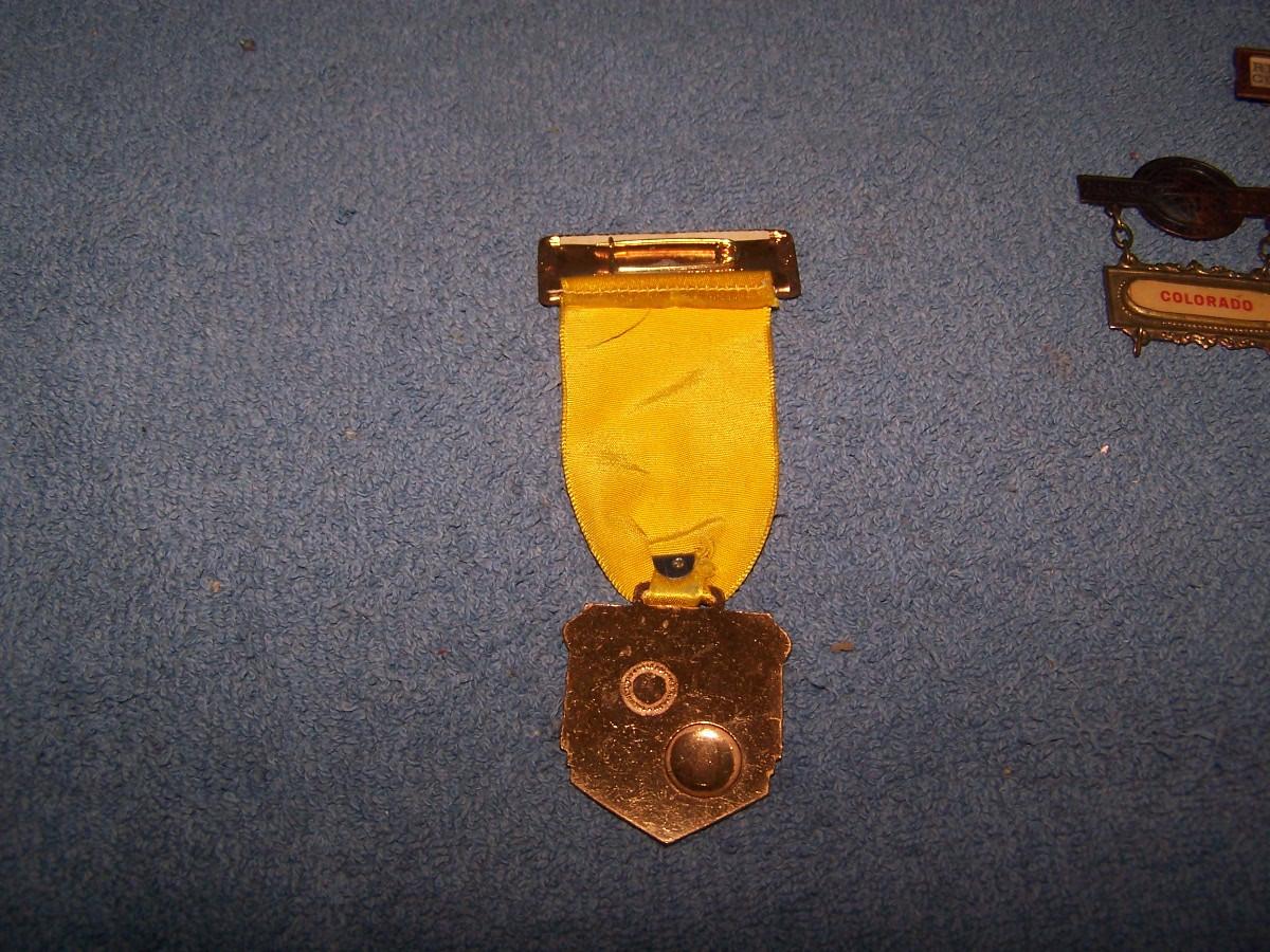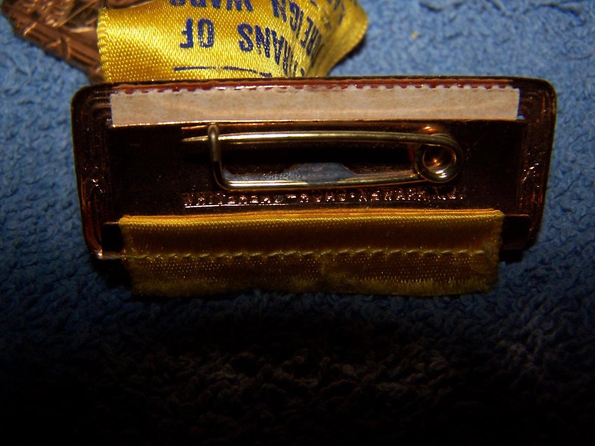 THESE ARE WONDERFUL OLD PINS/RIBBONS-- VETERANS/FRATERNAL!!! YELLOW-5''.. SOME WEAR/TEAR/WRINKLES..