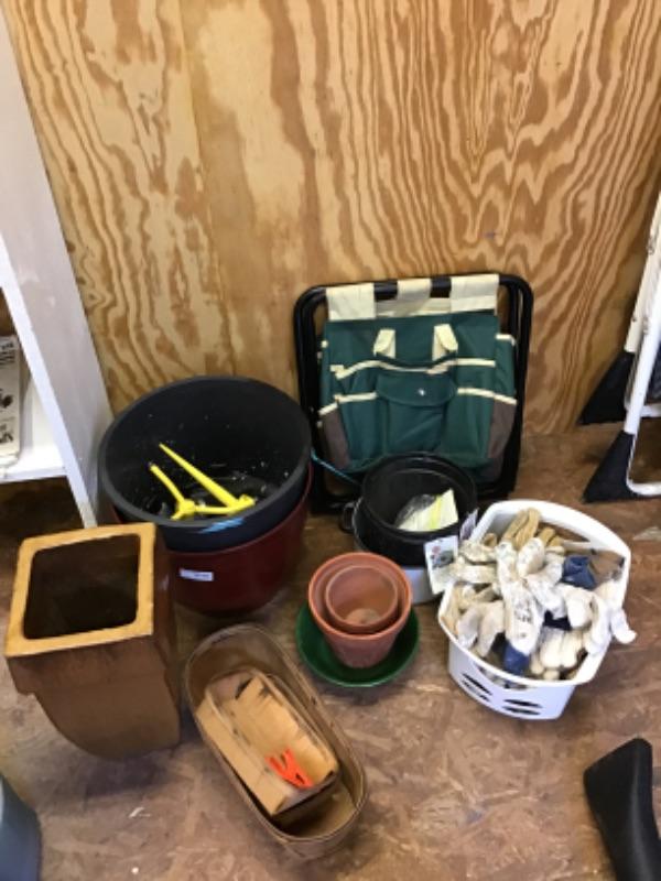 GLOVES, WATERING ATTACHMENTS, POTS, PLANTER, BASKET, STOOL
