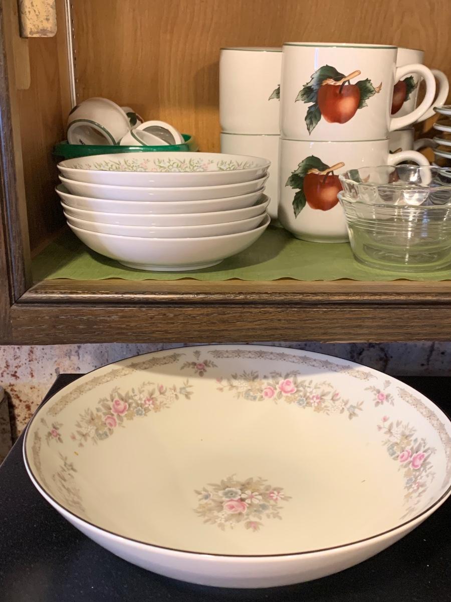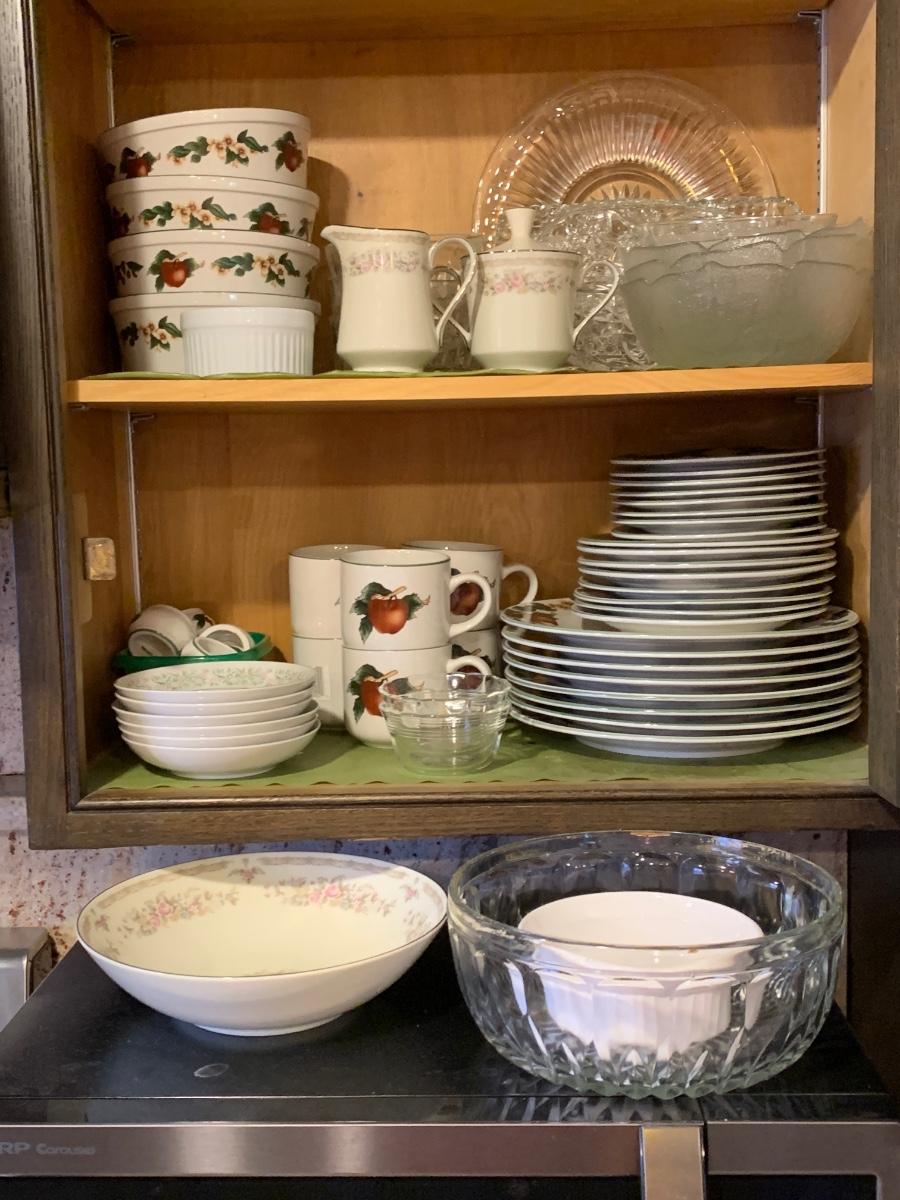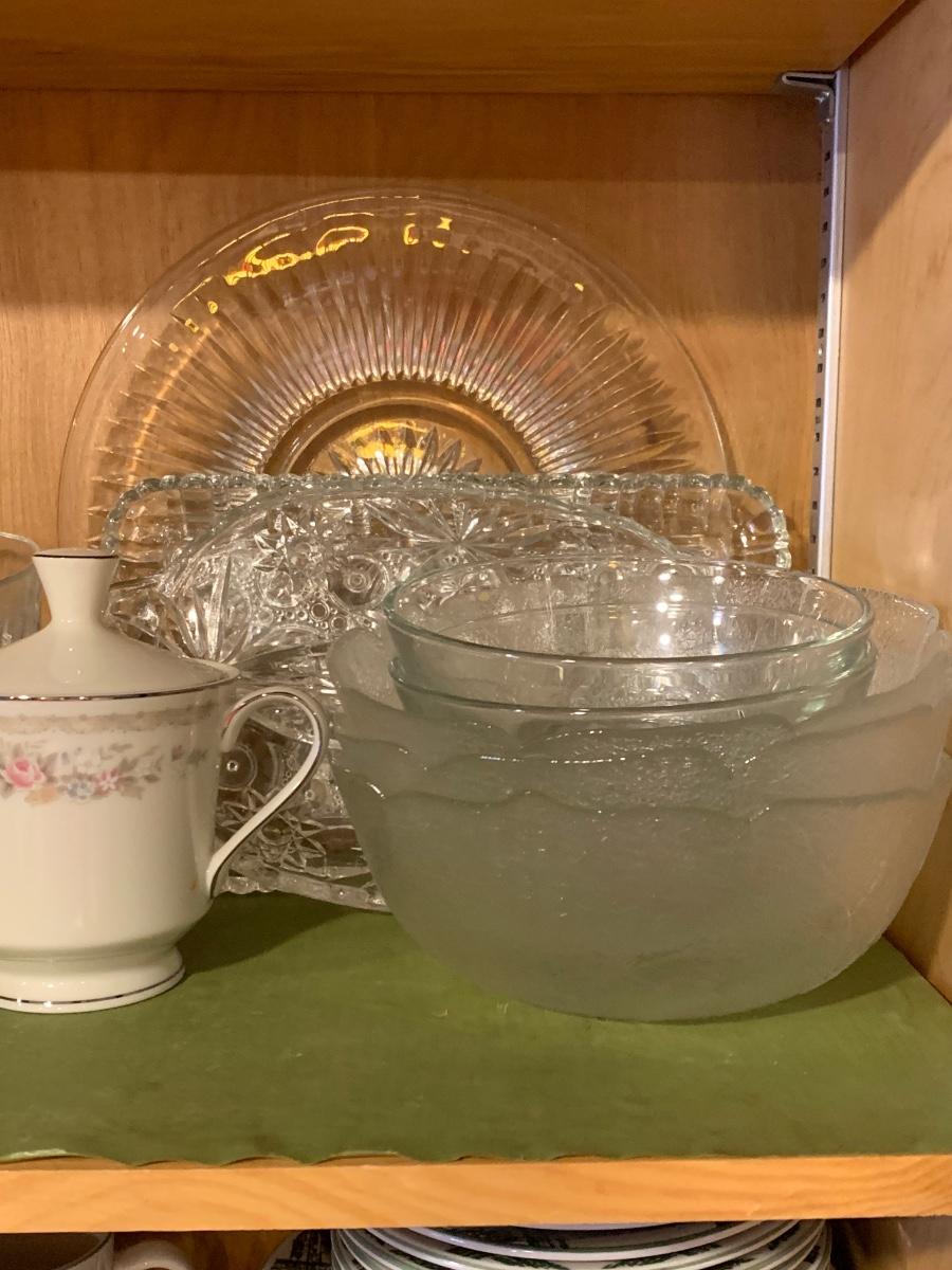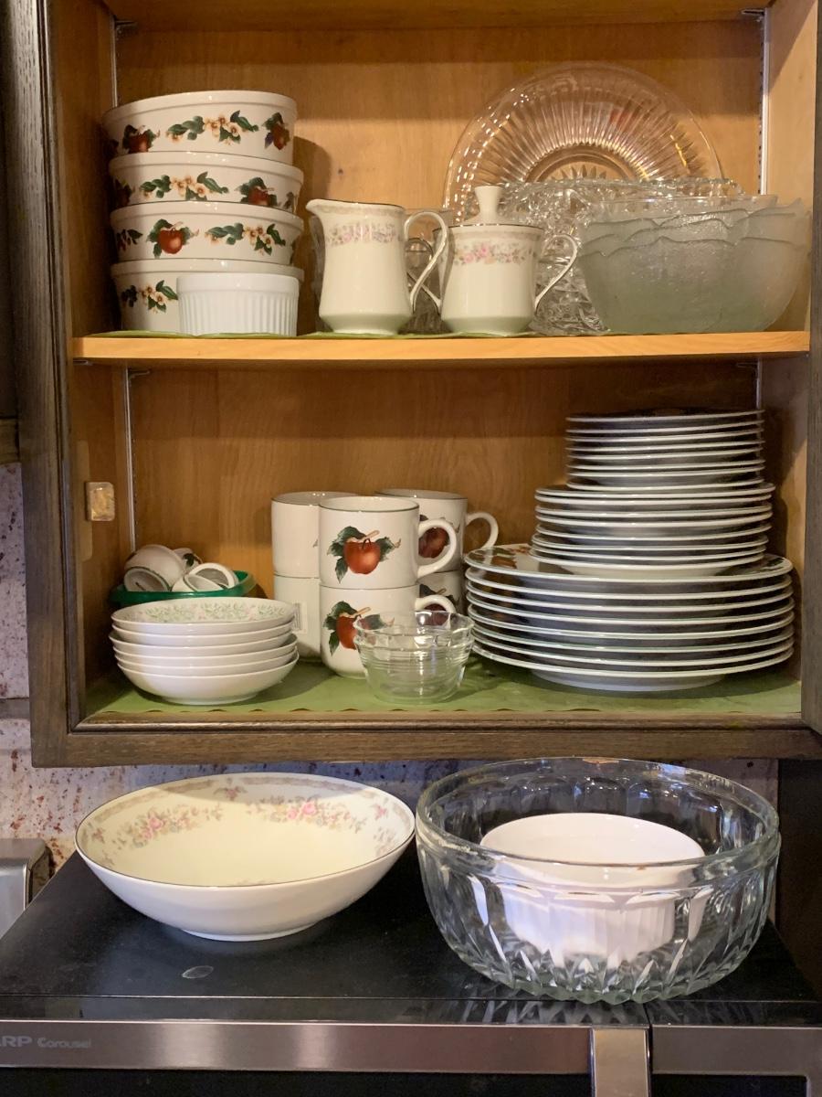 LOT 6R: Kitchen Cabinet Collection: Glass Serving Plates, Apple Dishware & More