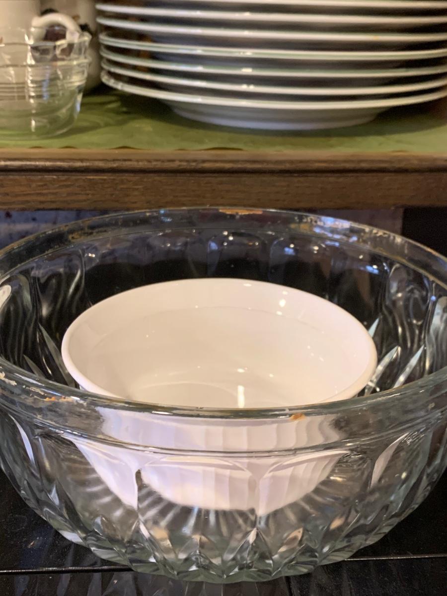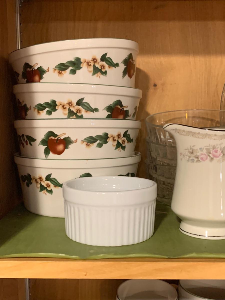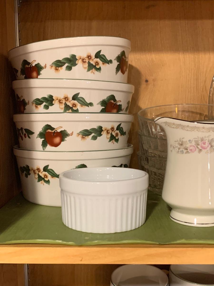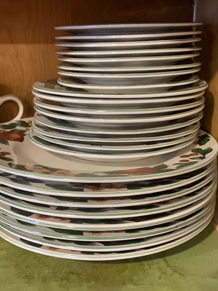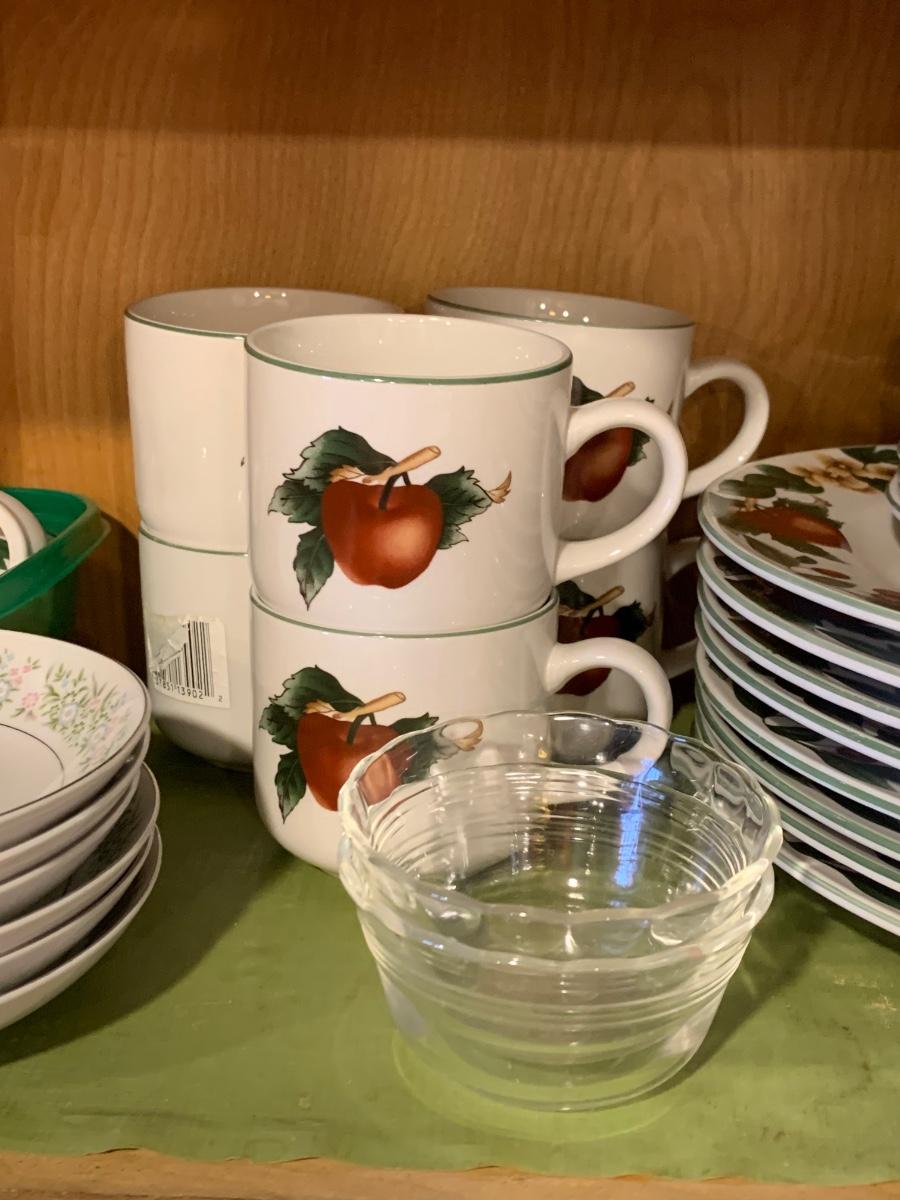 LOT 6R: Kitchen Cabinet Collection: Glass Serving Plates, Apple Dishware & More