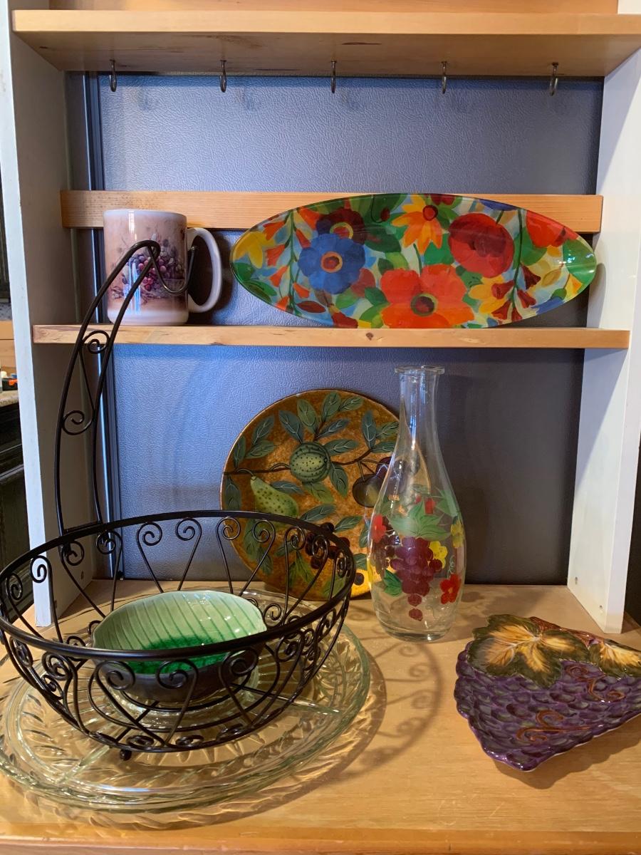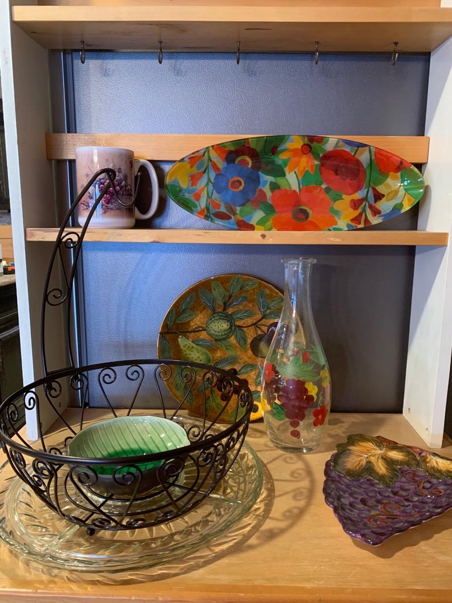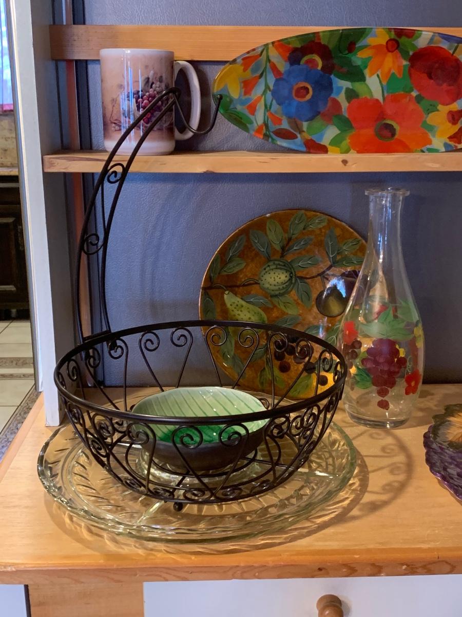 LOT 8R: Wire Fruit Basket, Serving Platters & Dishes Along w/Decorative Plates & More