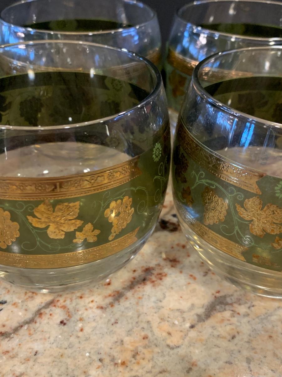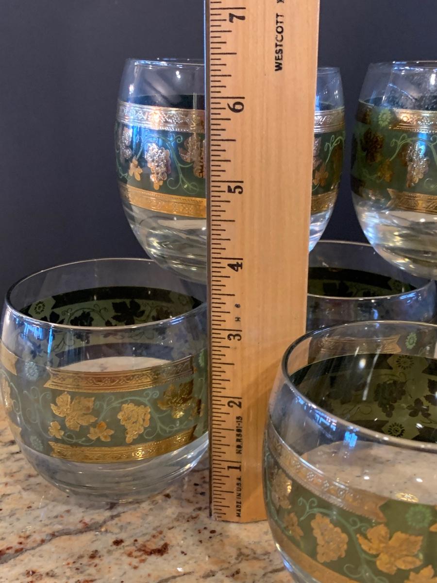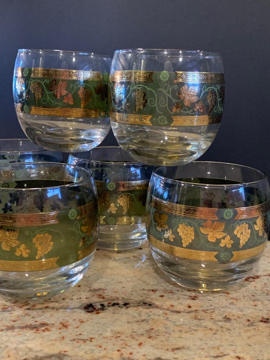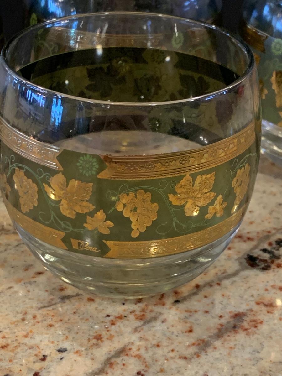 LOT 13R: MCM  Cera Green & Golden Grapes Roly Poly  Drinking Glasses