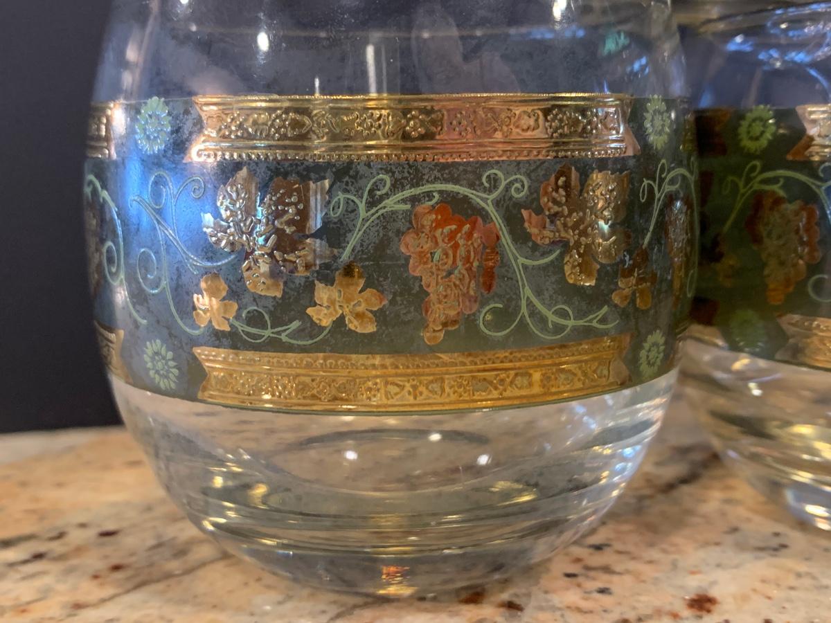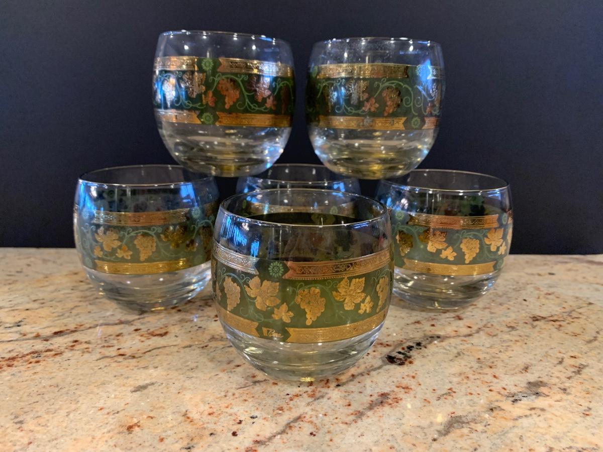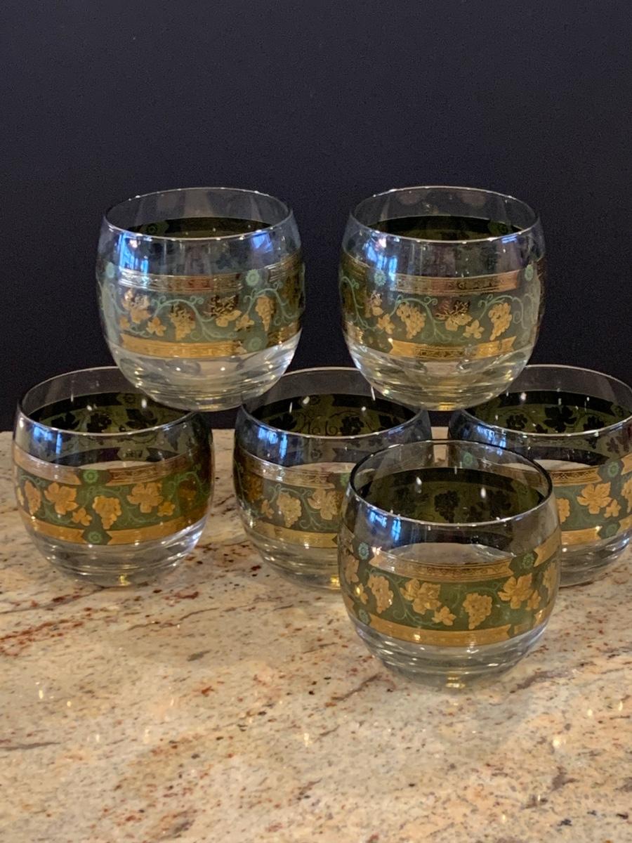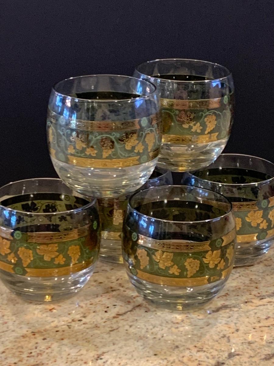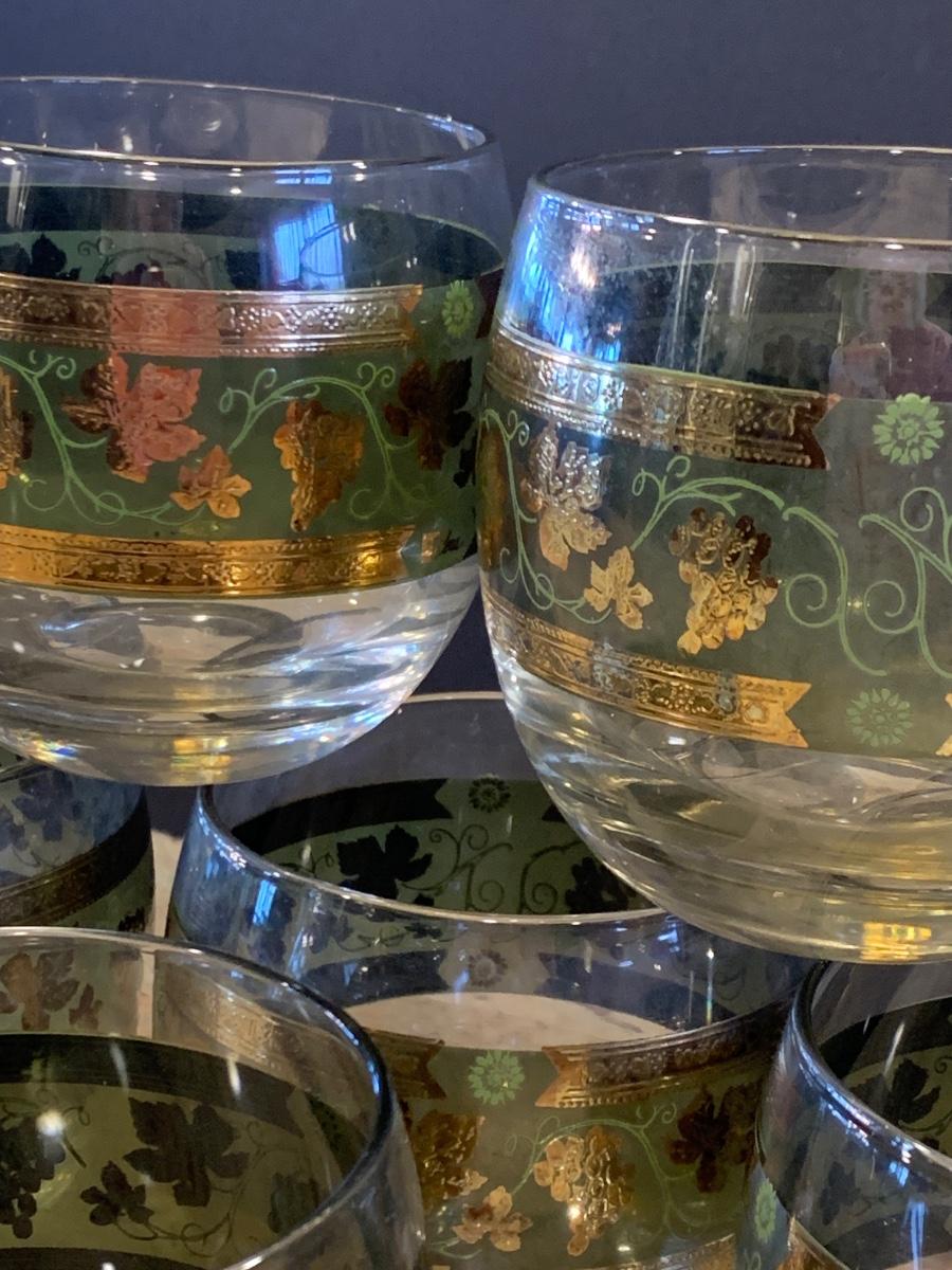 LOT 13R: MCM Cera Green & Golden Grapes Roly Poly Drinking Glasses