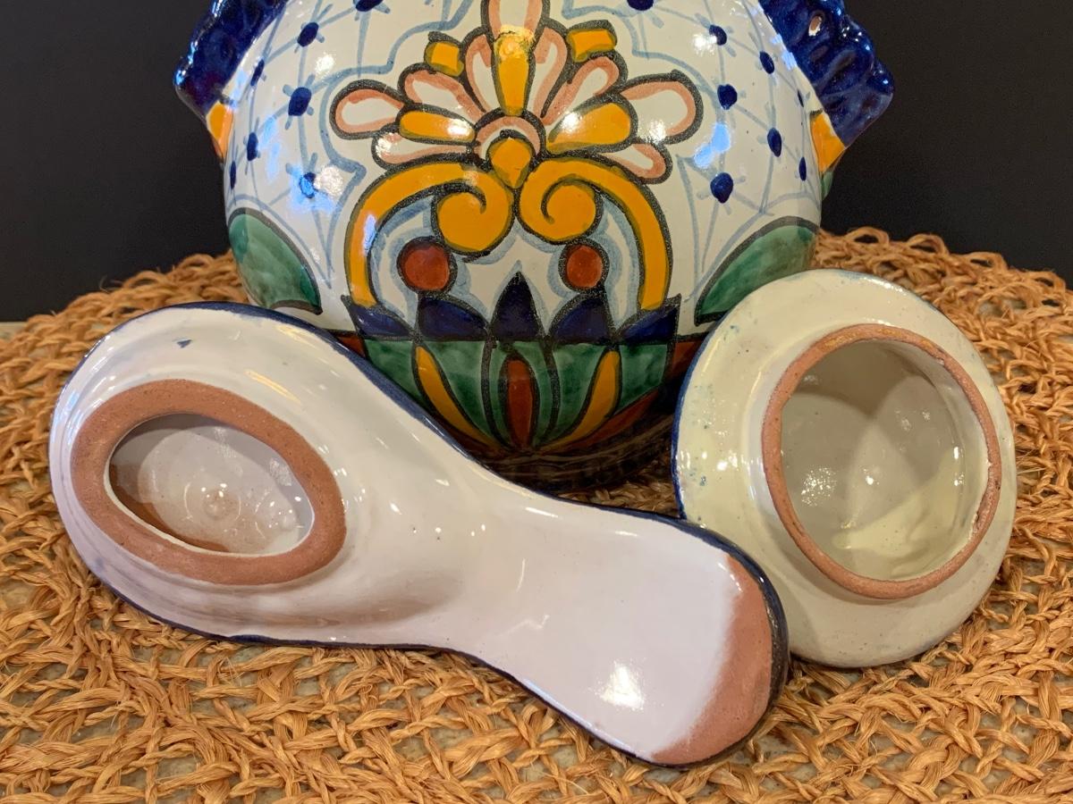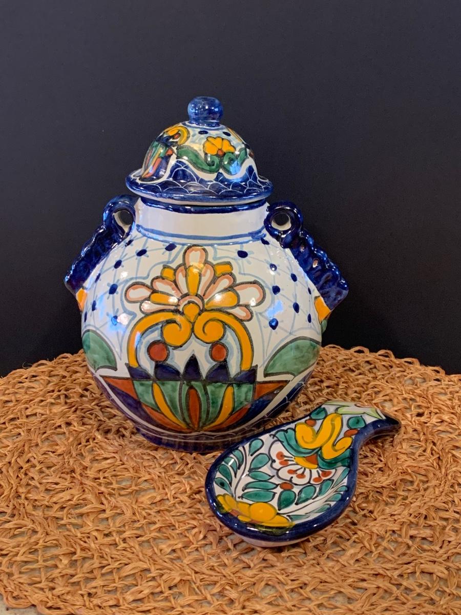 LOT 14R:  Vibrantly Colored Biscuit/Cookie Jar, Alba Mexico & Spoon Rest