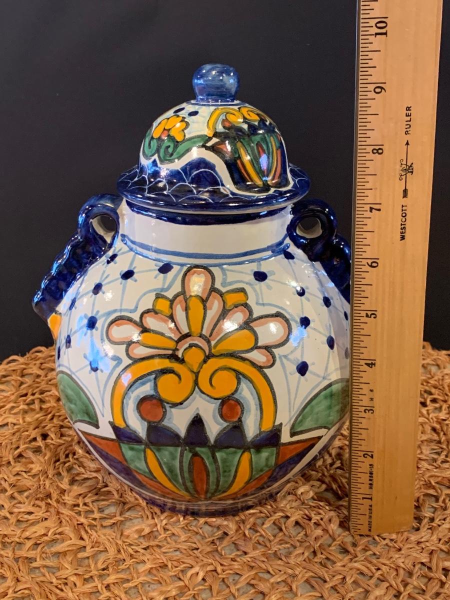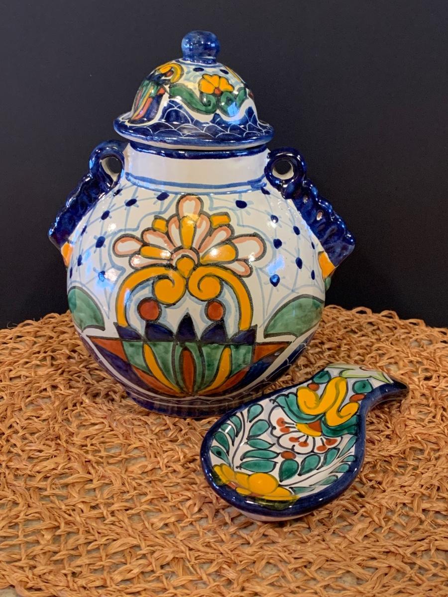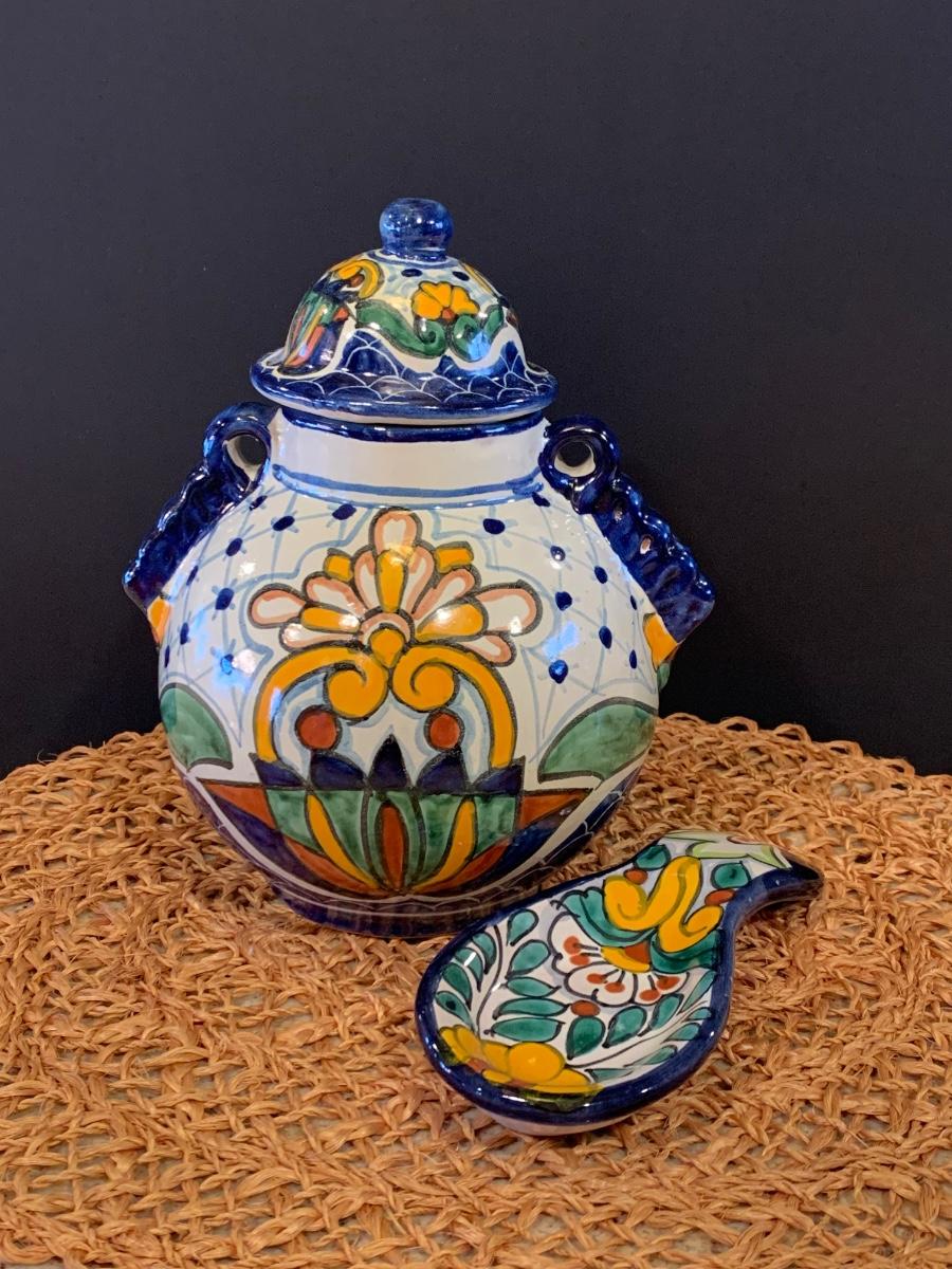 LOT 14R: Vibrantly Colored Biscuit/Cookie Jar, Alba Mexico & Spoon Rest