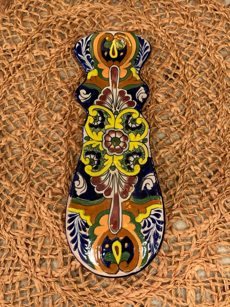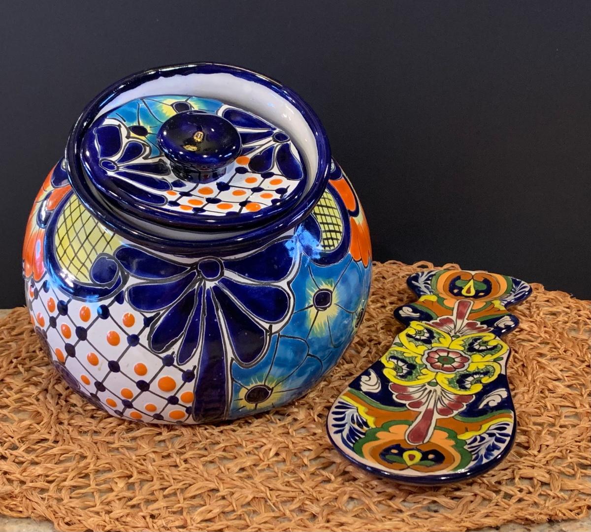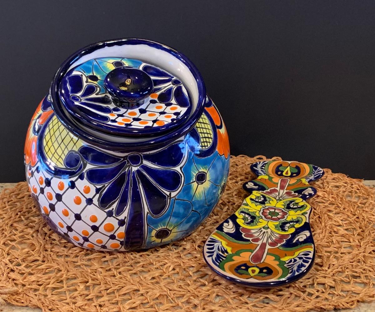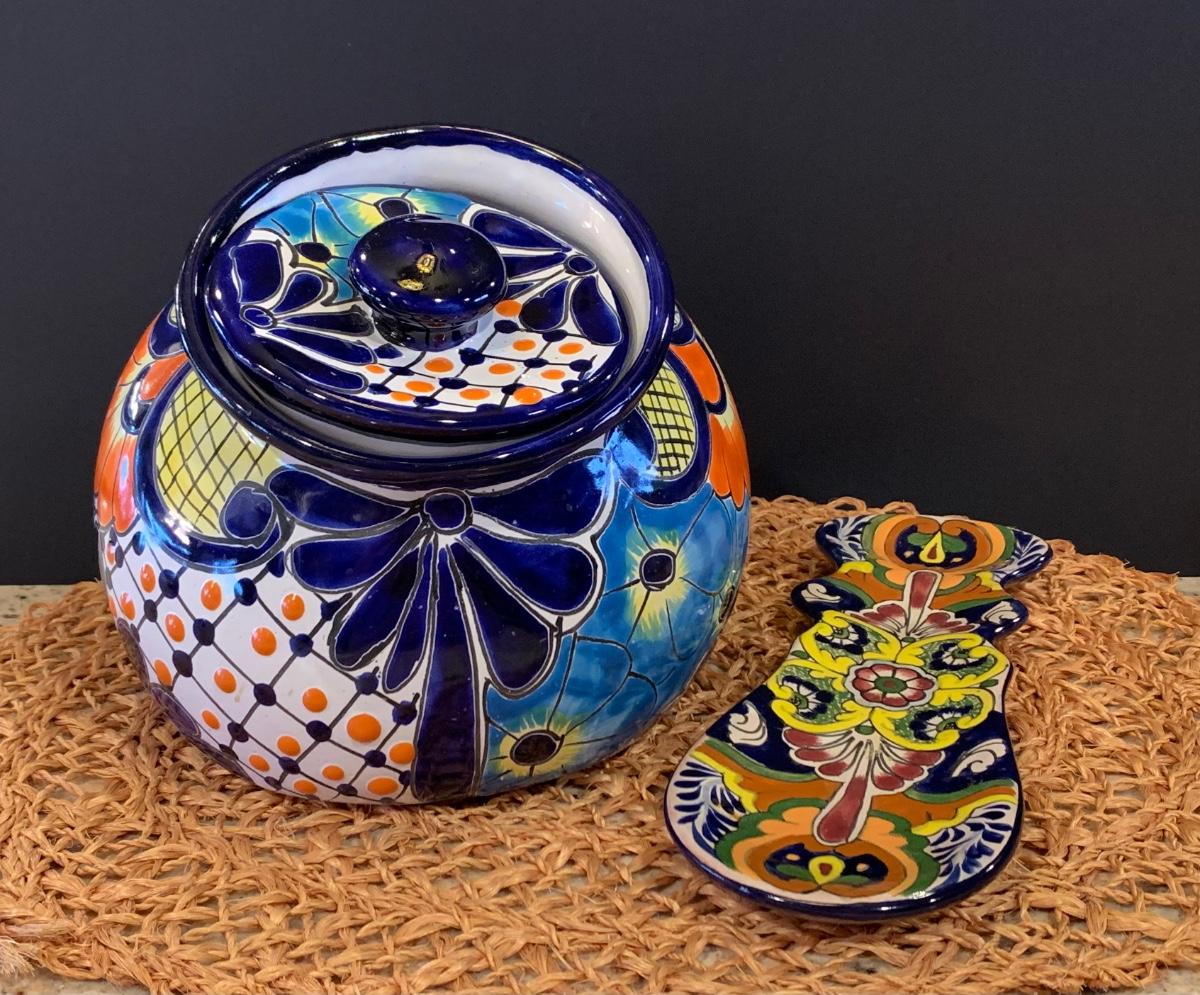 LOT 15R: Brightly Colored Glazed Cookie Jar & Made in Mexico Spoon Rest