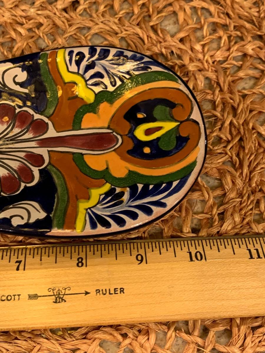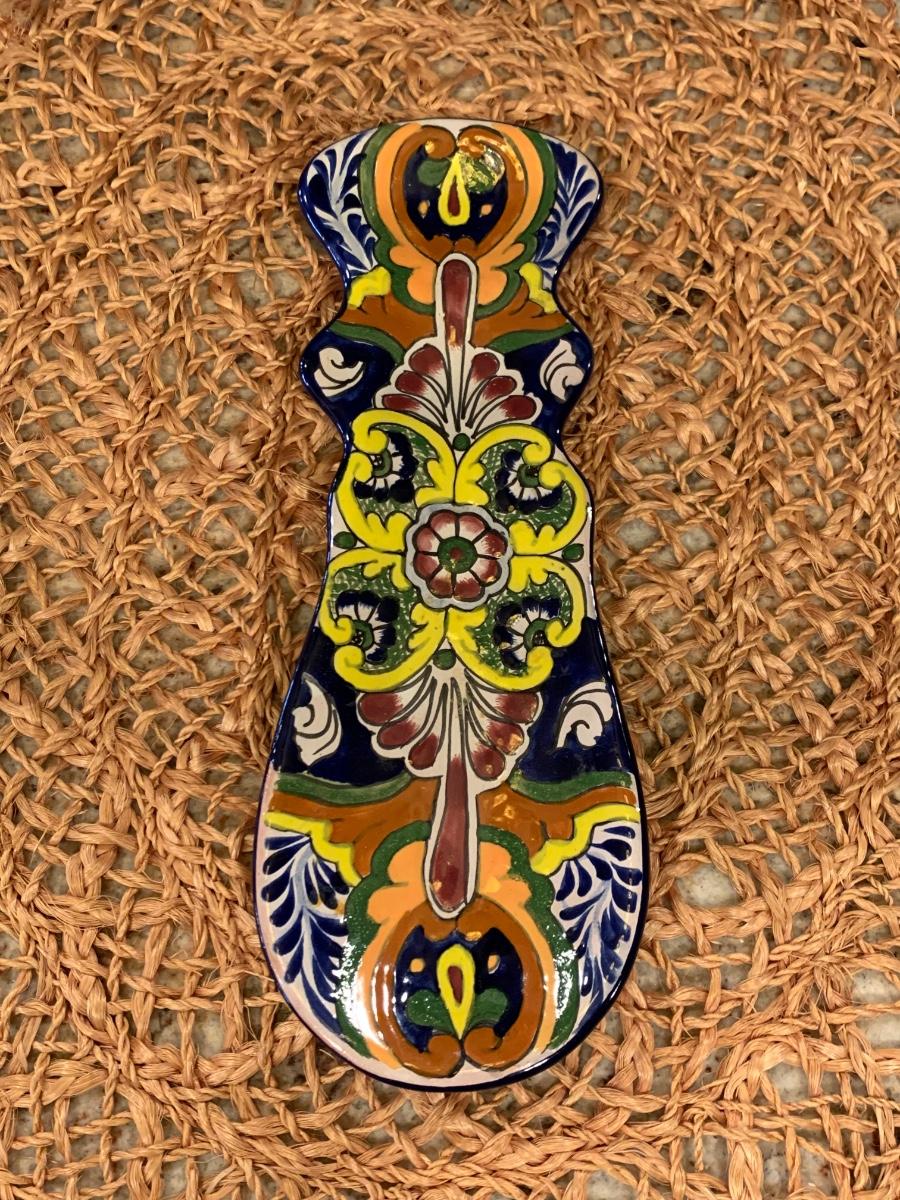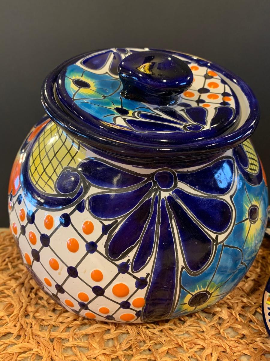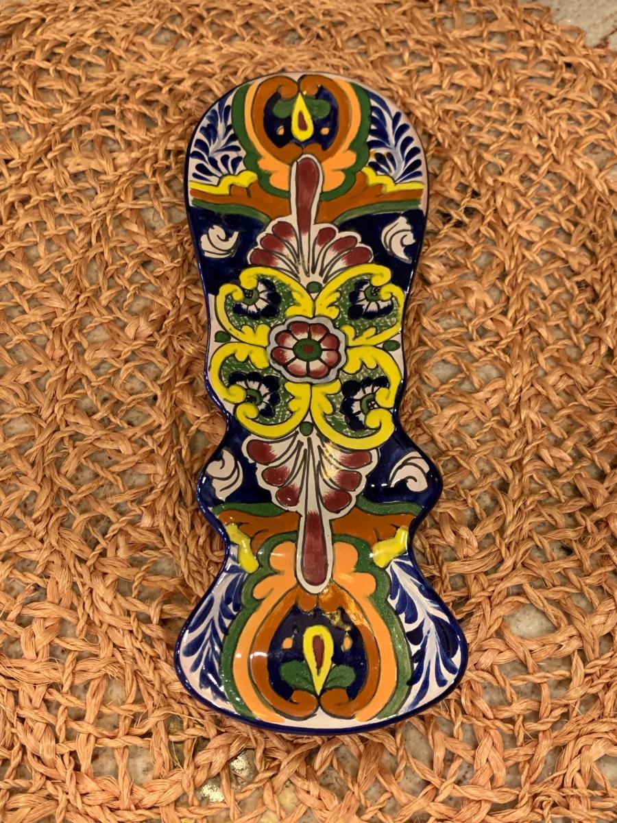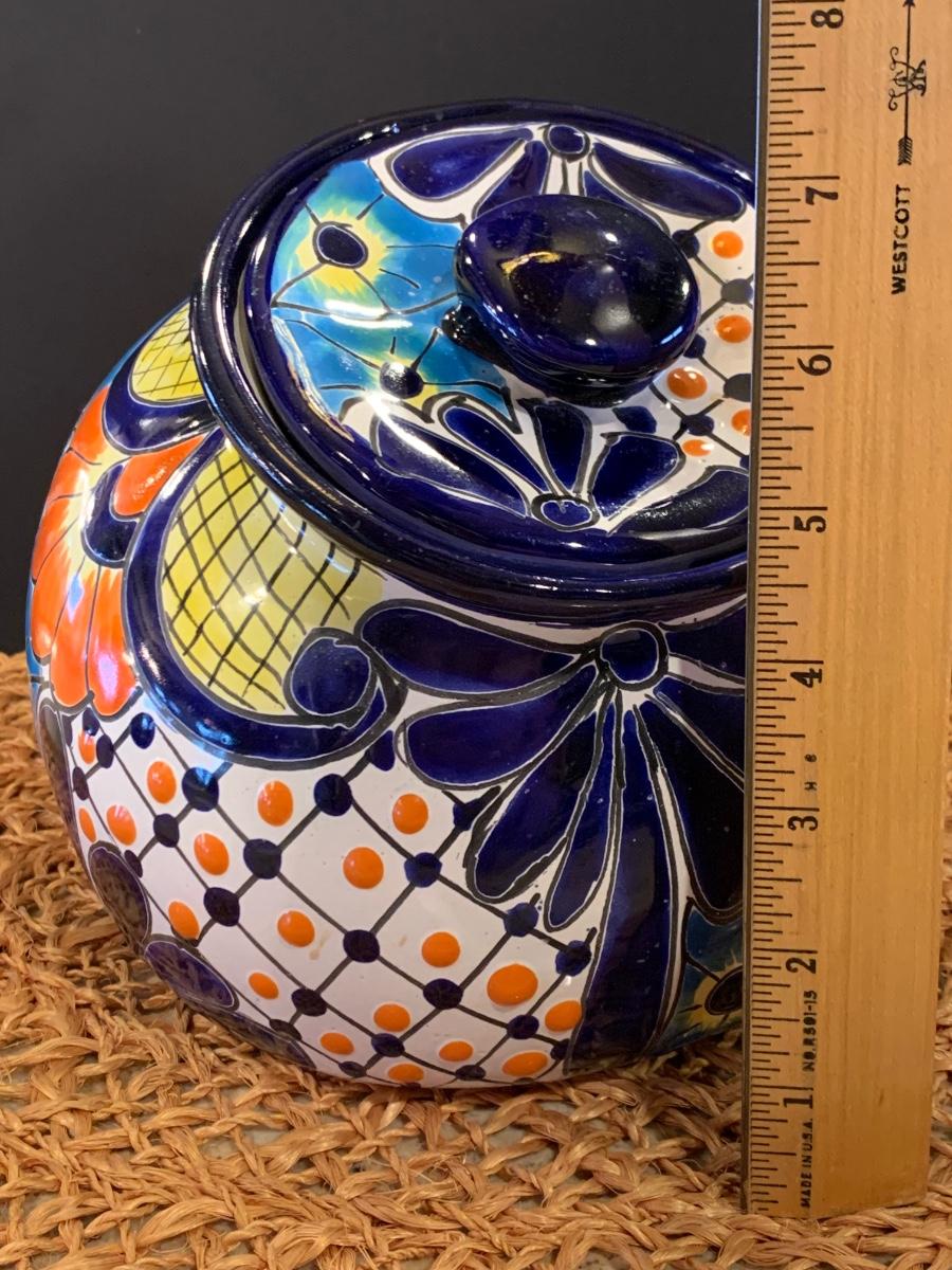 LOT 15R: Brightly Colored Glazed Cookie Jar & Made in Mexico Spoon Rest
