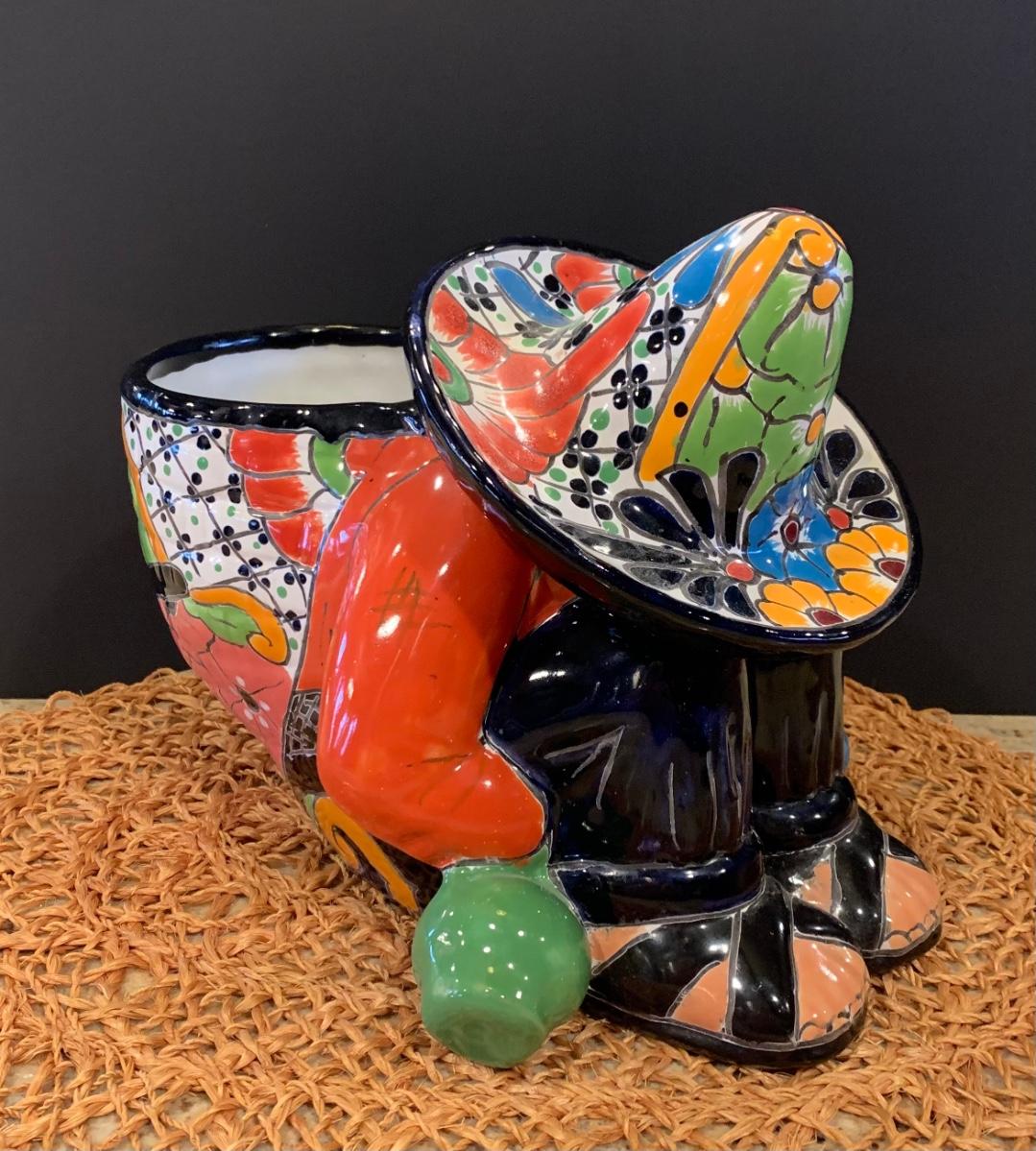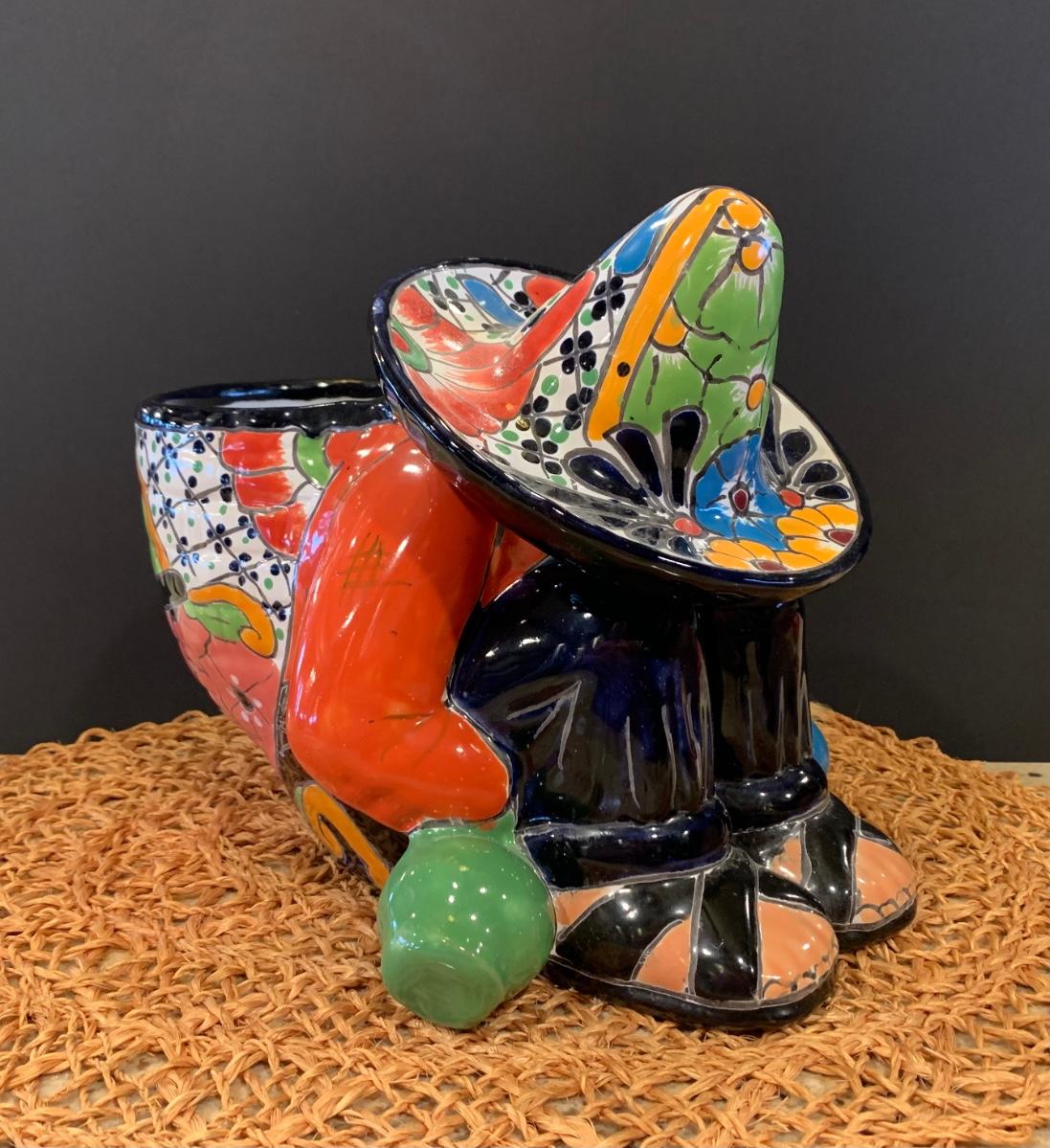 LOT: 16R:  Colorful  Painted  Sleeping Sombrero Man Siesta  Planter