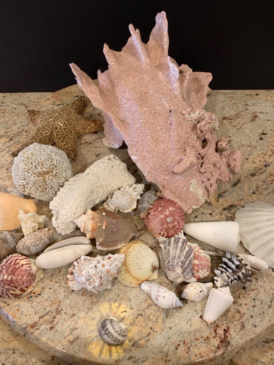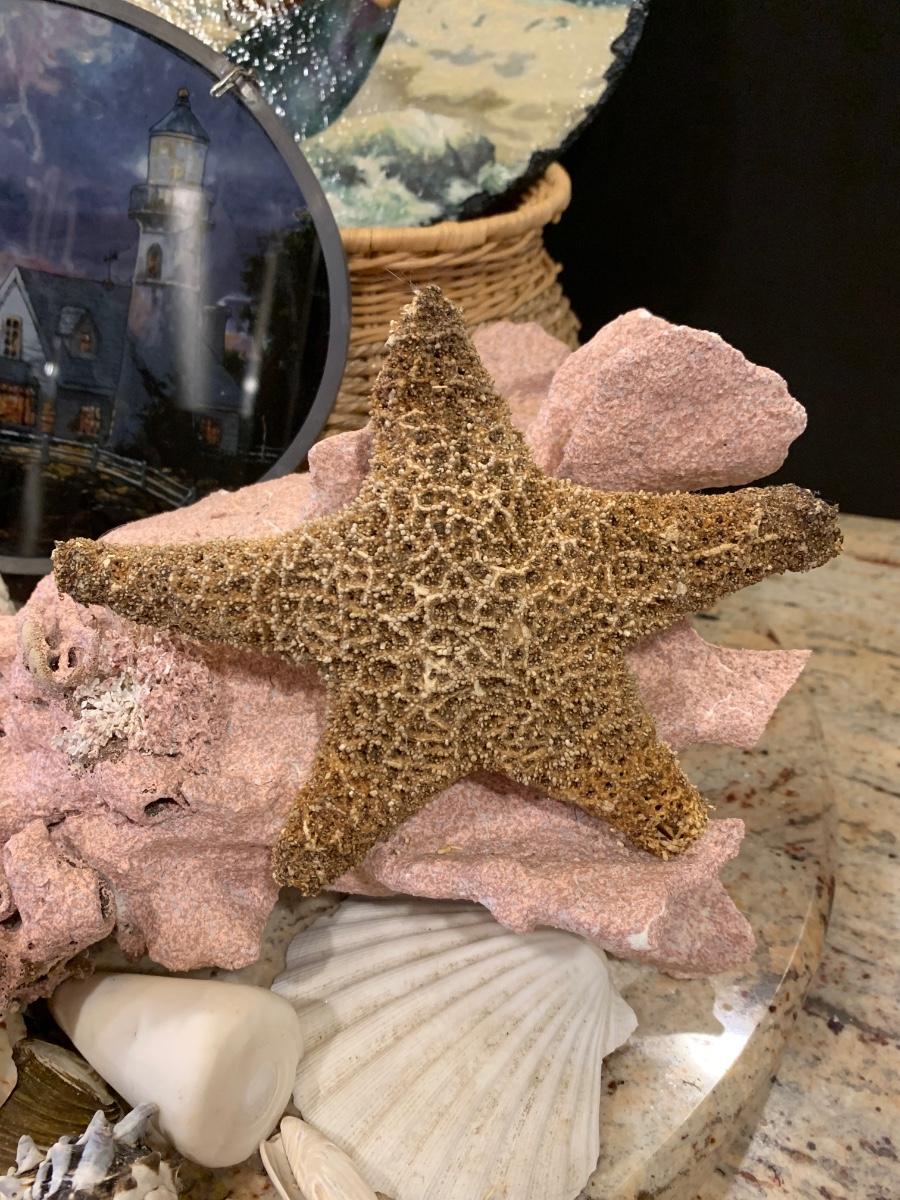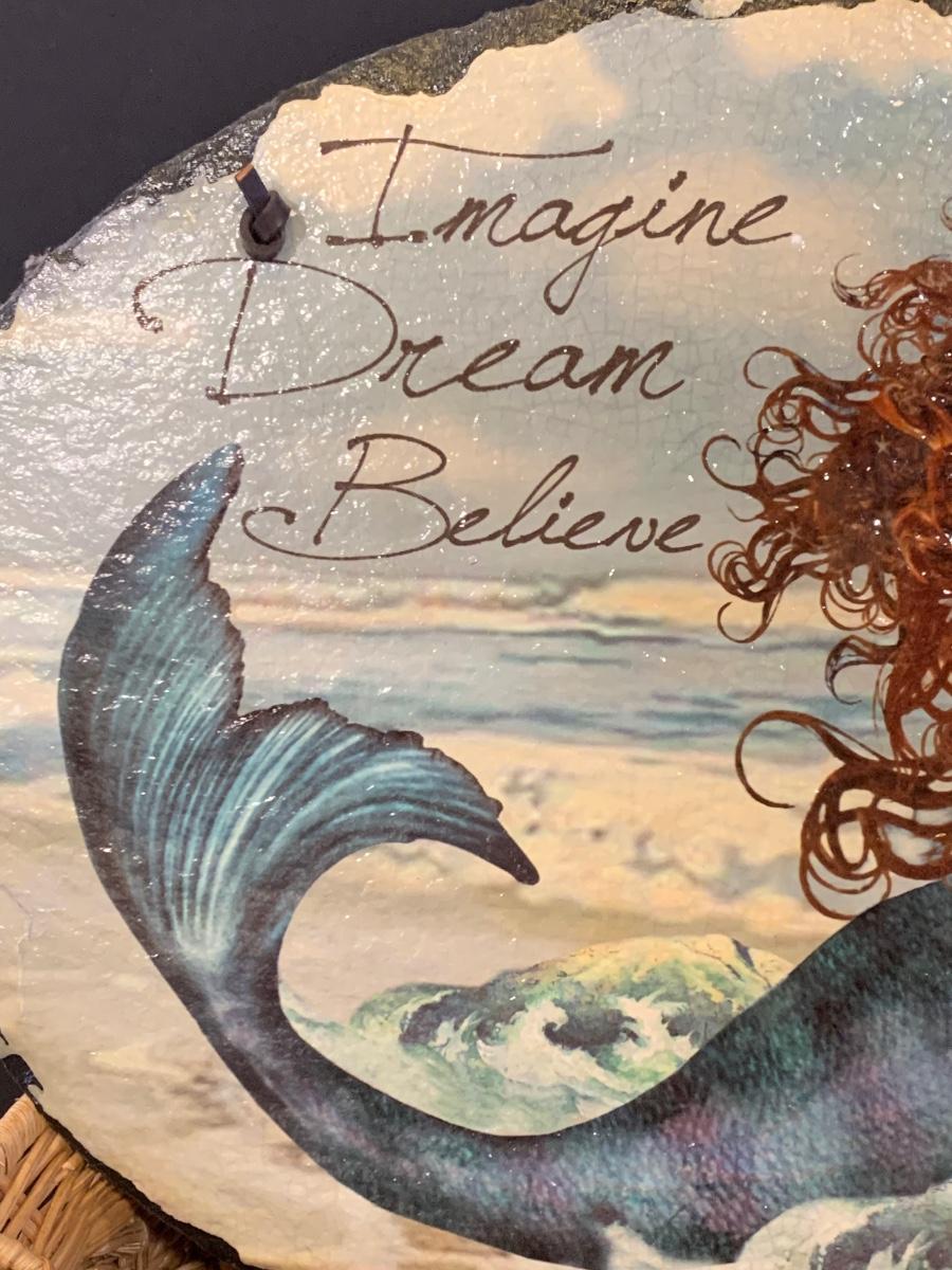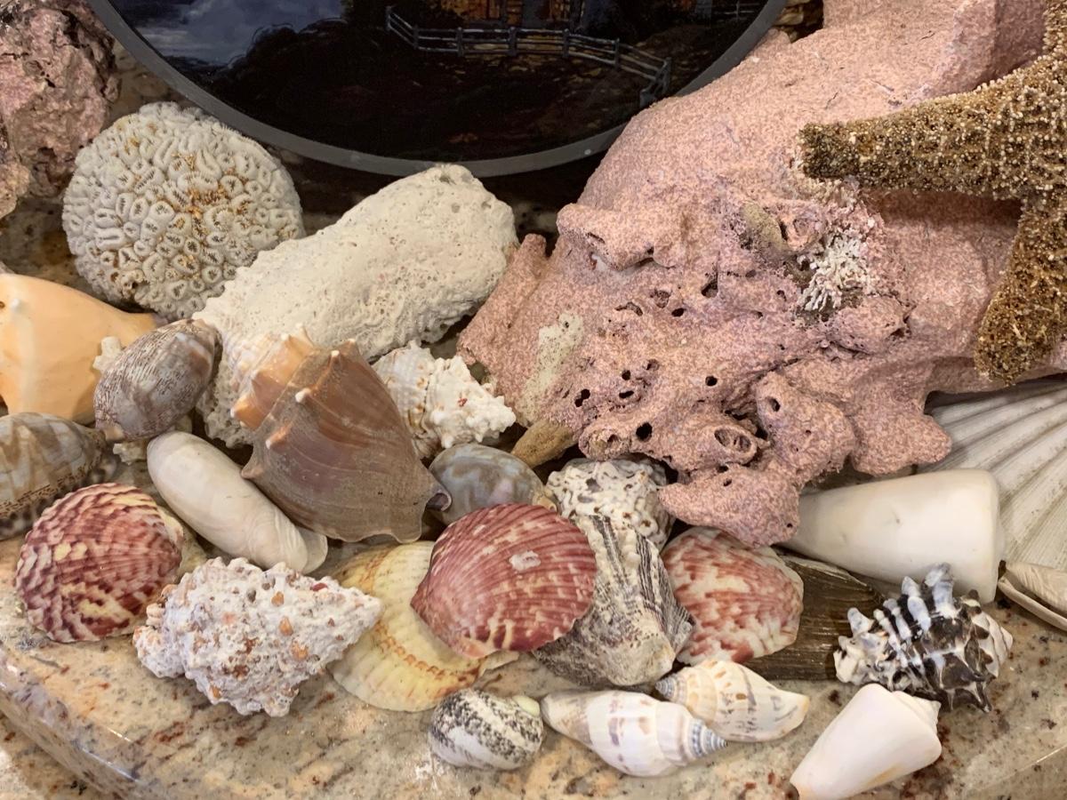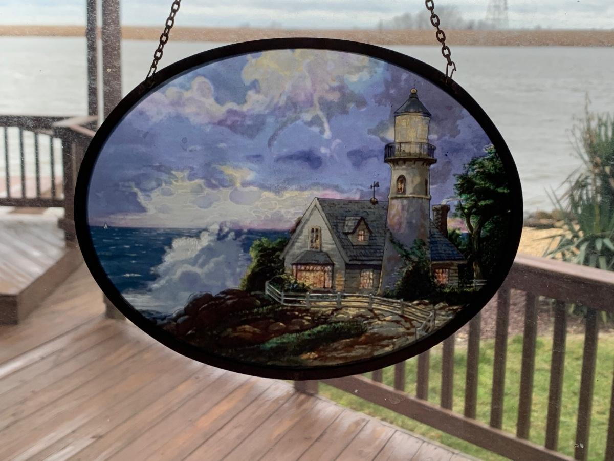LOT 17R: Nautical Decor: Mermaid Painted on Slate, Lighthouse SunCatcher,, Sea Shells & More w/Basket