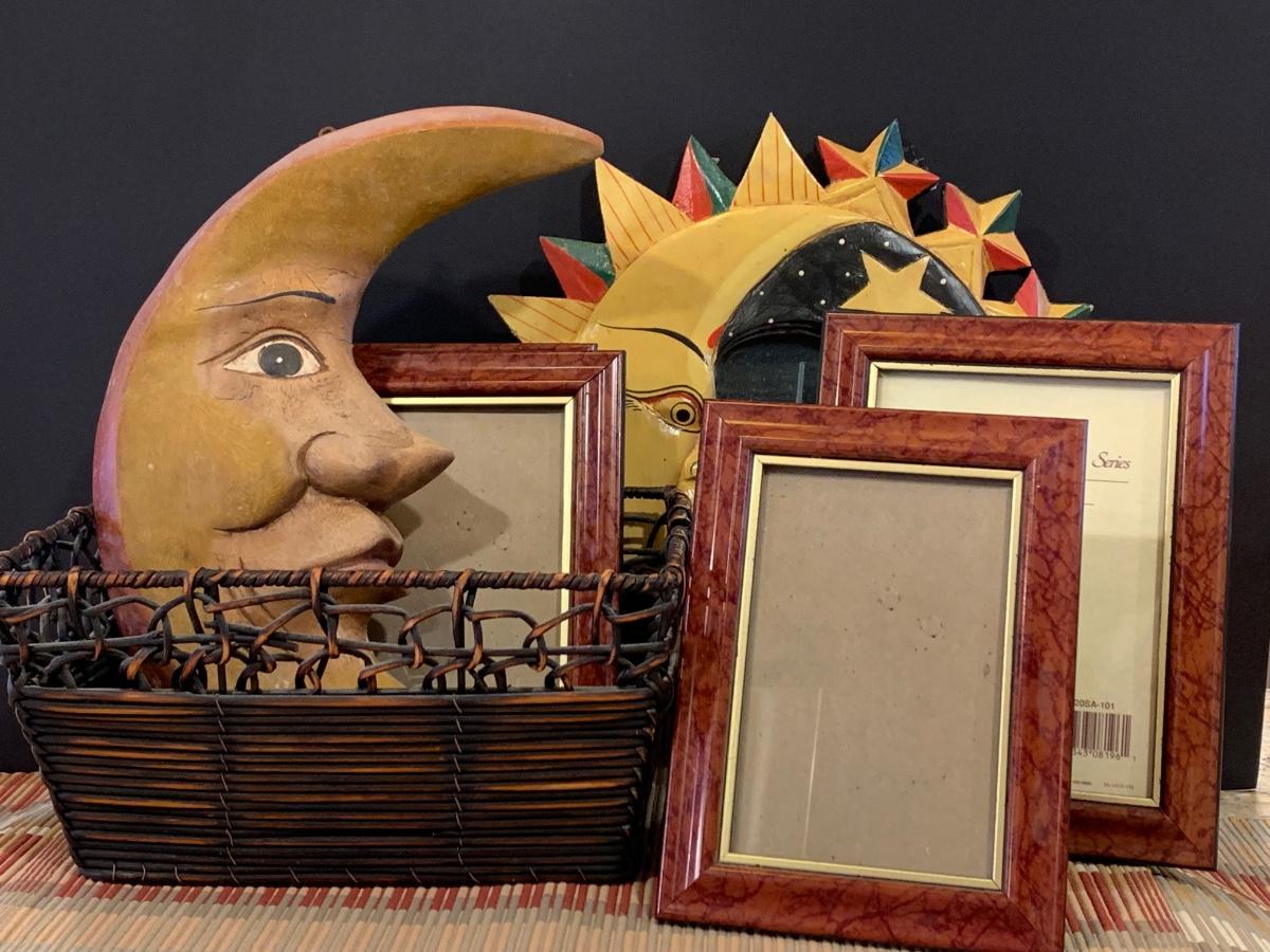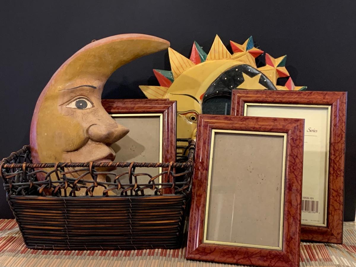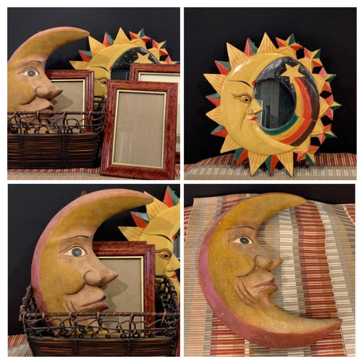 LOT 20R: Home Decor: Wooden Hanging Moon, Matching Picture Frames, Sun,Moon,Stars Mirror