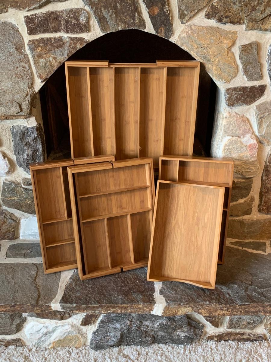 5 expandable wooden drawer organizers