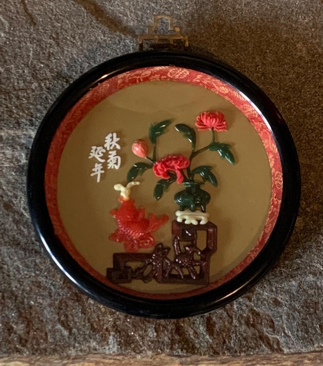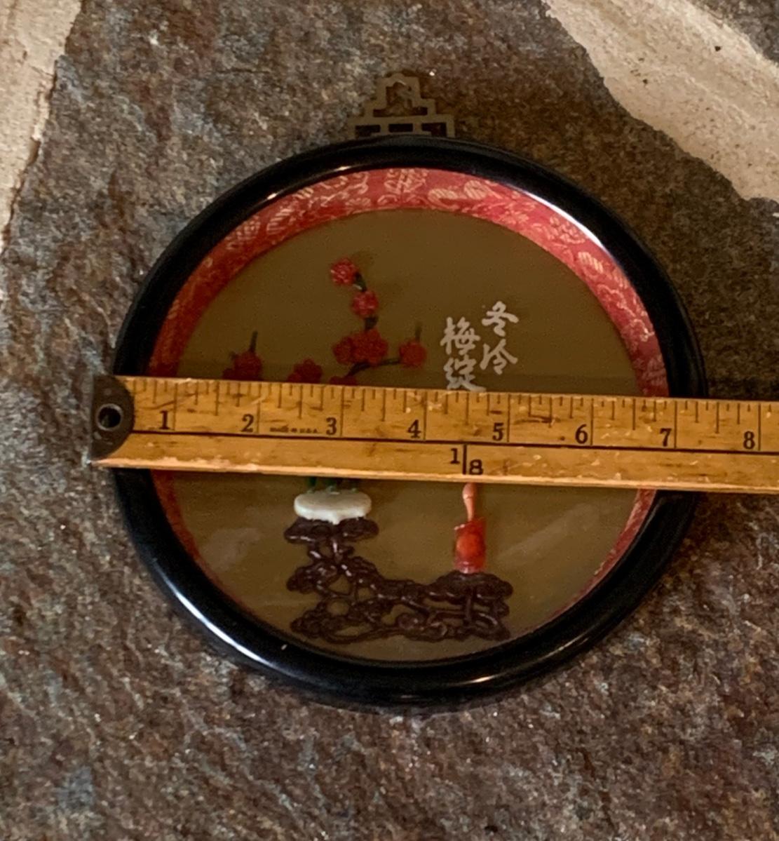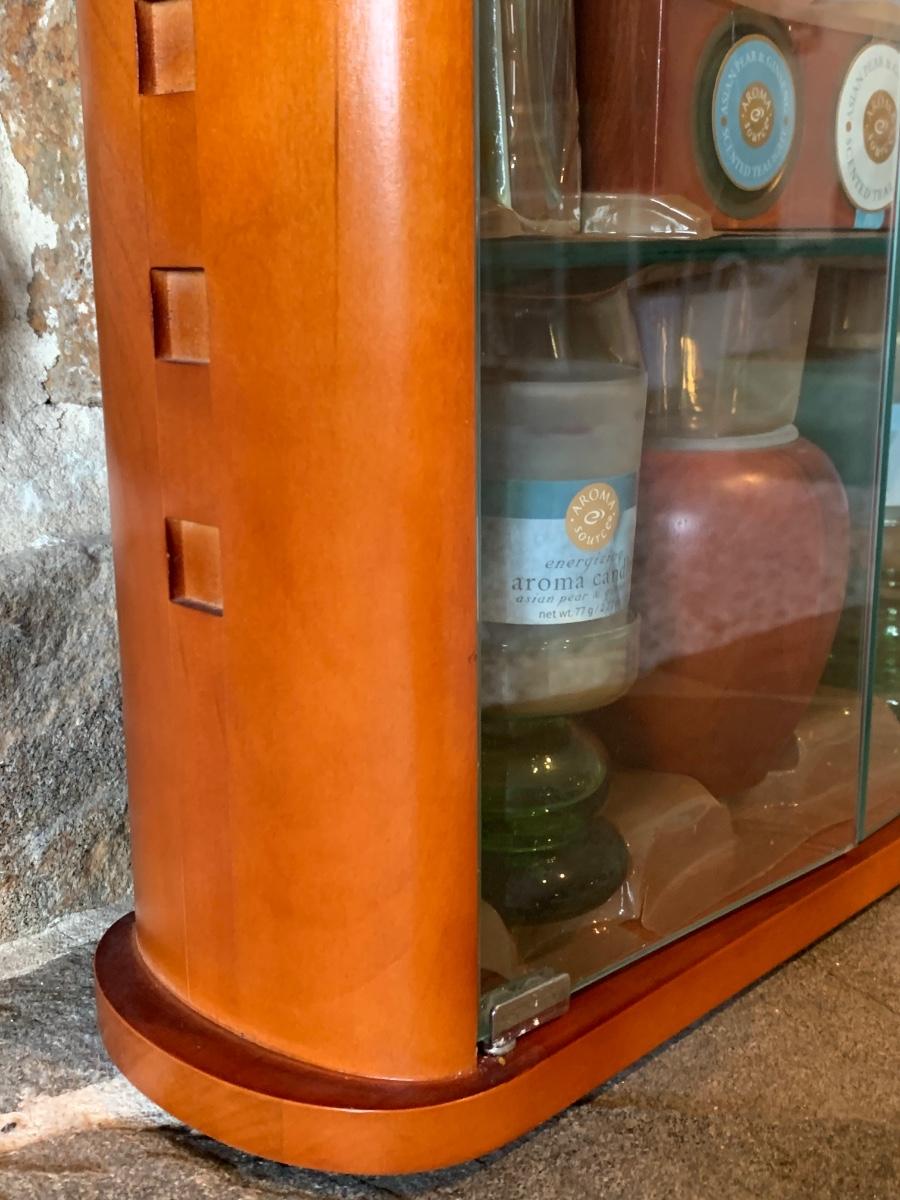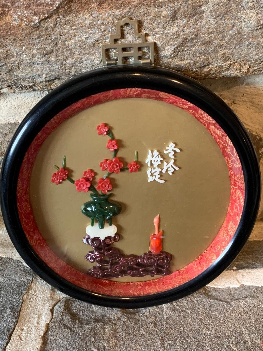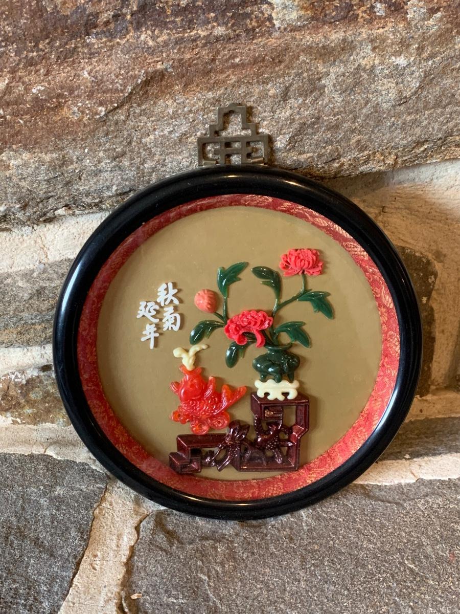 LOT 25R: Vintage Imitation Jade Wall Plaques & Accent Curio Cabinet w/Aroma Source Tealight Candles & Incense
