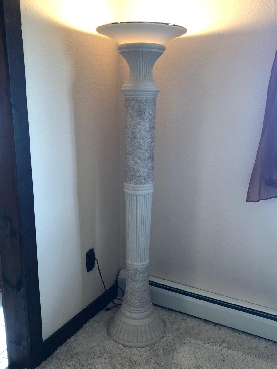 Heavy textured column lamp in working condition. Lamp measures 67" tall.