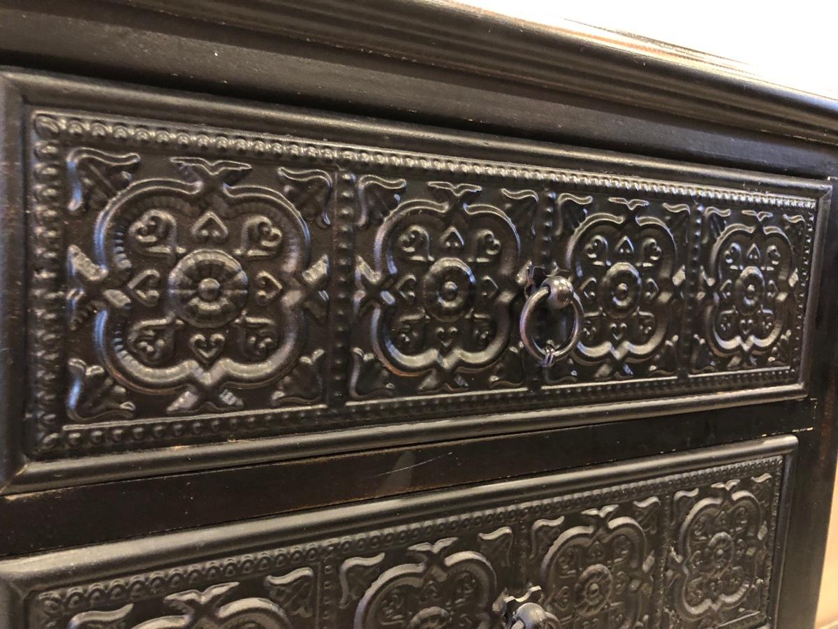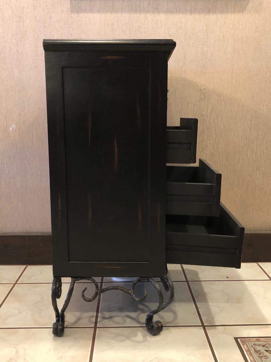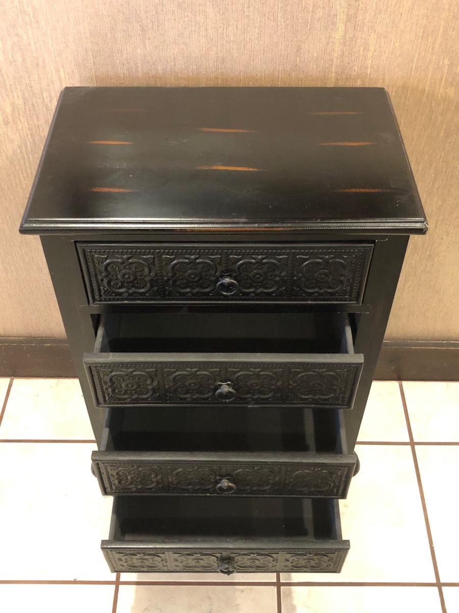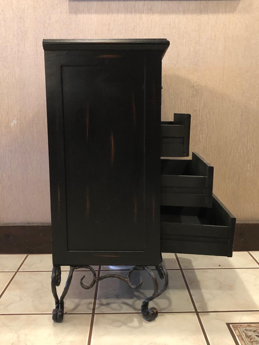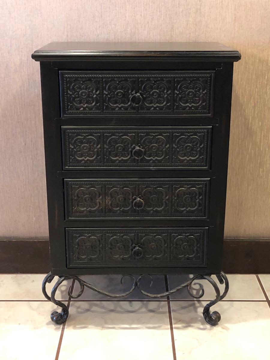 Lightweight wooden cabinet with metal legs and four drawers. Measures 21W x 13D x 32H.