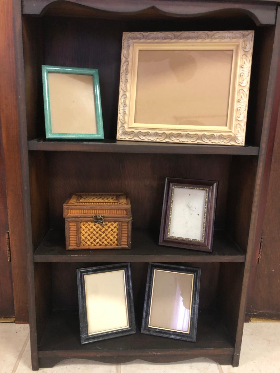 LOT41M: Wooden Shelf w/ Frames & Trinket Box