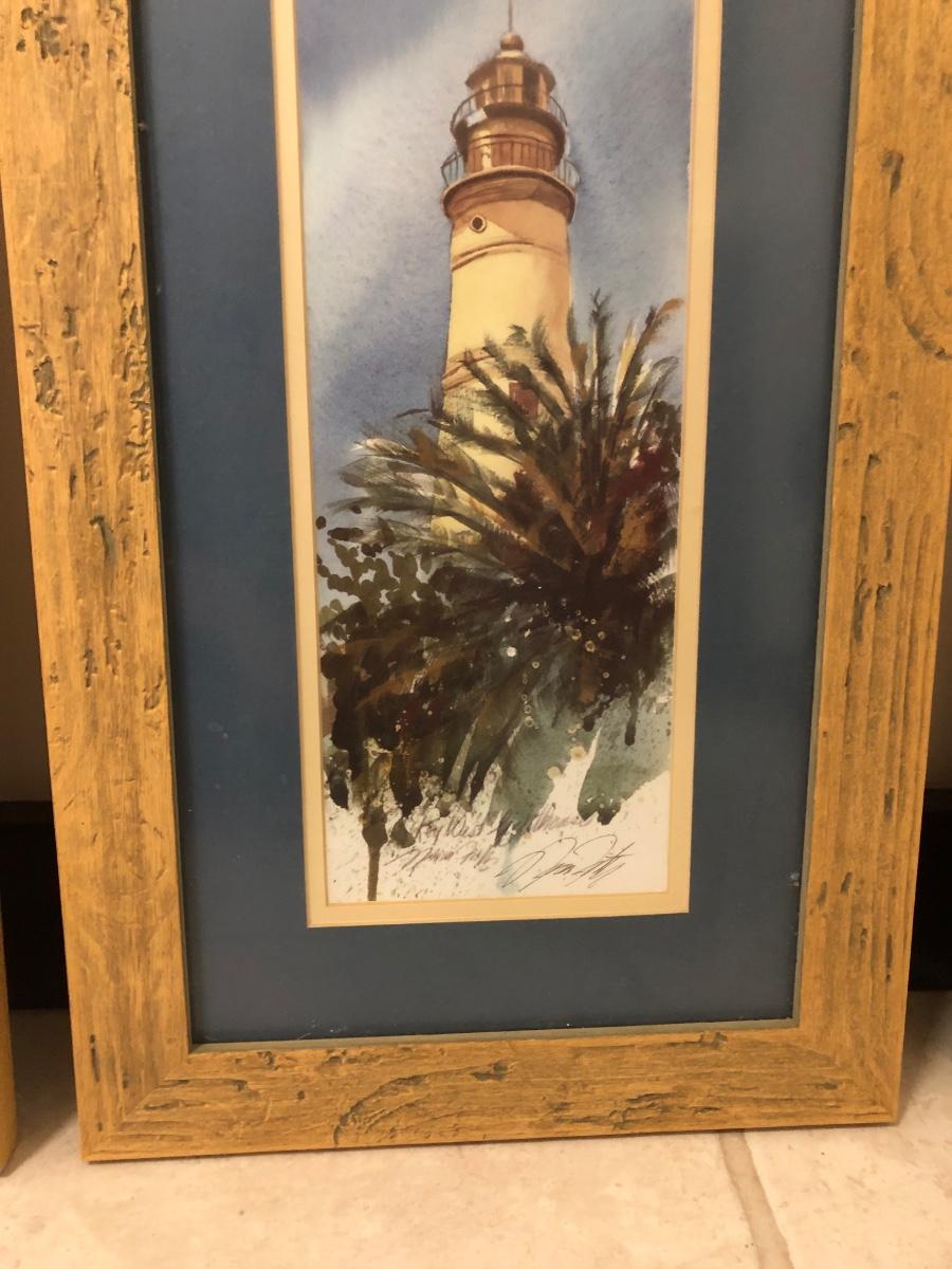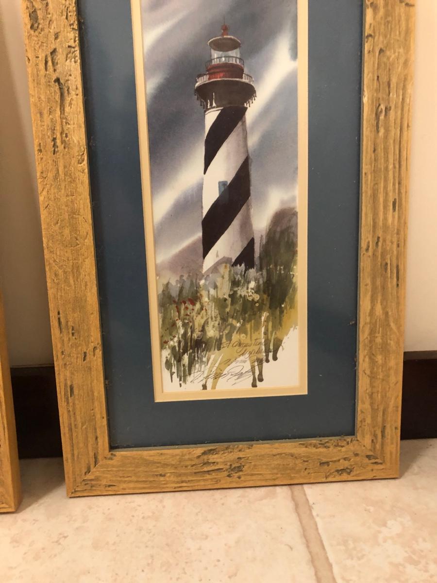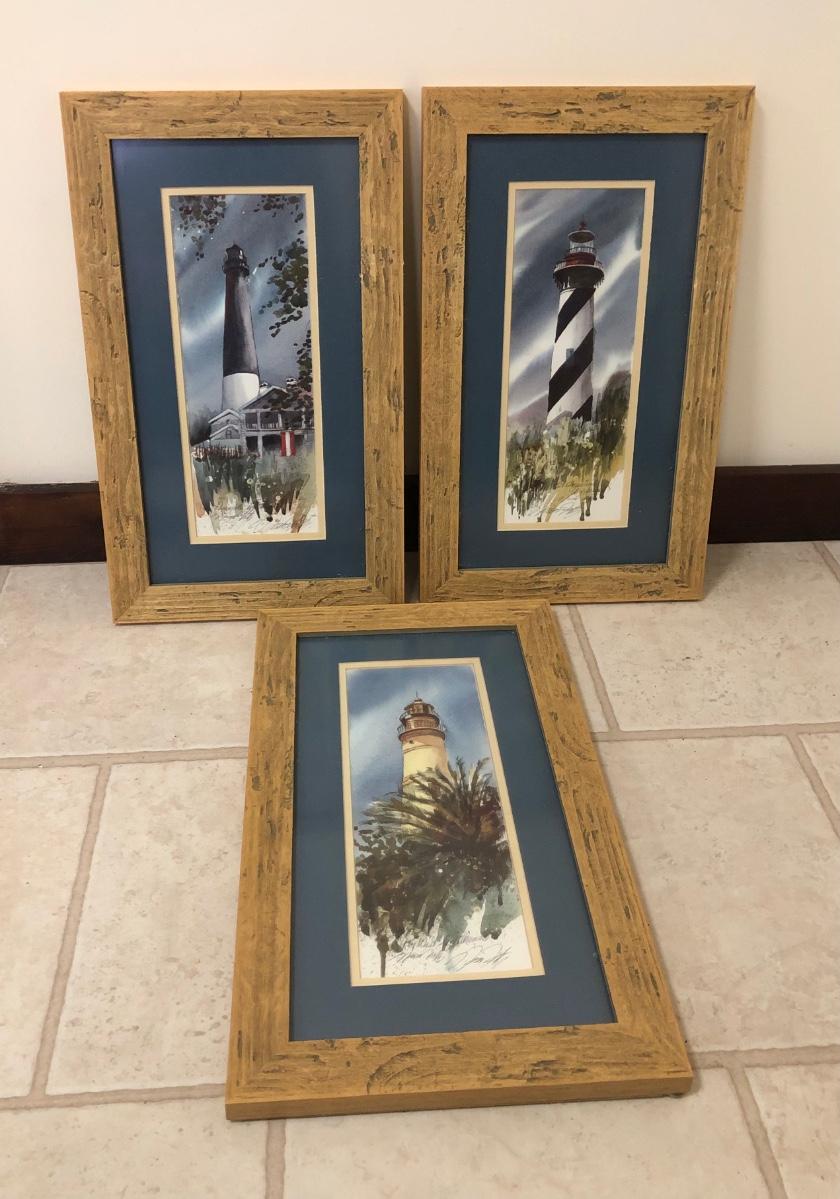 Three framed prints depicting different lighthouses. Each measure 11.5 x 20 inches.