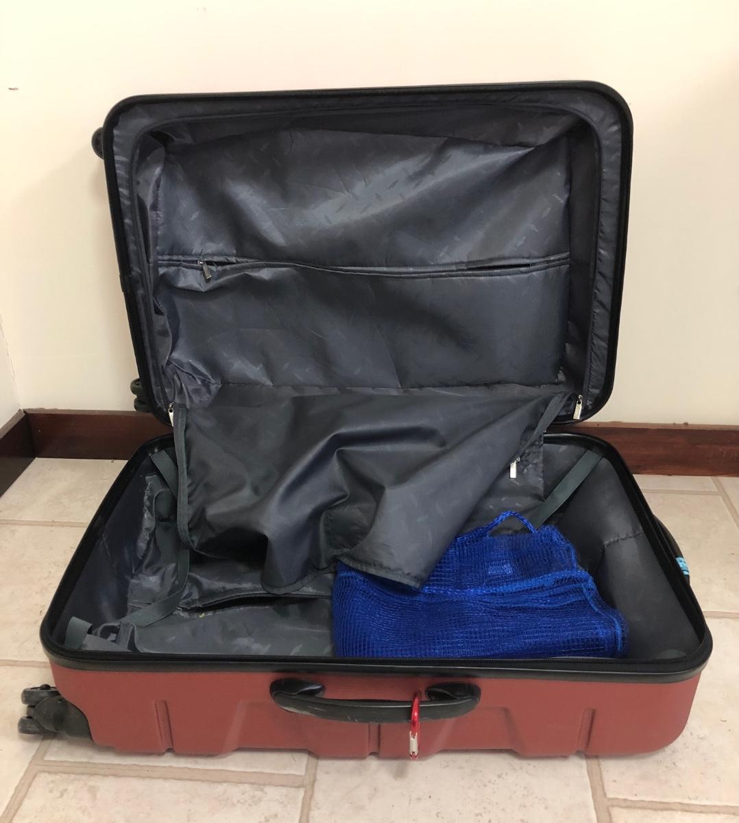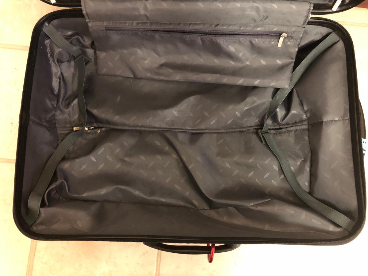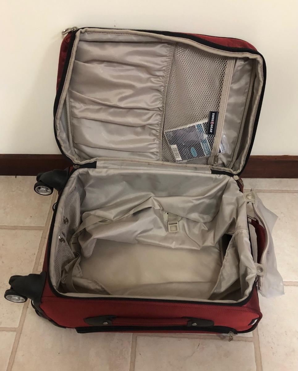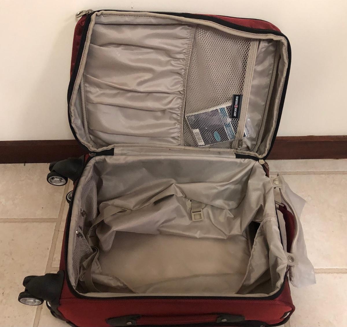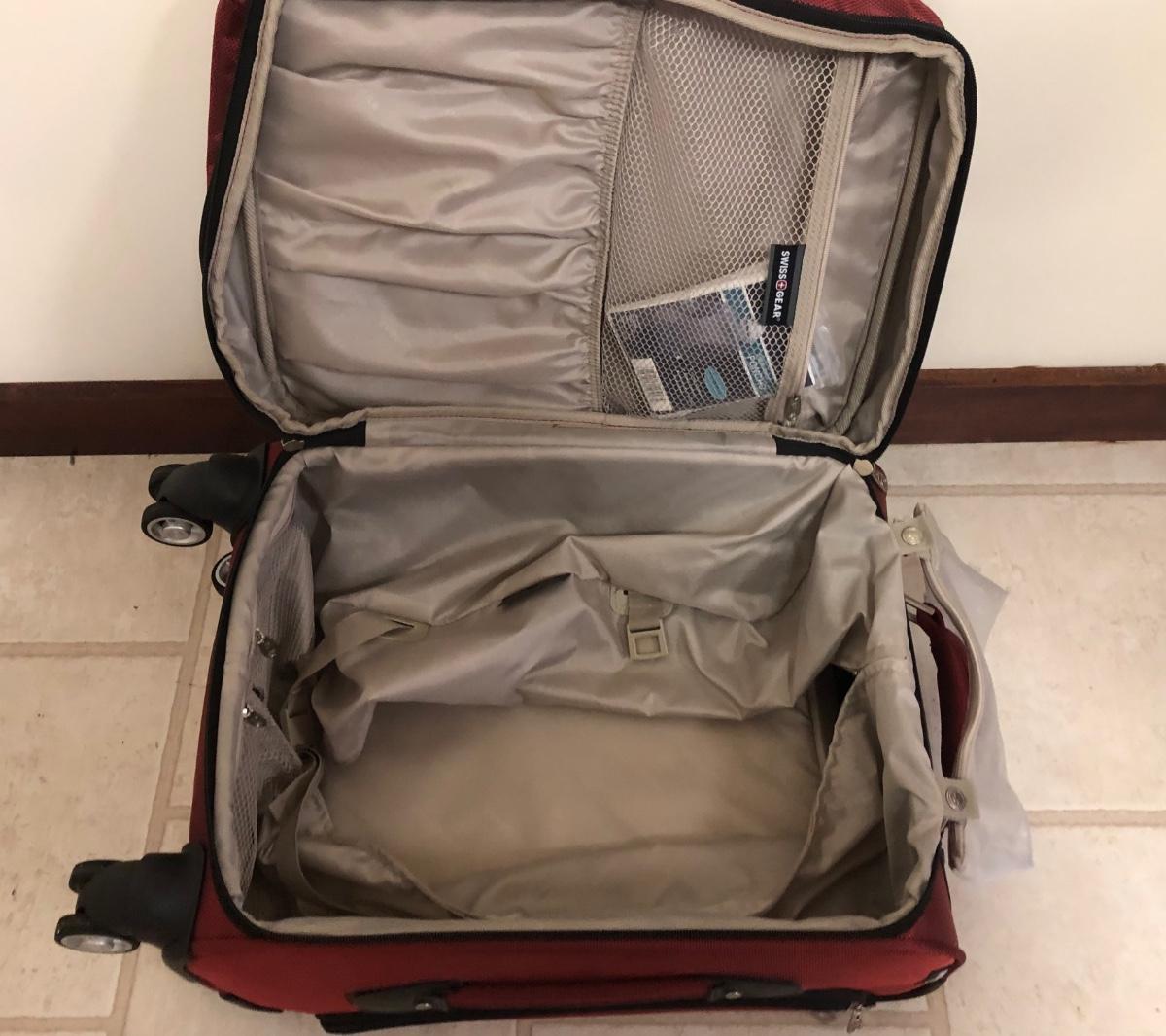 Includes one large hard Jeep suitcase and a medium sized Swiss Gear suitcase. Both have inside pockets, the Swiss Gear has outside pockets as well. Both roll well and are in good condition.