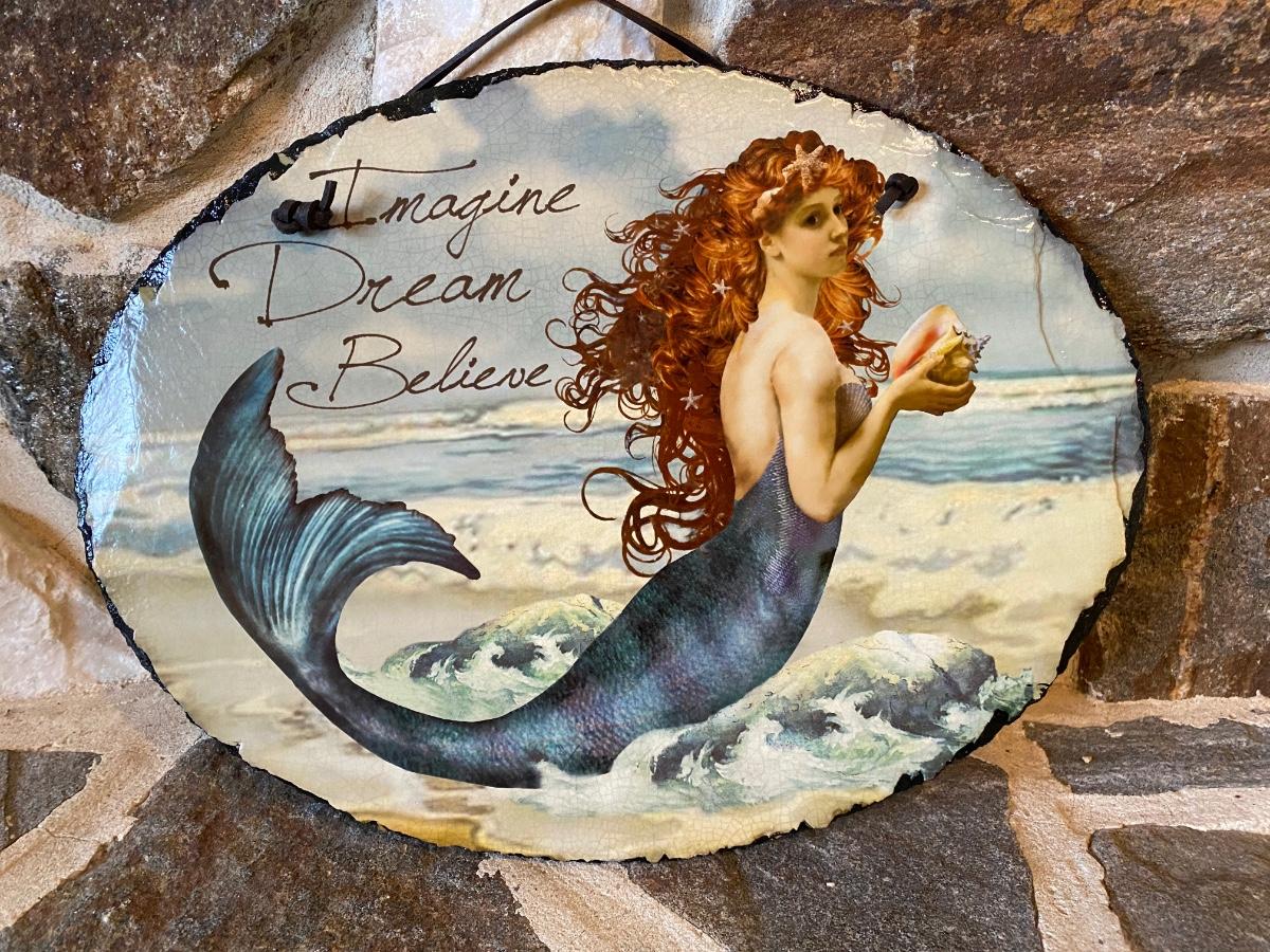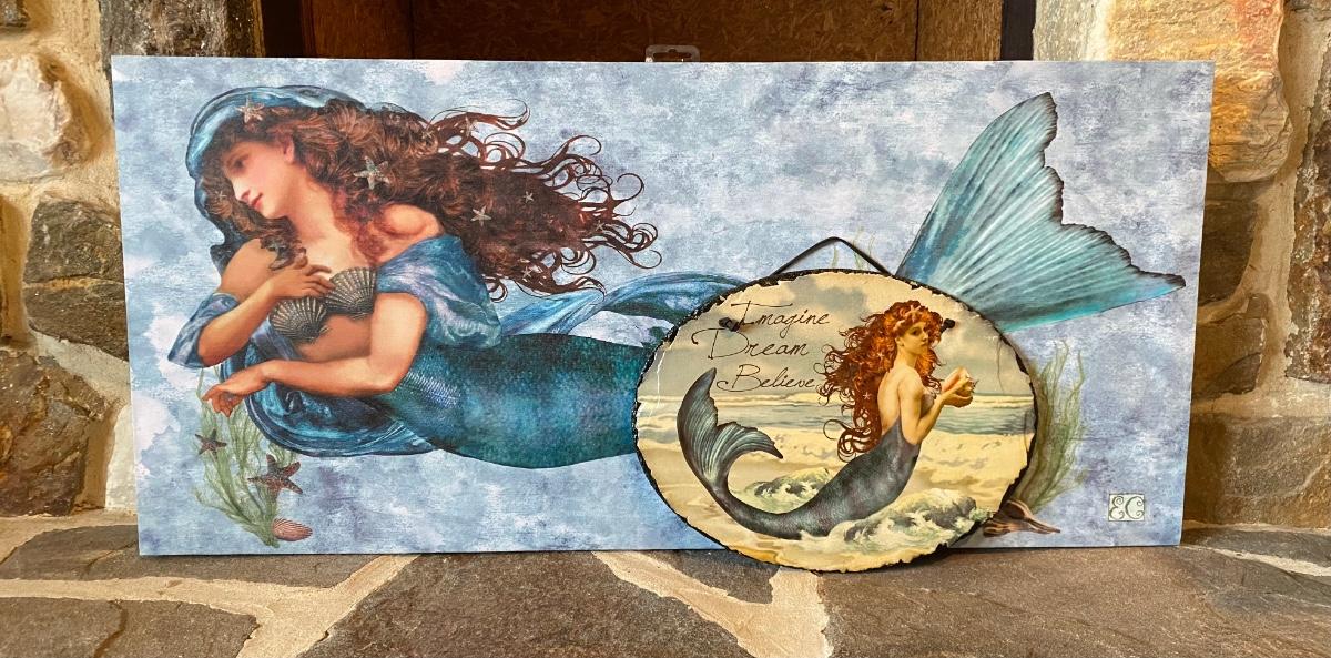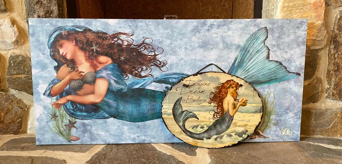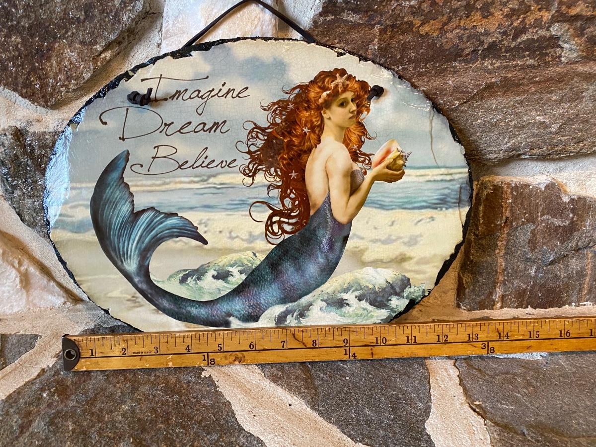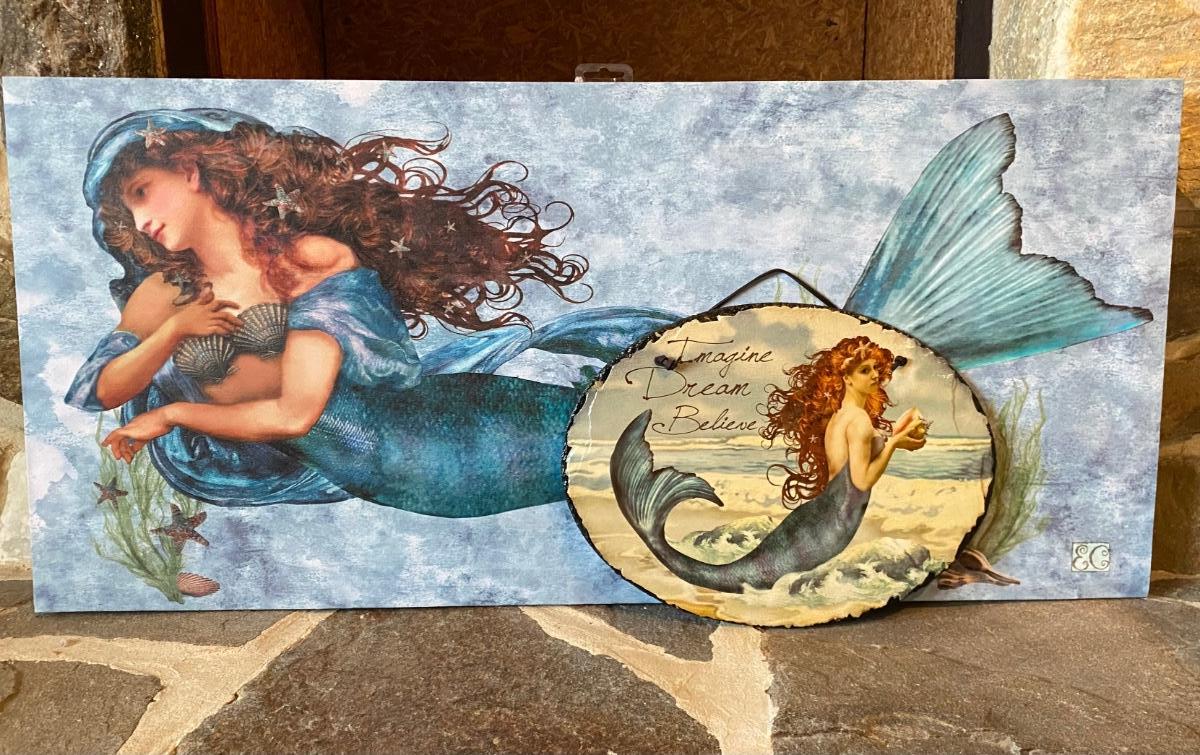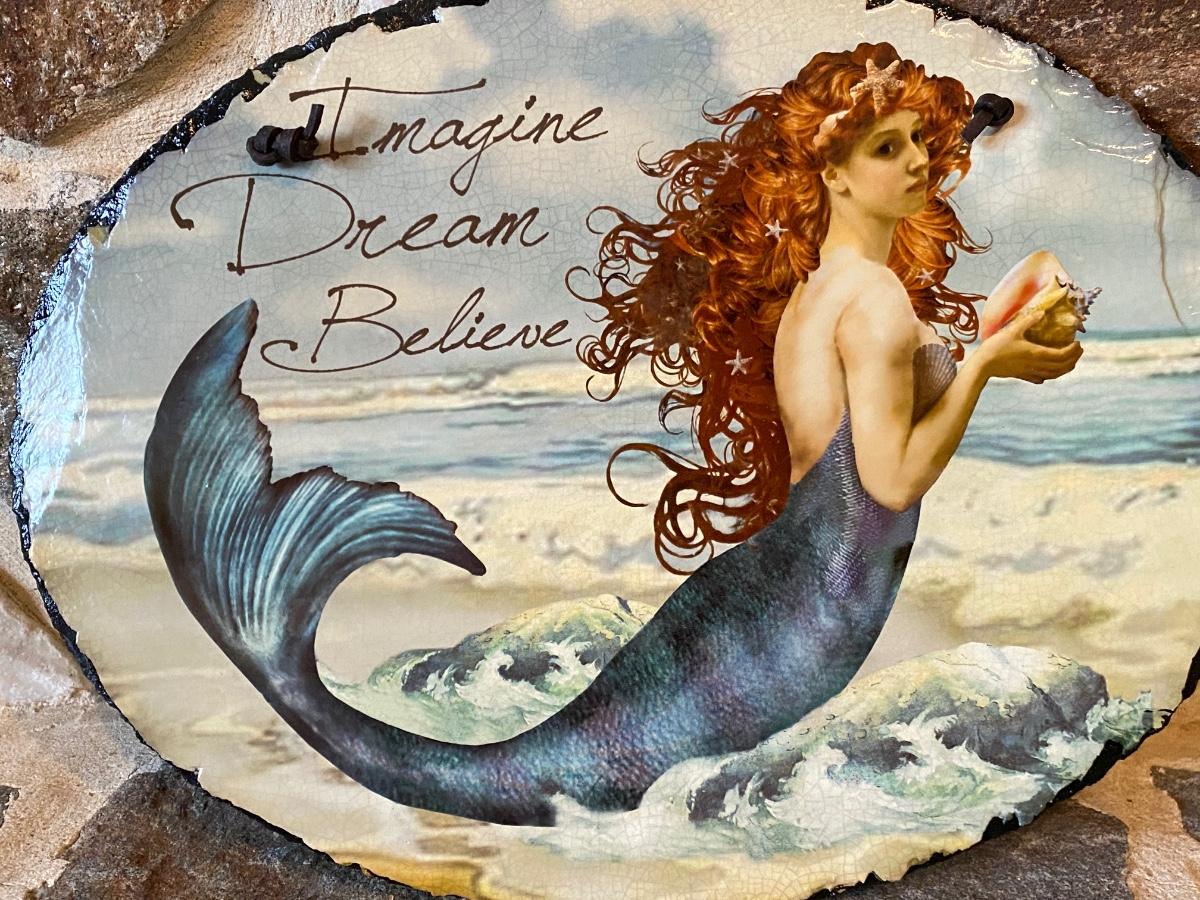 Two mermaid wall art. Please see all pictures as they are the best representation of the items. The pictures show condition, measurements if taken, and what is included in the lot. Due to the large amount that we photograph and the time frame, we are not always able to take measurements. All items unless noted, are pre-owned and have been used. If you purchased furniture, you must bring help. We do not allow one person to carry large furniture out on their own. Bring help, tools and a truck for the safety of our client’s homes, and your personal safety. Any damages that result to the property including walls, and floors due to moving of the furniture will be charged to the buyer. Company policy. Thank you.