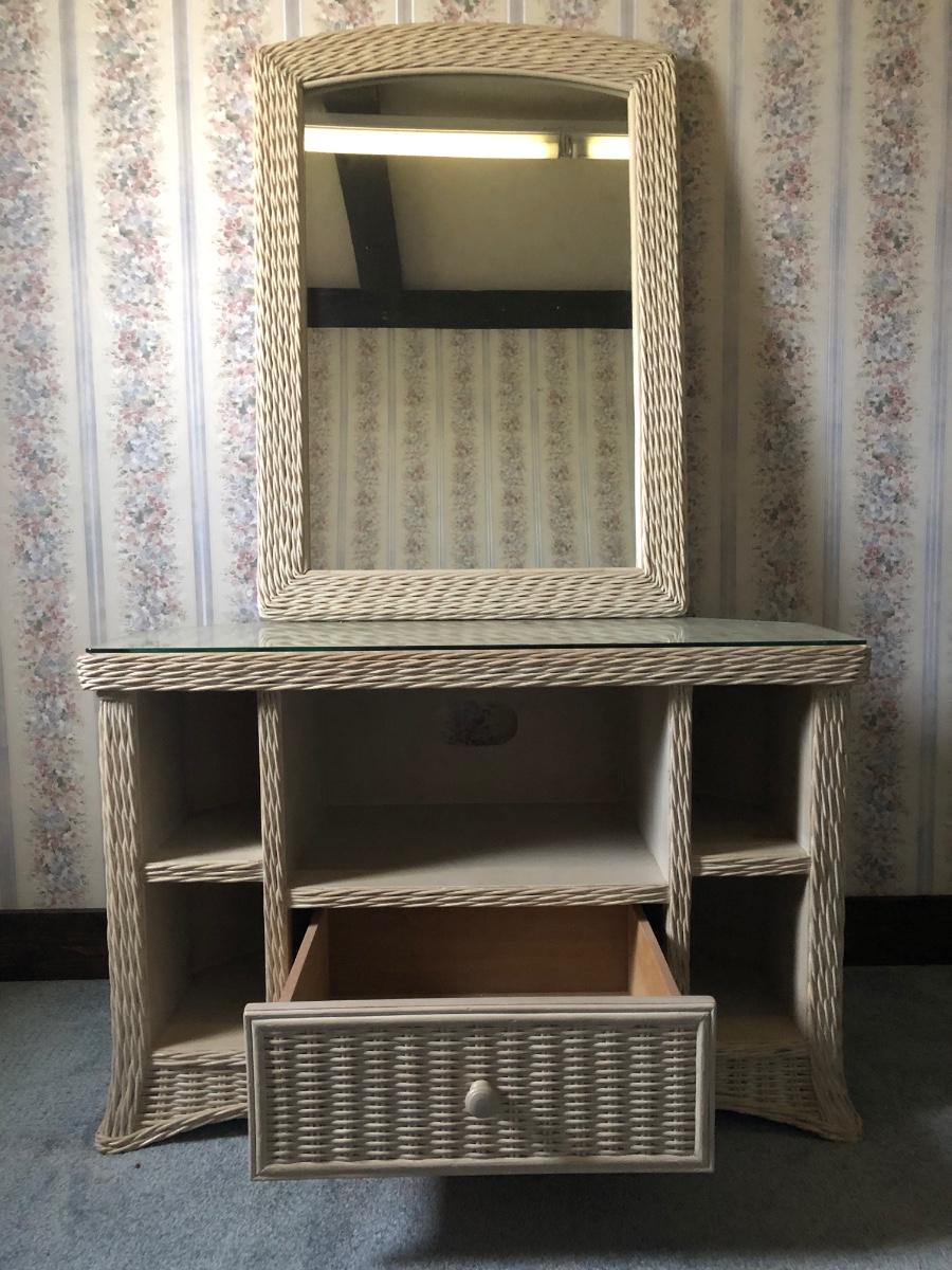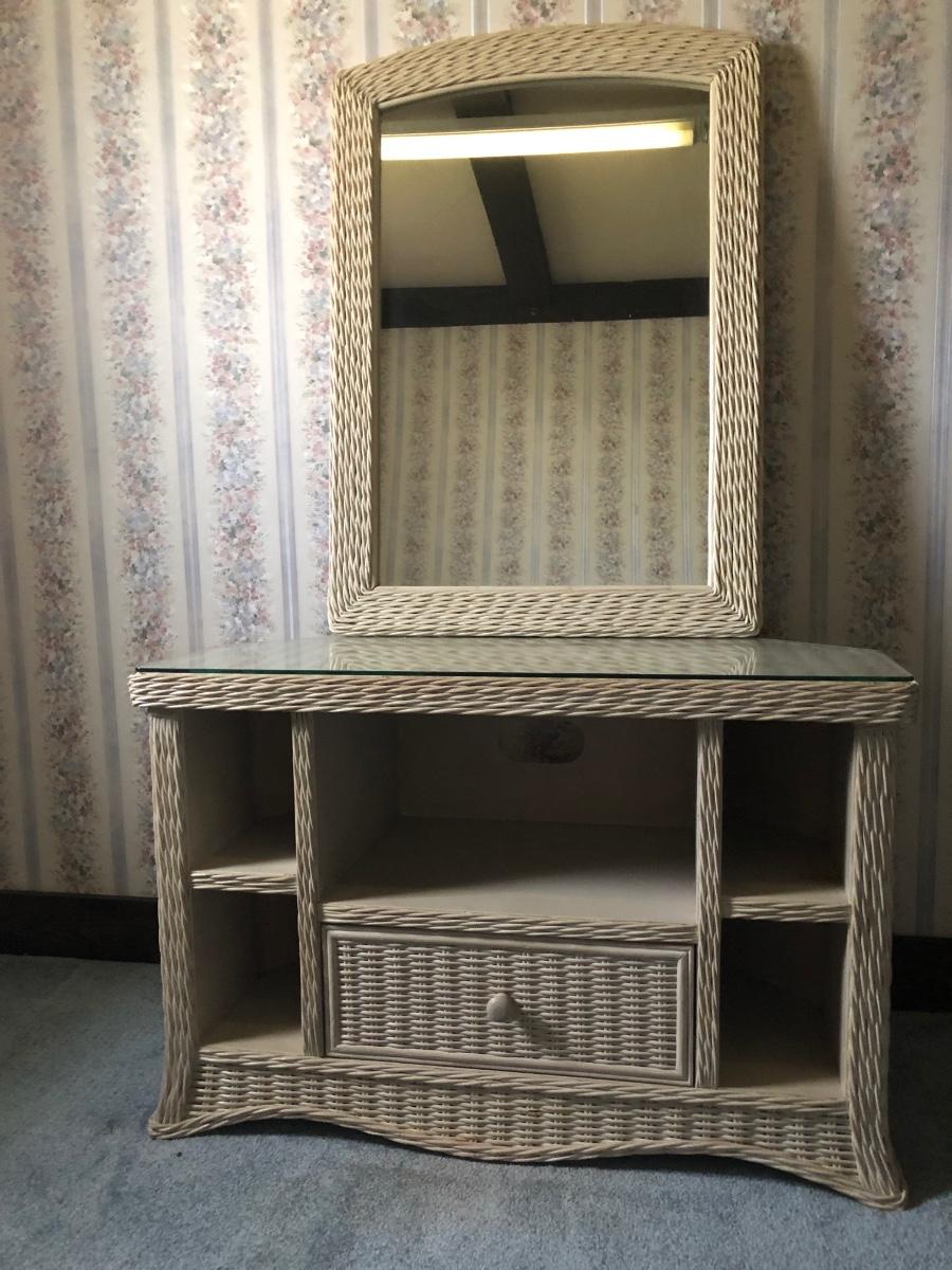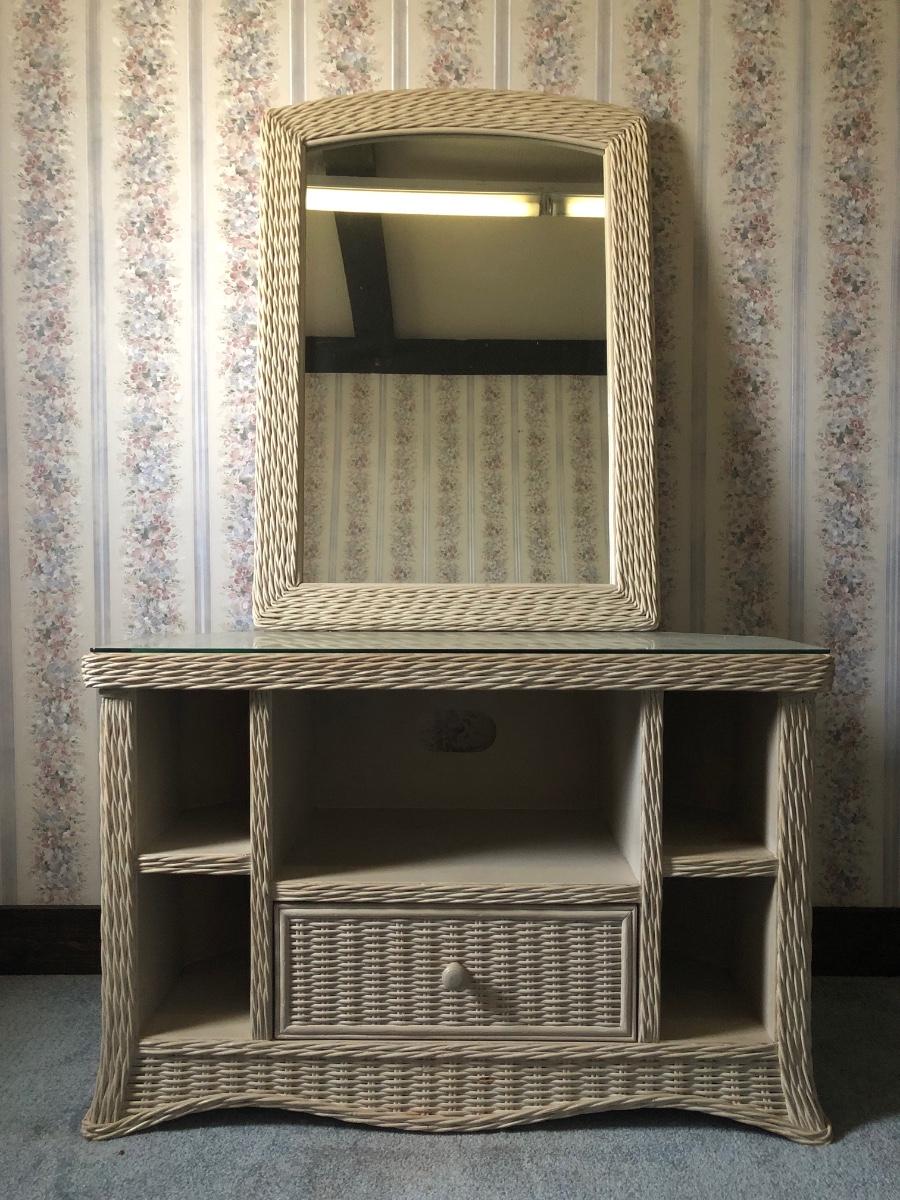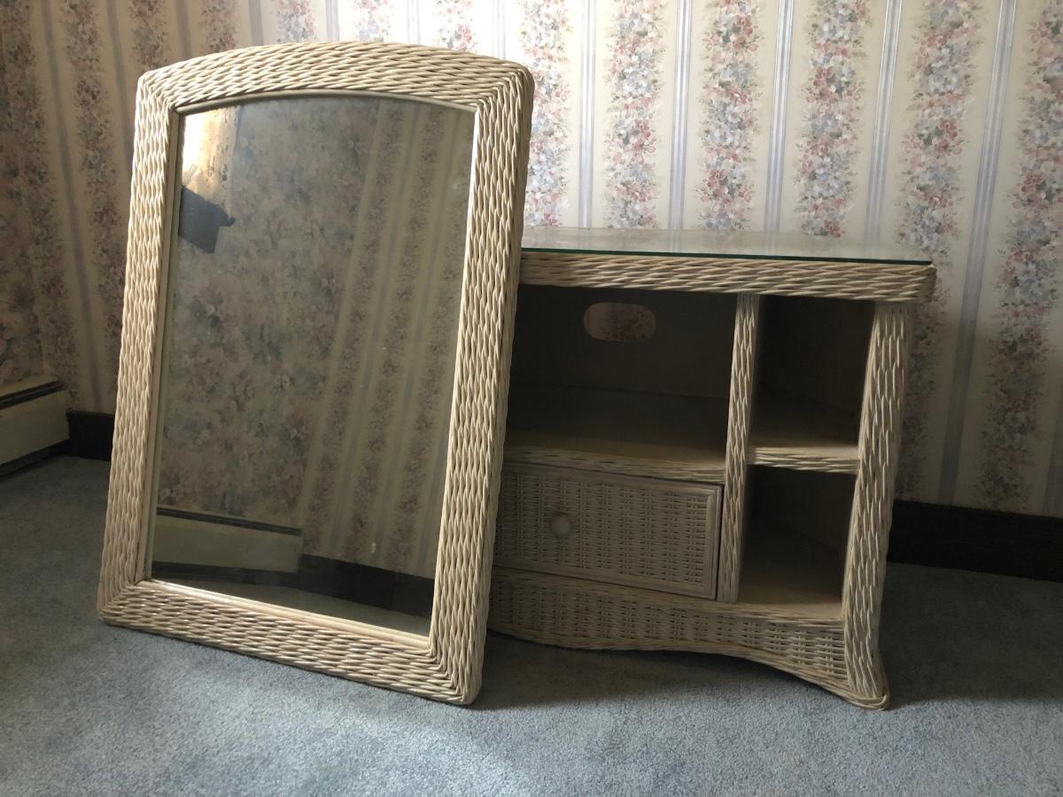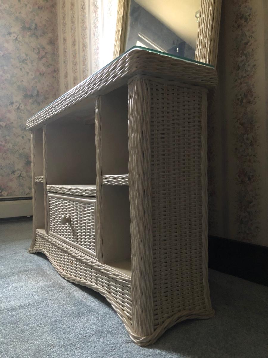 LOT93M: Wicker Collection: Mirror & Accent/Entertainment Console Table