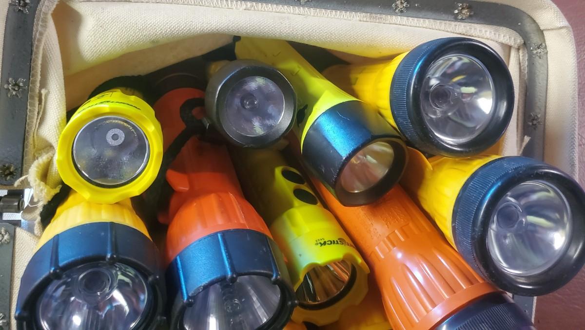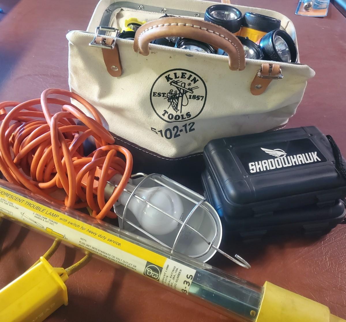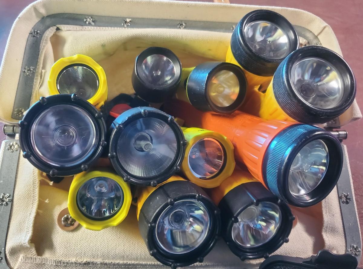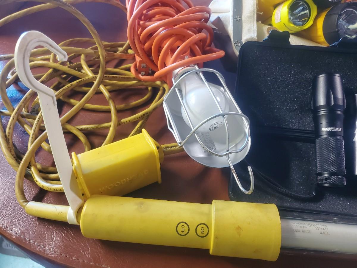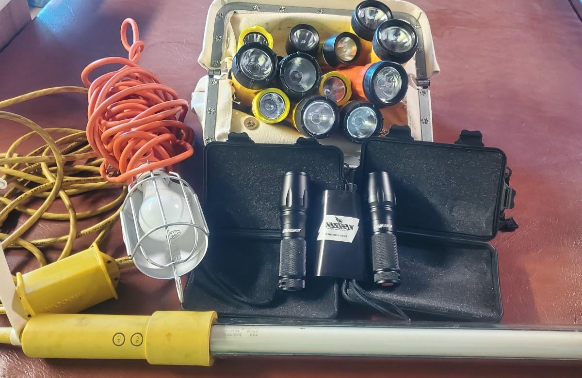 Untested. Flashlight lot. Comes with two hanging lights. Orange hanging light does work.