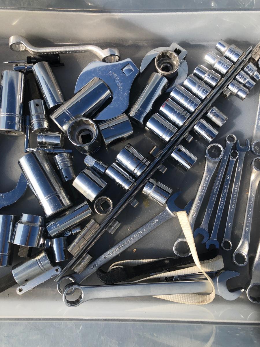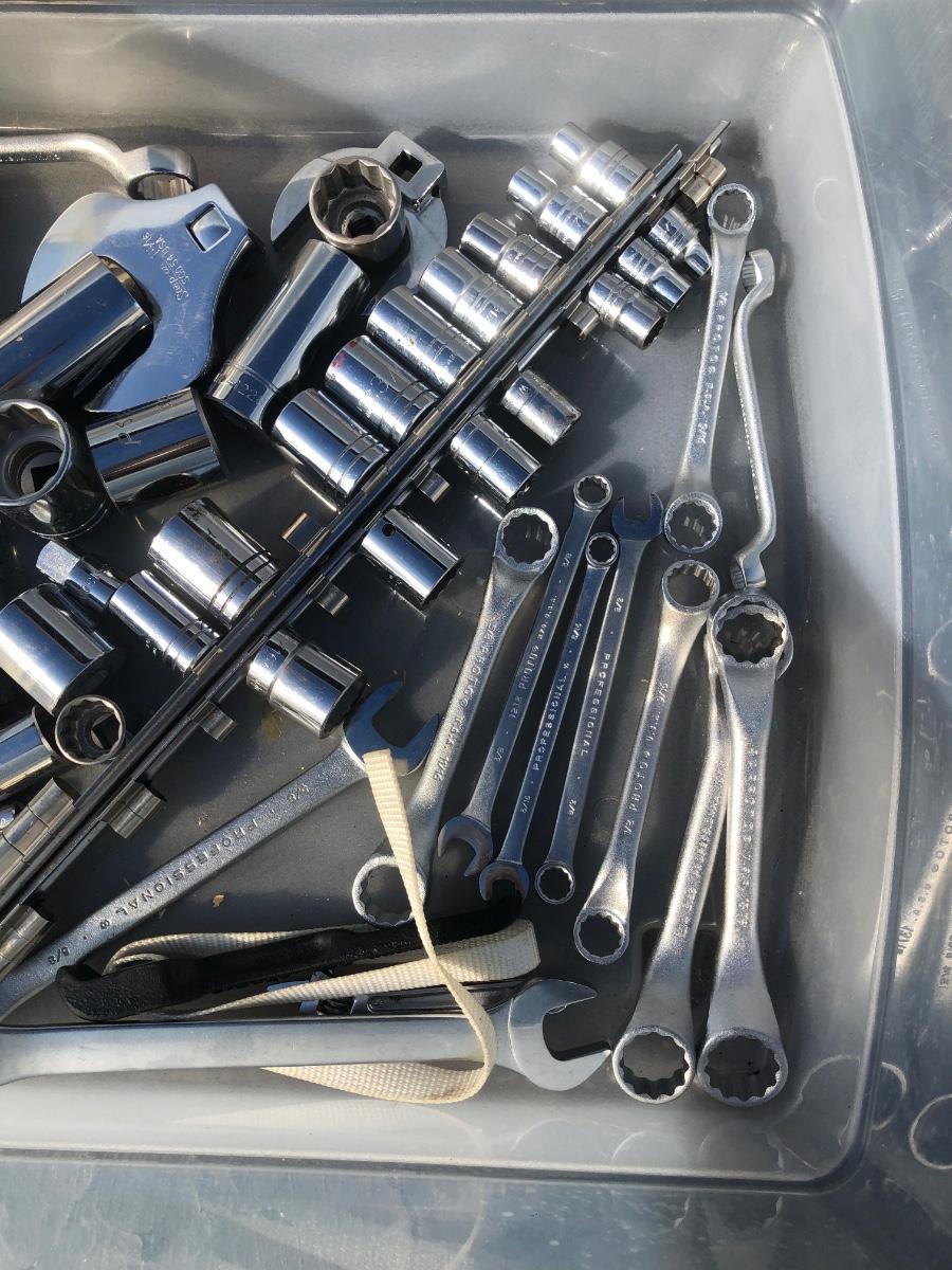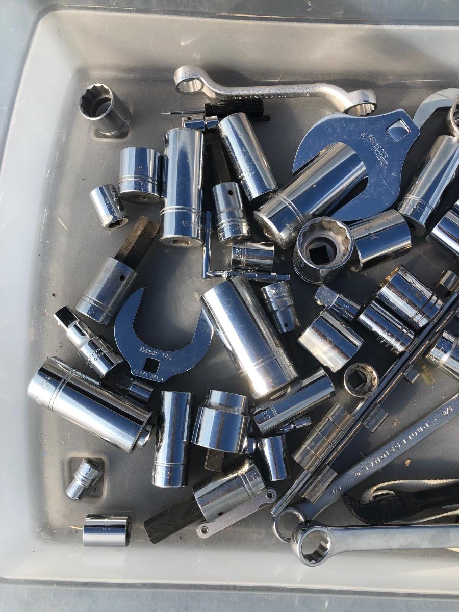 LOT132M: Tote of Tools Lot: Wrenches, Sockets, Fuses and More
