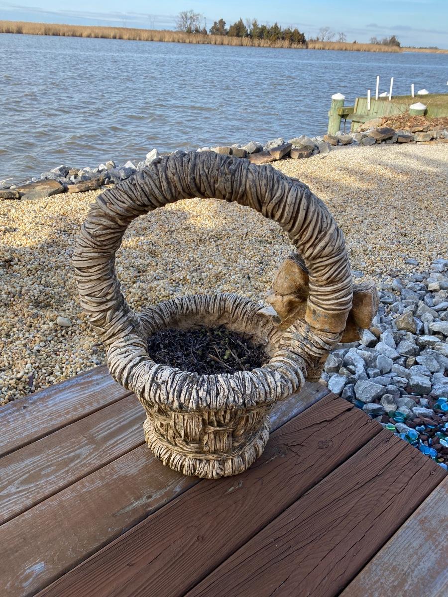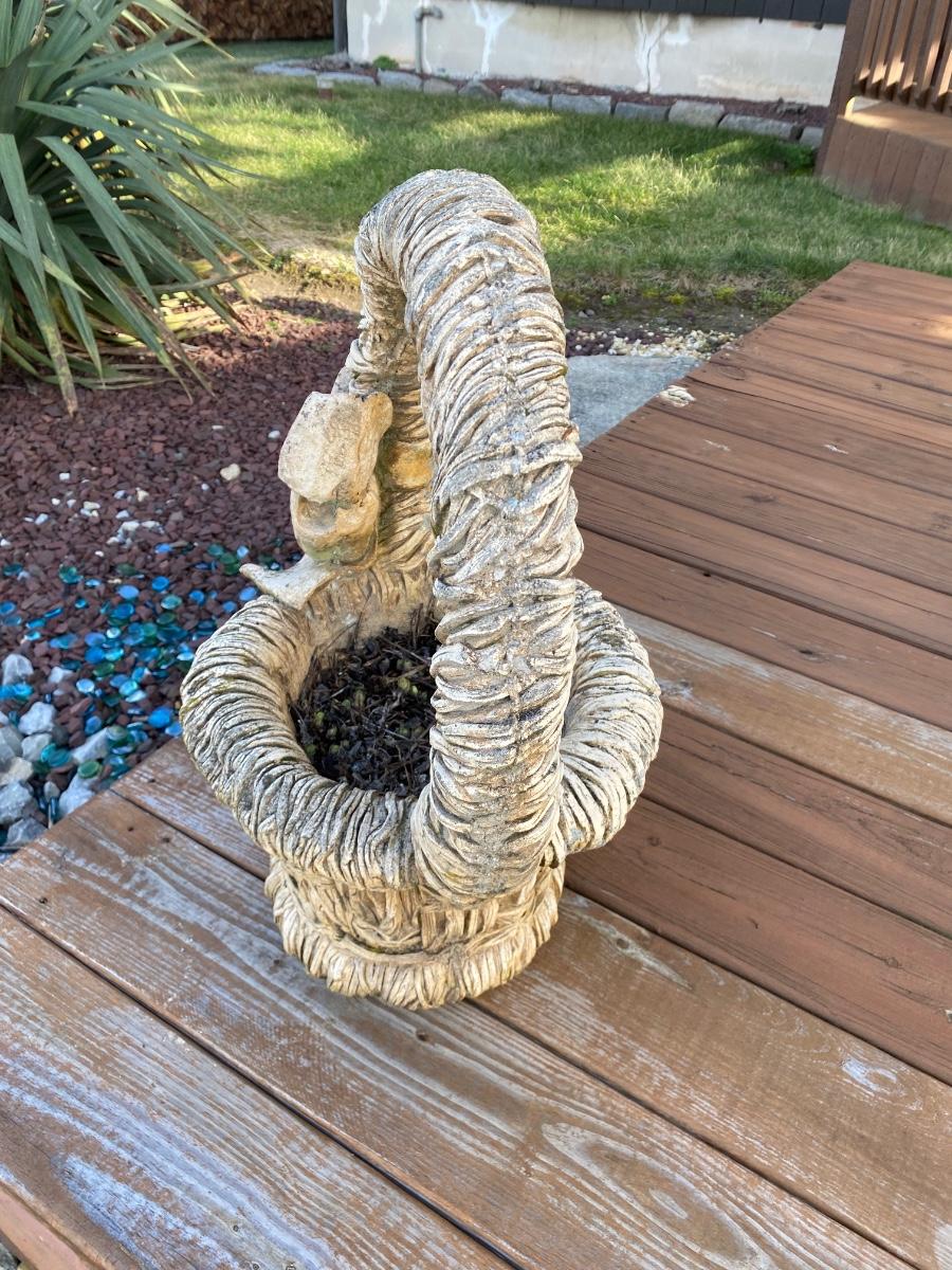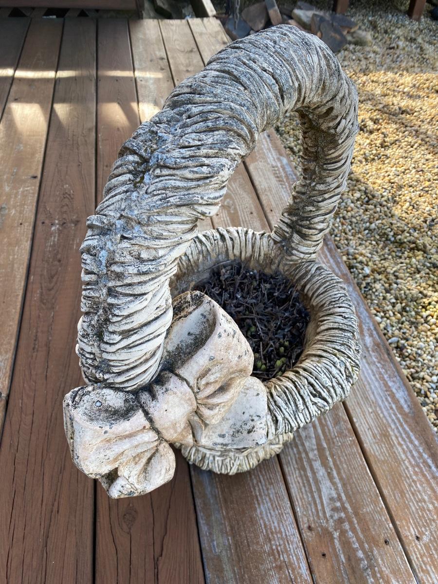 LOT 142: Concrete Basket w/Bow Planter