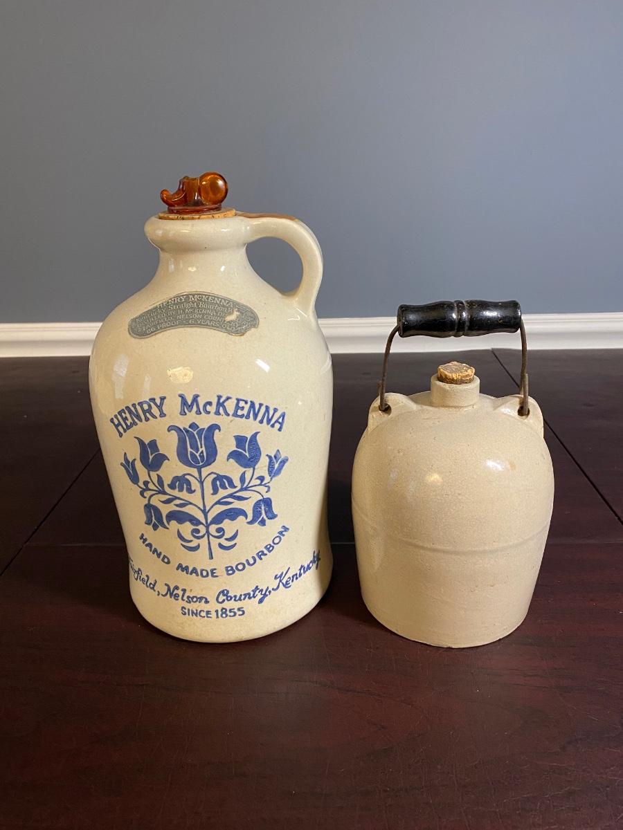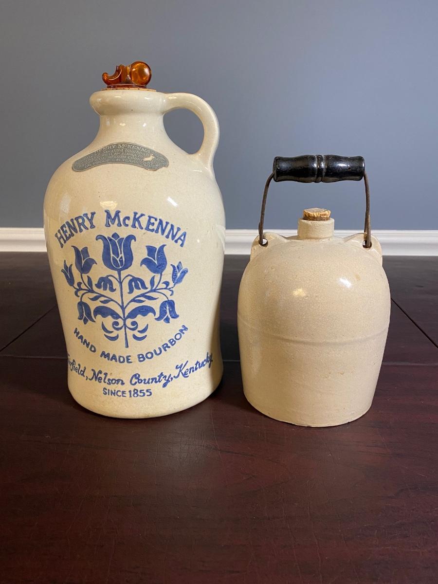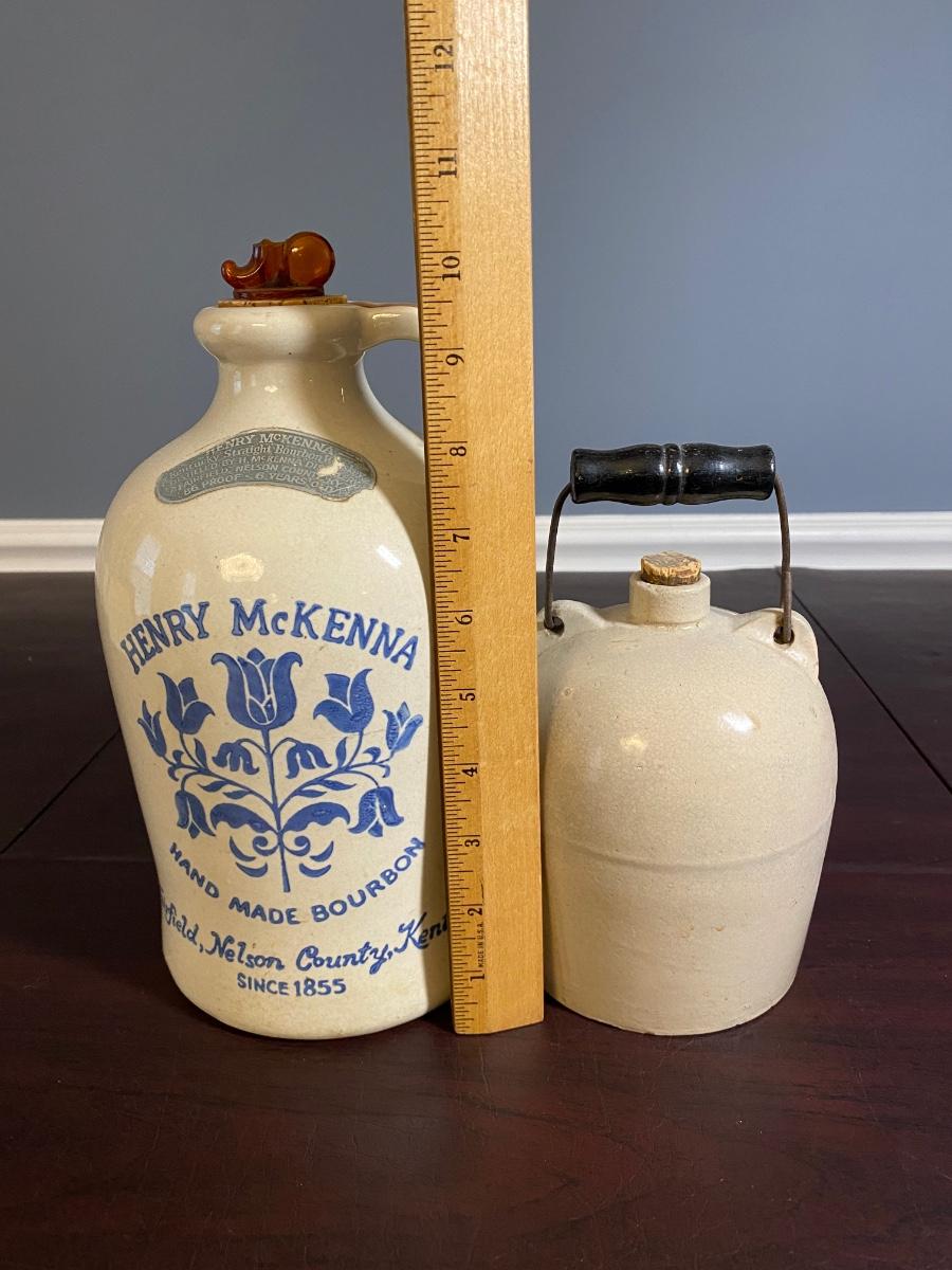 LOT 26C: Henry McKenna Bourbon Jug & Pottery Jug w/Wooden Handle