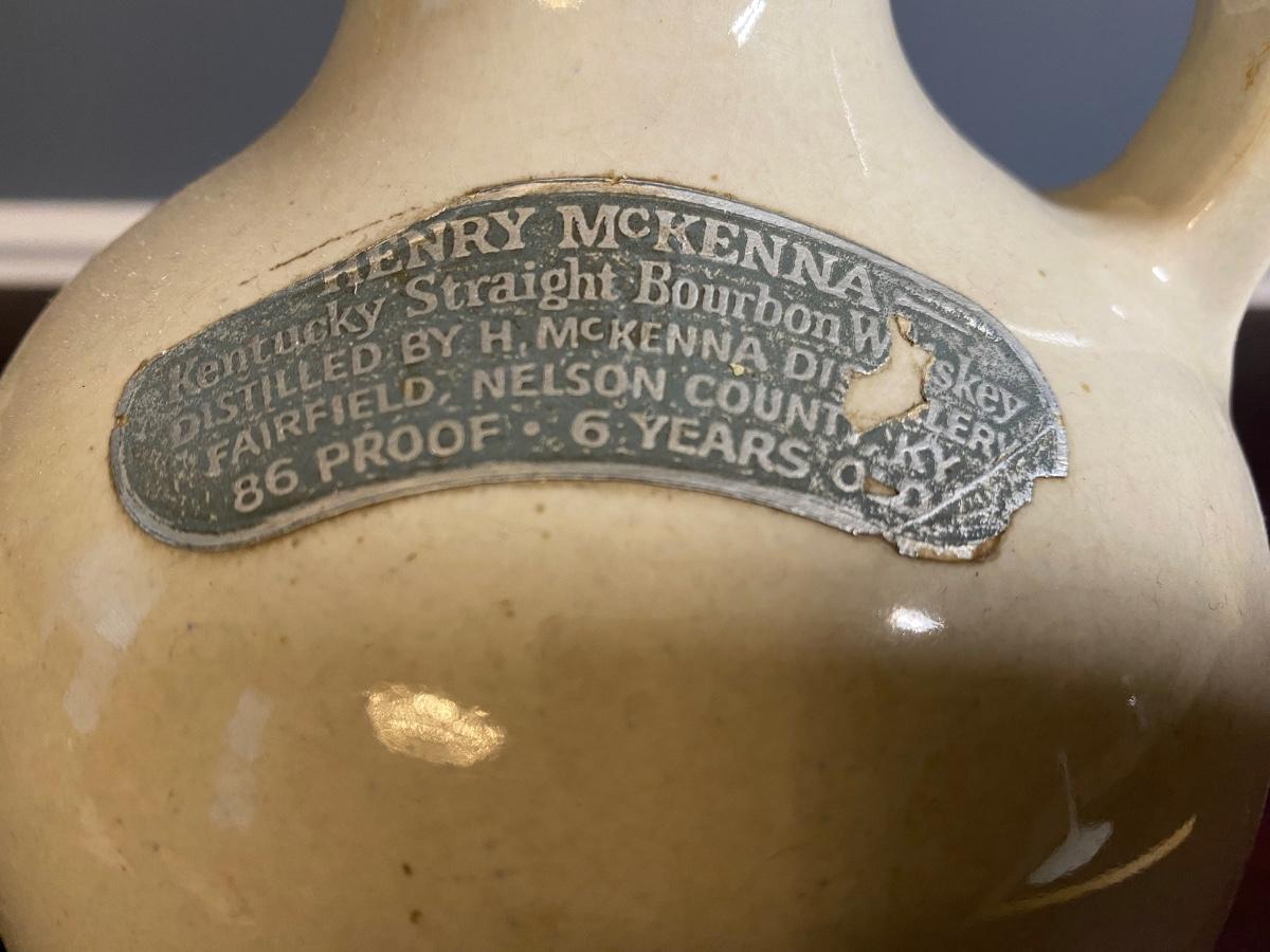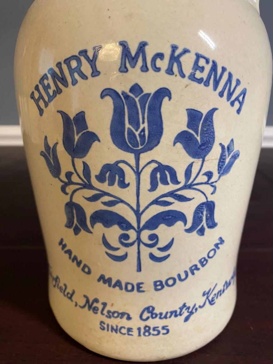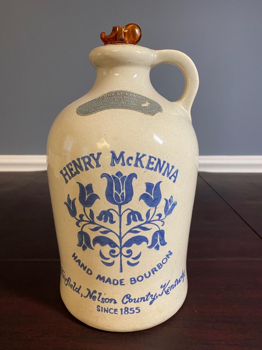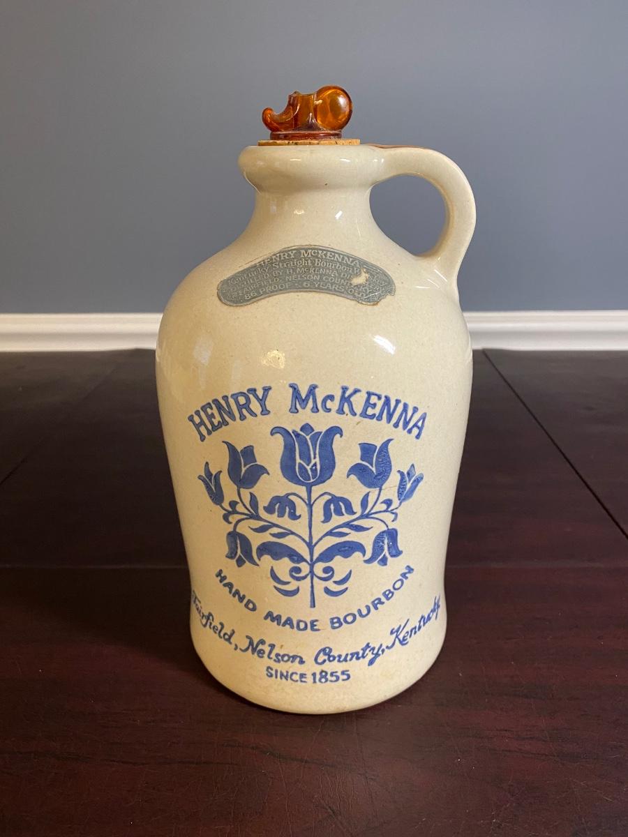 LOT 26C: Henry McKenna Bourbon Jug & Pottery Jug w/Wooden Handle