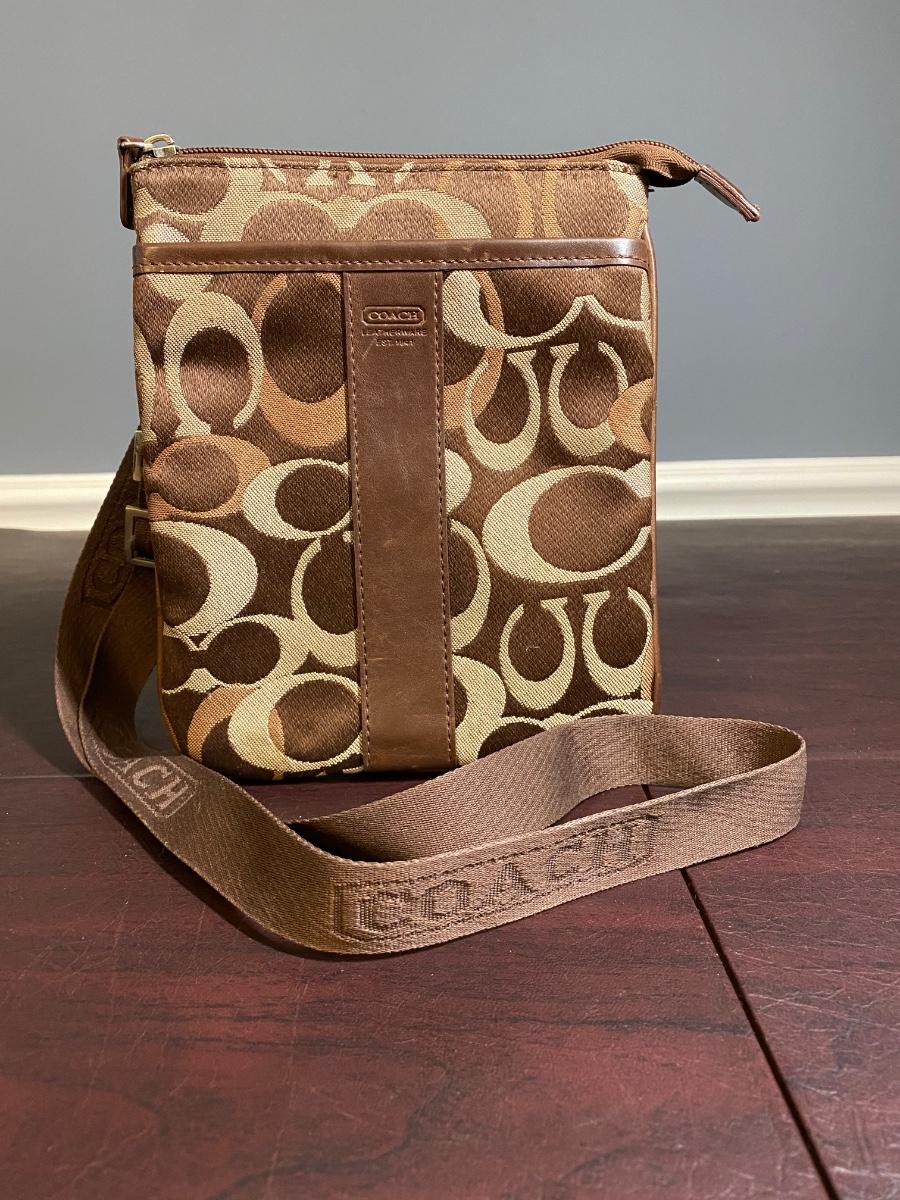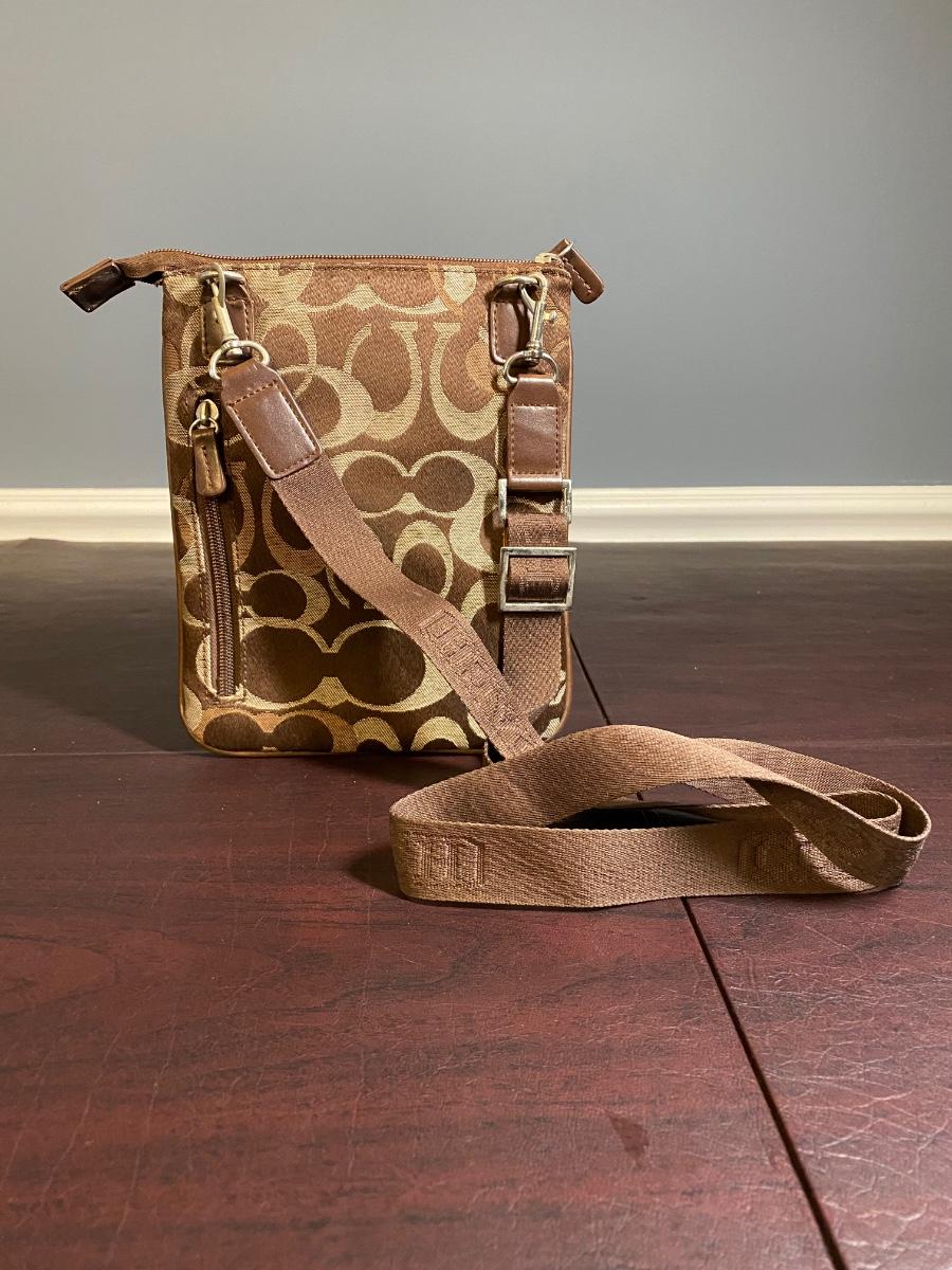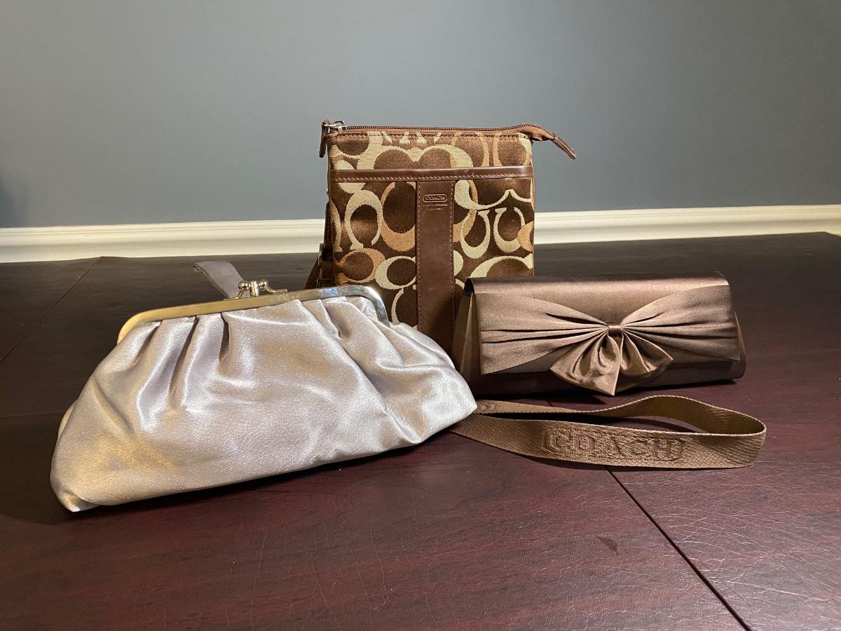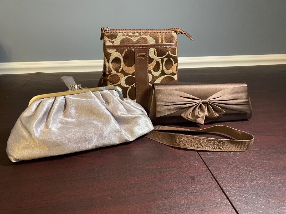 Brown cross body Coach bags in good used condition. Two clutch bags in good used condition. Please see all pictures as they are the best representation of the items. The pictures show condition, measurements if taken, and what is included in the lot. Due to the large amount that we photograph and the time frame, we are not always able to take measurements. All items unless noted, are pre-owned and have been used. If you purchased furniture, you must bring help. We do not allow one person to carry large furniture out on their own. Bring help, tools and a truck for the safety of our client’s homes, and your personal safety. Any damages that result to the property including walls, and floors due to moving of the furniture will be charged to the buyer. Company policy. Thank you.