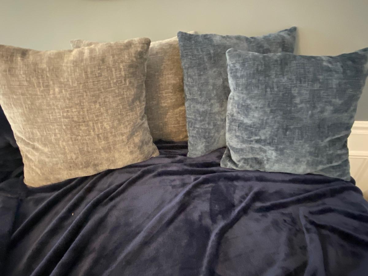 Four Pillows, two Throw blankets, Black frame for four photos and Gund bear. Please see all pictures as they are the best representation of the items. The pictures show condition, measurements if taken, and what is included in the lot. Due to the large amount that we photograph and the time frame, we are not always able to take measurements. All items unless noted, are pre-owned and have been used. If you purchased furniture, you must bring help. We do not allow one person to carry large furniture out on their own. Bring help, tools and a truck for the safety of our client’s homes, and your personal safety. Any damages that result to the property including walls, and floors due to moving of the furniture will be charged to the buyer. Company policy. Thank you.