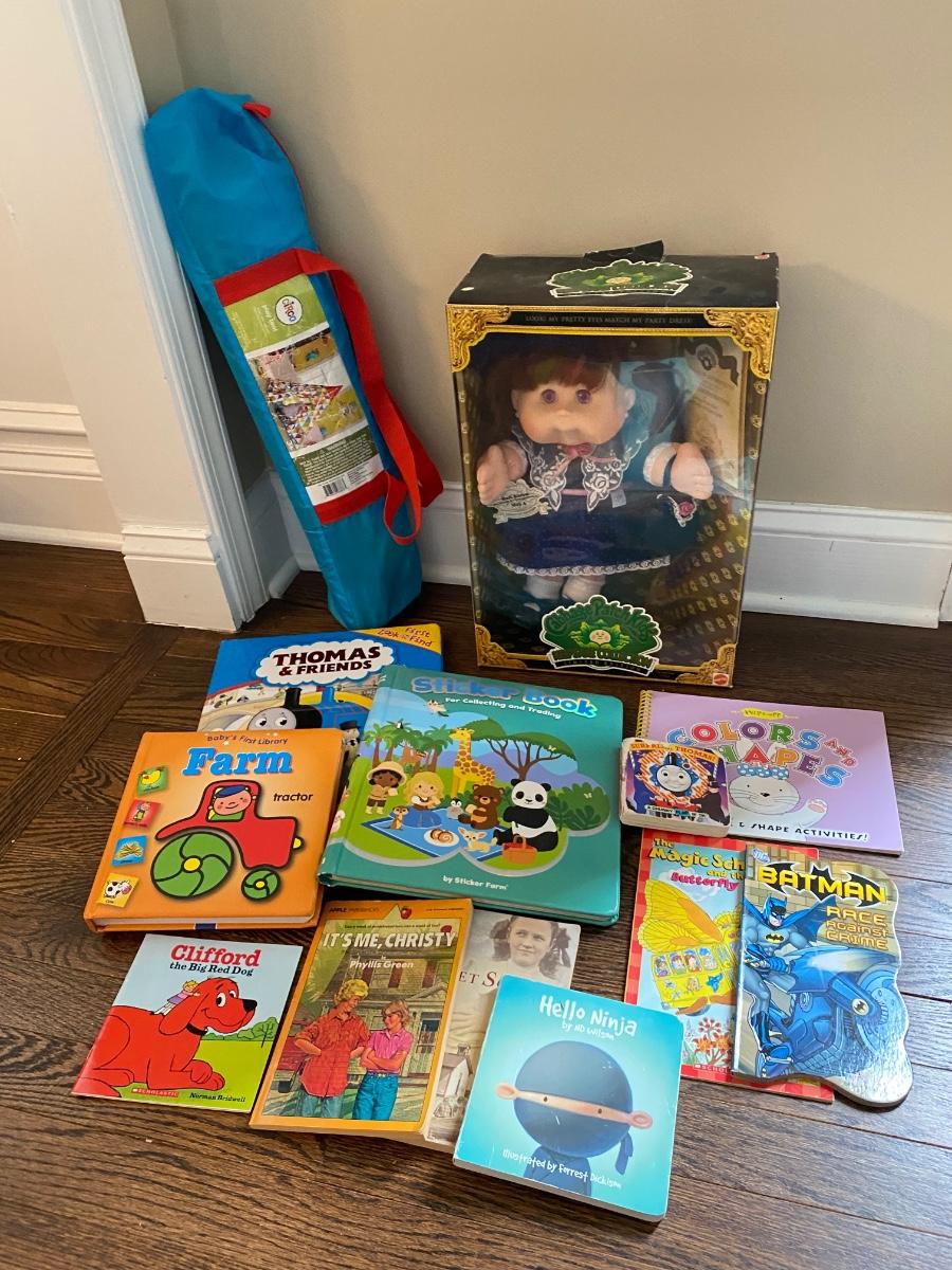 Circo Tent, collection edition Cabbage Patch doll and variety of children’s books. Please see all pictures as they are the best representation of the items. The pictures show condition, measurements if taken, and what is included in the lot. Due to the large amount that we photograph and the time frame, we are not always able to take measurements. All items unless noted, are pre-owned and have been used. If you purchased furniture, you must bring help. We do not allow one person to carry large furniture out on their own. Bring help, tools and a truck for the safety of our client’s homes, and your personal safety. Any damages that result to the property including walls, and floors due to moving of the furniture will be charged to the buyer. Company policy. Thank you.