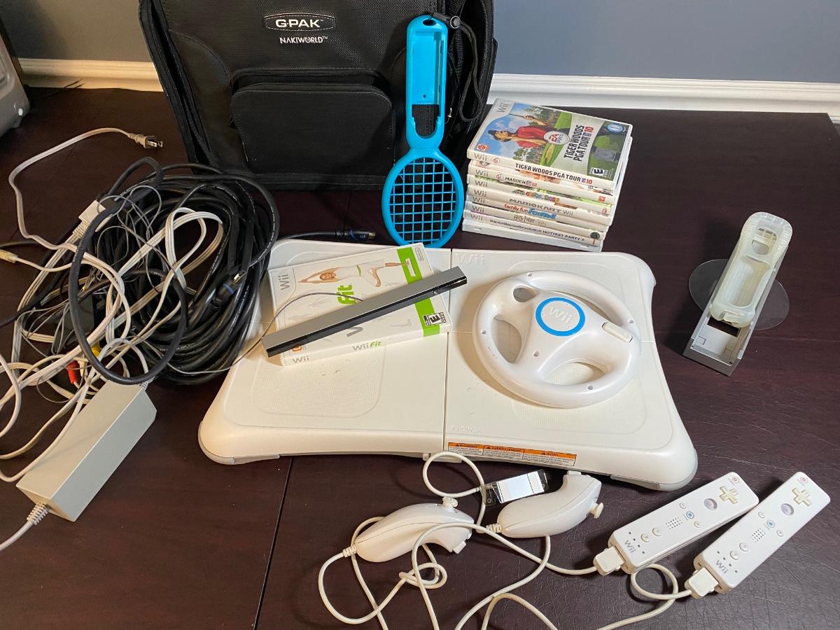 Gsmes, Wii fit board, cords, controllers and more. Please see all pictures as they are the best representation of the items. The pictures show condition, measurements if taken, and what is included in the lot. Due to the large amount that we photograph and the time frame, we are not always able to take measurements. All items unless noted, are pre-owned and have been used. If you purchased furniture, you must bring help. We do not allow one person to carry large furniture out on their own. Bring help, tools and a truck for the safety of our client’s homes, and your personal safety. Any damages that result to the property including walls, and floors due to moving of the furniture will be charged to the buyer. Company policy. Thank you.