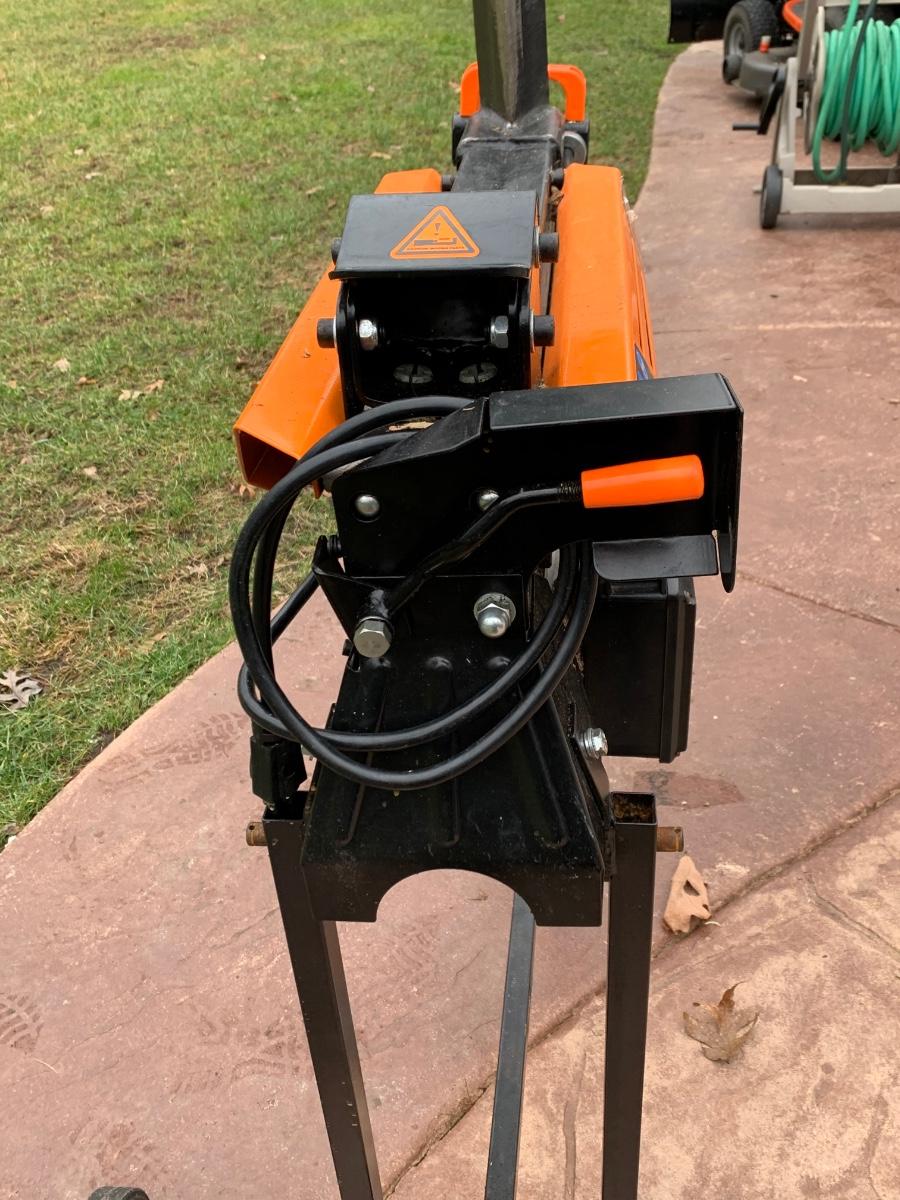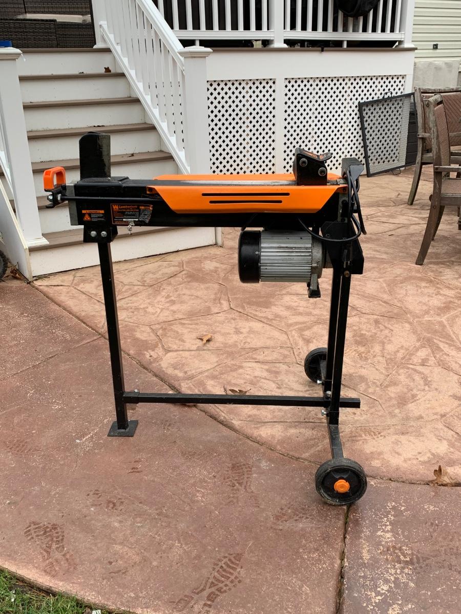 One electric log splitter with the capacity to split logs 10 inches in diameter and 20.5 inches in length.