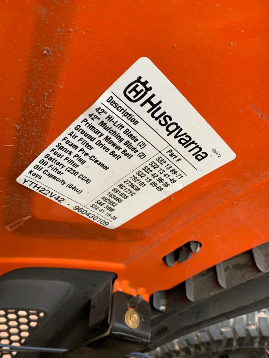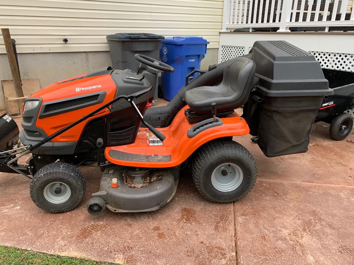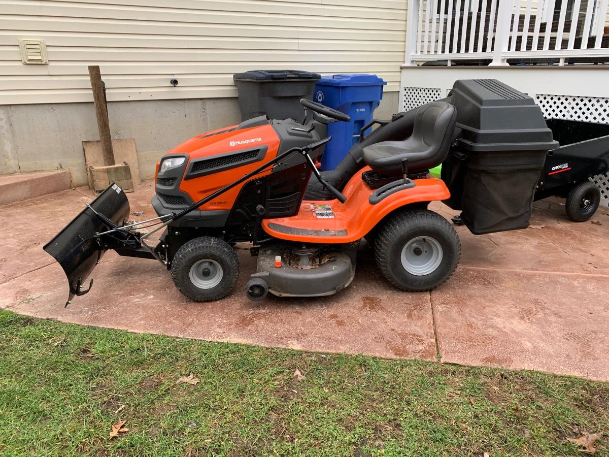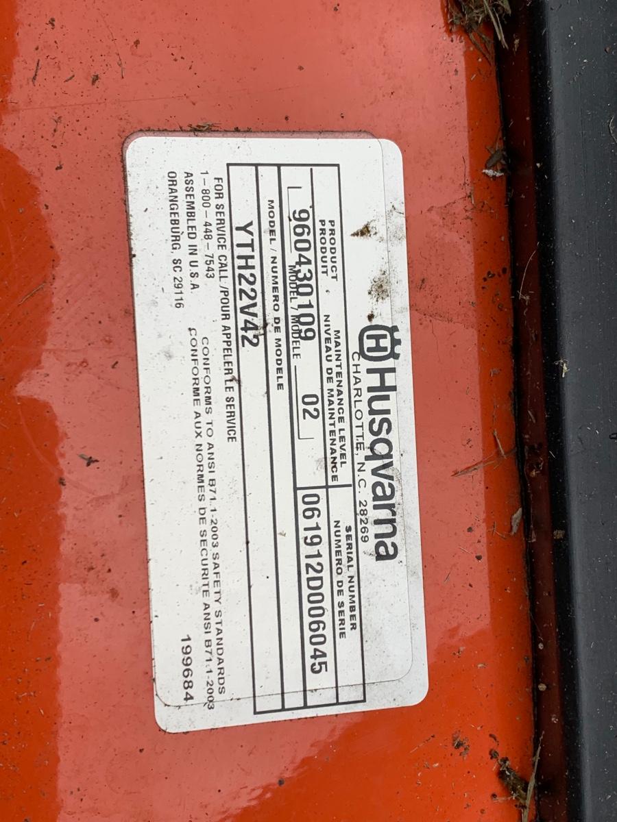 LOT 69R: Husqvarna YTH 22V42 Riding Mower w/ Attachments