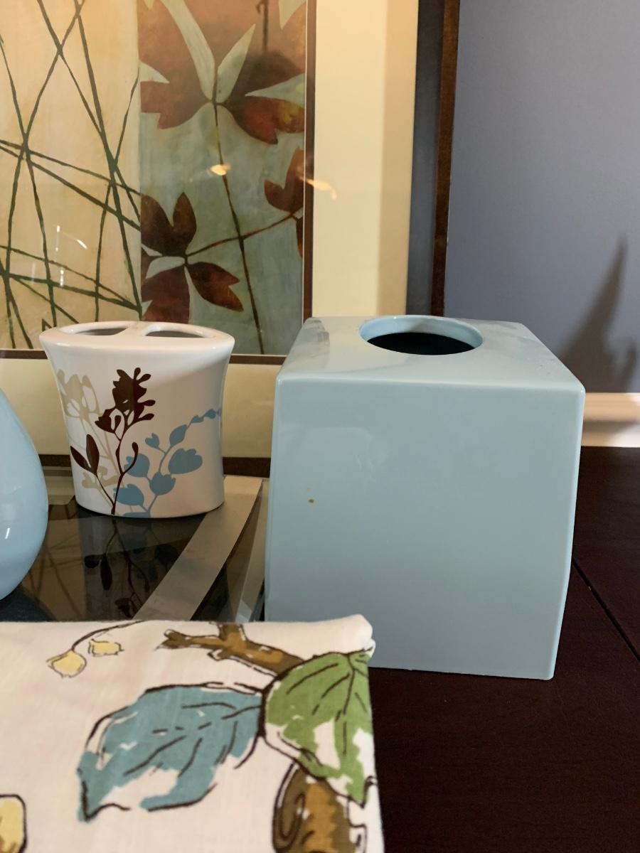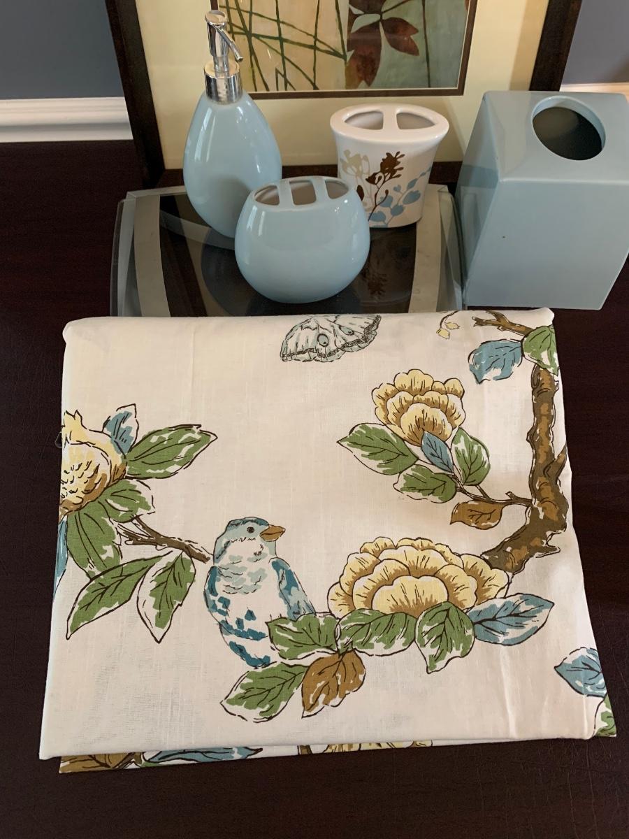 LOT98: Threshold Blue Bird Curtain, Bathroom Scale, Framed Print & More