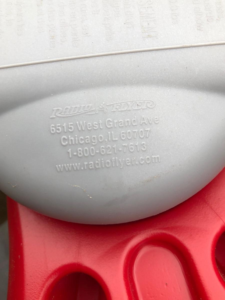 Toys are used and made of plastic. Big Flyer has adjustable seat.