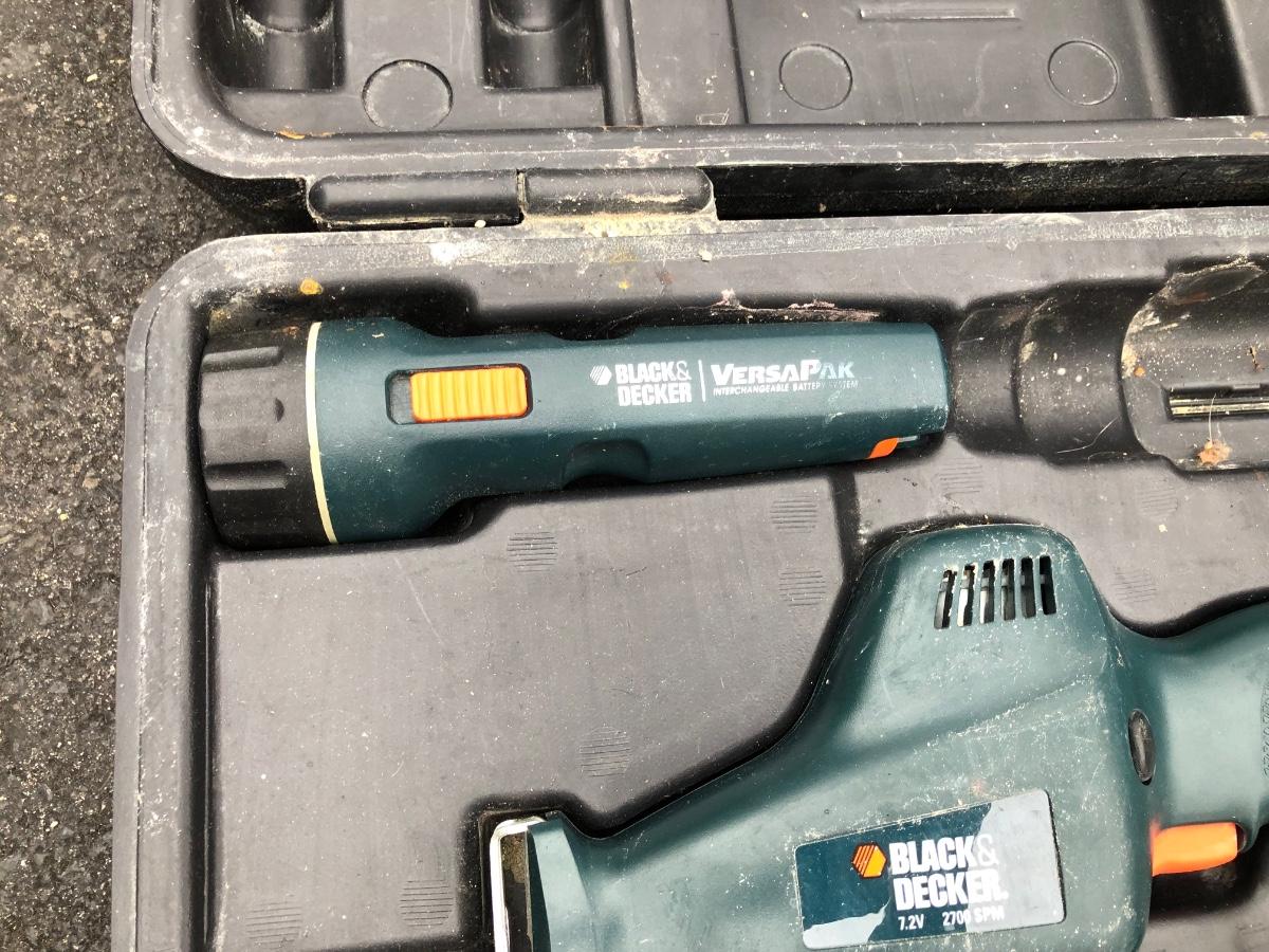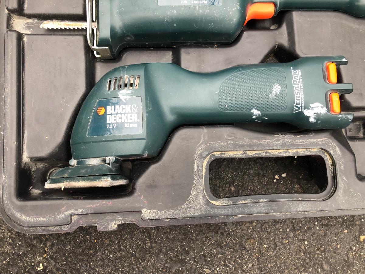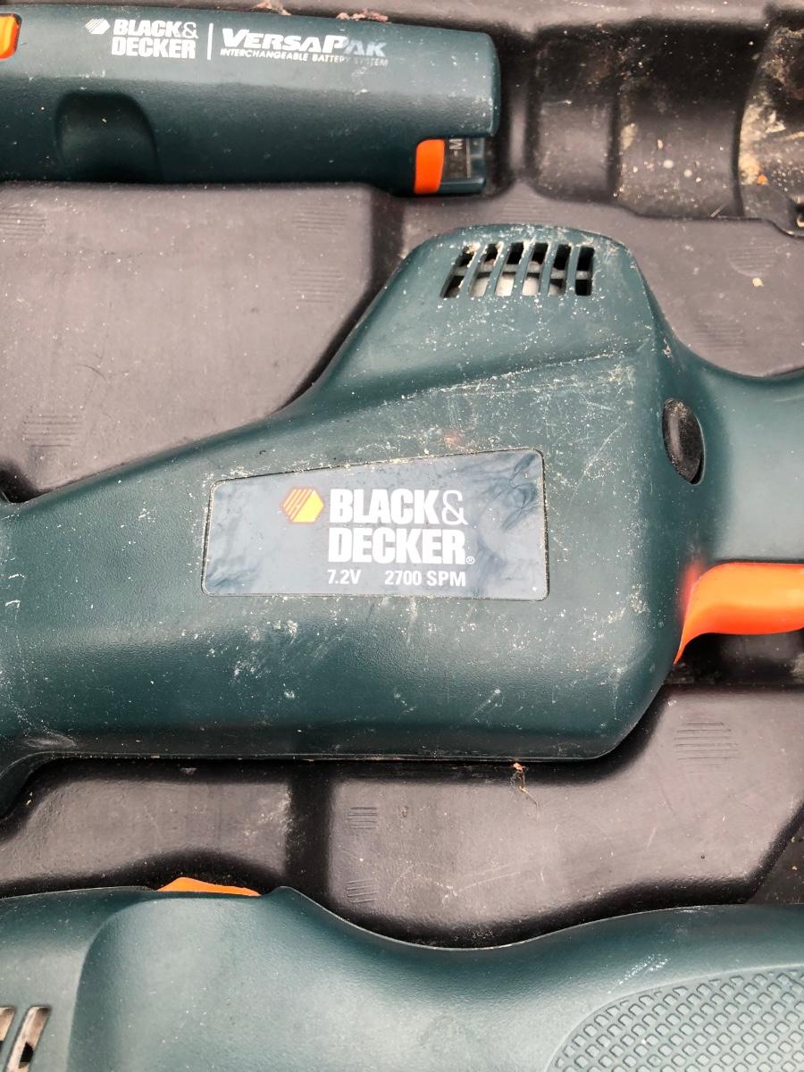 Includes two hand saws, two sanders, and two flashlights that are part of Black & Decker's VersaPak interchangeable battery system. Also includes a Craftsman tool that uses the same batteries.